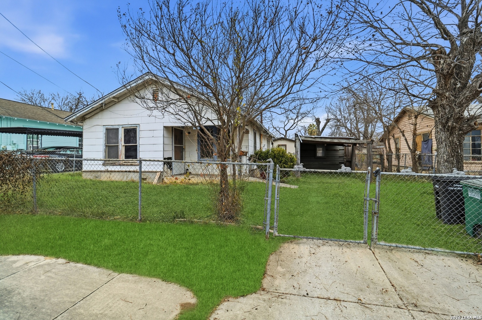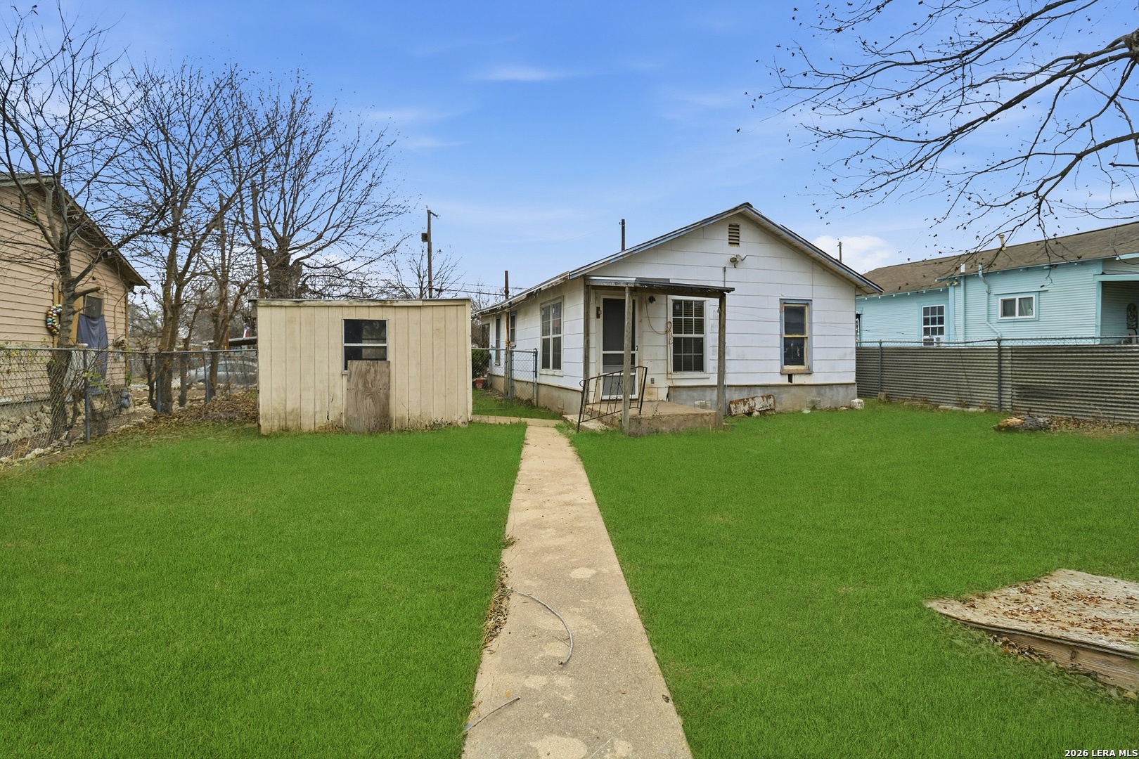 FIX & FLIP or BUY & HOLD POTENTIAL! NO HOA! Excellent opportunity for investors or looking for a budget friendly home! This home offers great potential to update and maximize value. The property features a spacious backyard shaded by mature trees and fully enclosed with a chain-link fence - ideal for pets, entertaining, or future outdoor improvements. Two outbuildings add versatility: a 12'x12' storage shed plus an additional utility shed equipped with electricity and water, offering possibilities for a workshop, hobby space, or future conversion. Conveniently located on San Antonio's Southside, just minutes from Downtown and the historic Pearl District, with quick access to IH-35, Loop 410 and IH-37. Near major military installations, shopping, dining, and everyday amenities, making this property a strong option for both homeowners and rental investors.