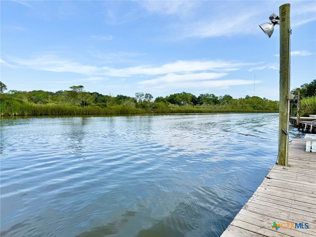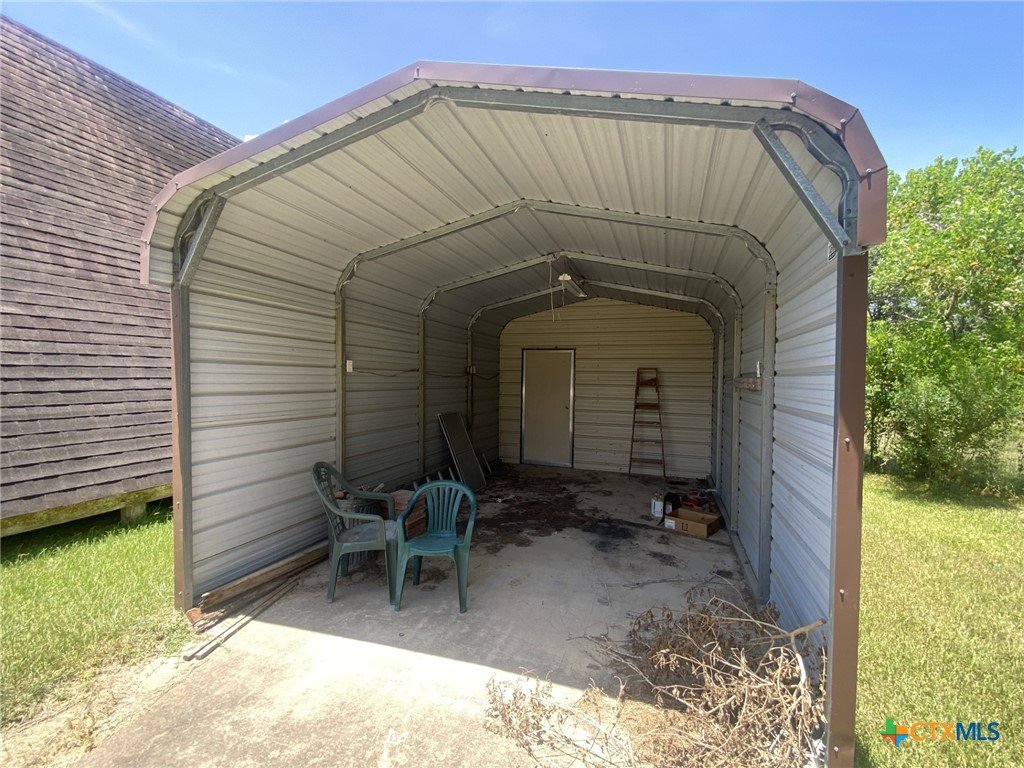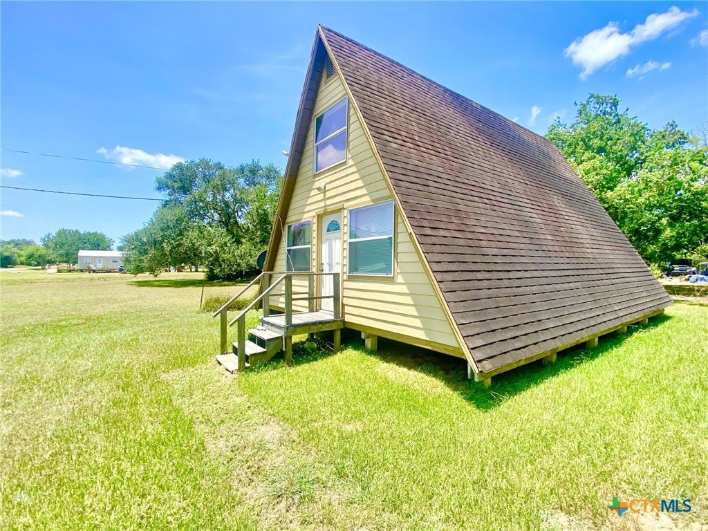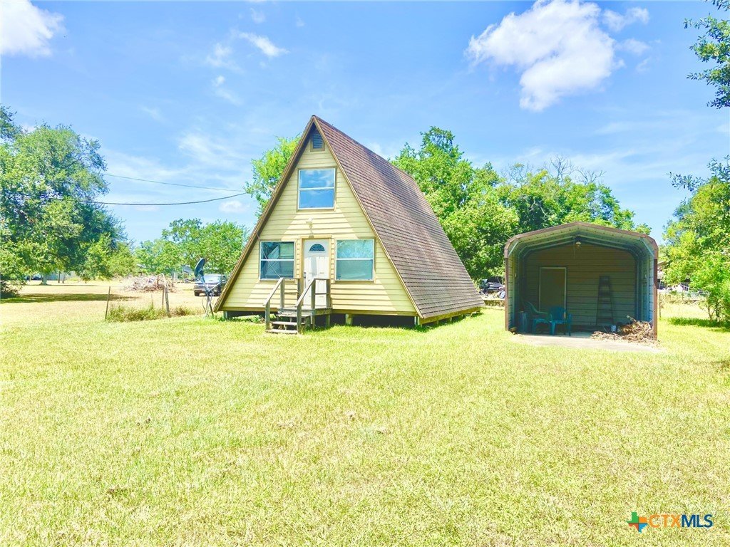 This handy man special is OUT if the flood plain and IN the desirable, gated and restricted Tres Palacios Oaks community. With great bones this home is waiting for you to come, make it your own! Built in a hip "A" frame style this house features a roomy living room that flows easily into the combination kitchen/dining/laundry room. There is a full bath downstairs and upstairs there is a large open, bunk-style bedroom that could easily be made into two individual bedrooms if more privacy is desired. The sturdy metal detached carport is the perfect place to keep your vehicle out of the rain, hang out in the shade or store a boat or jet ski! There is a fully enclosed storage room at the back of the carport complete with power. Offering easy access to the Tres Palacios River, Matagorda Bay and the Gulf this gated community provides residents security and amenities including a sparkling private pool, a huge freshwater lake, boat ramp and a lighted fishing pier! This quiet, secluded community is the perfect place to work on your fishing stories, enjoy balmy breezes and beautiful sunsets.