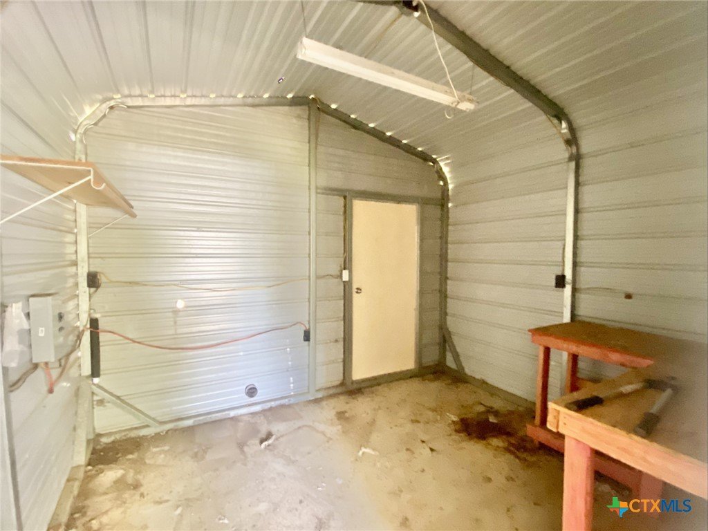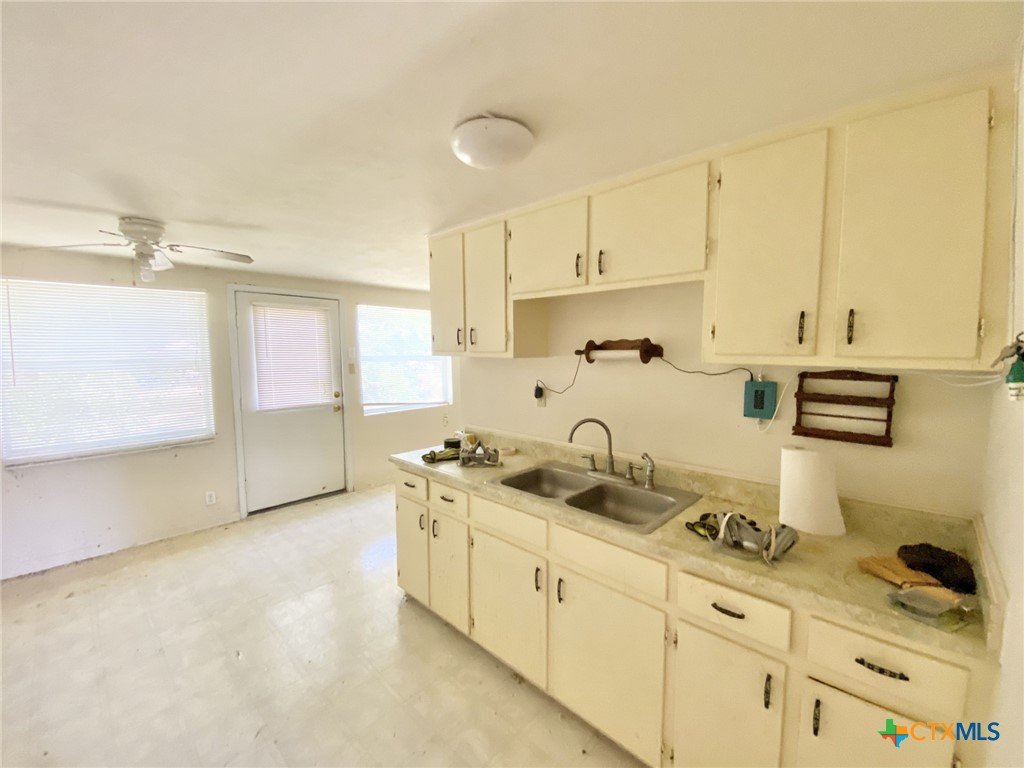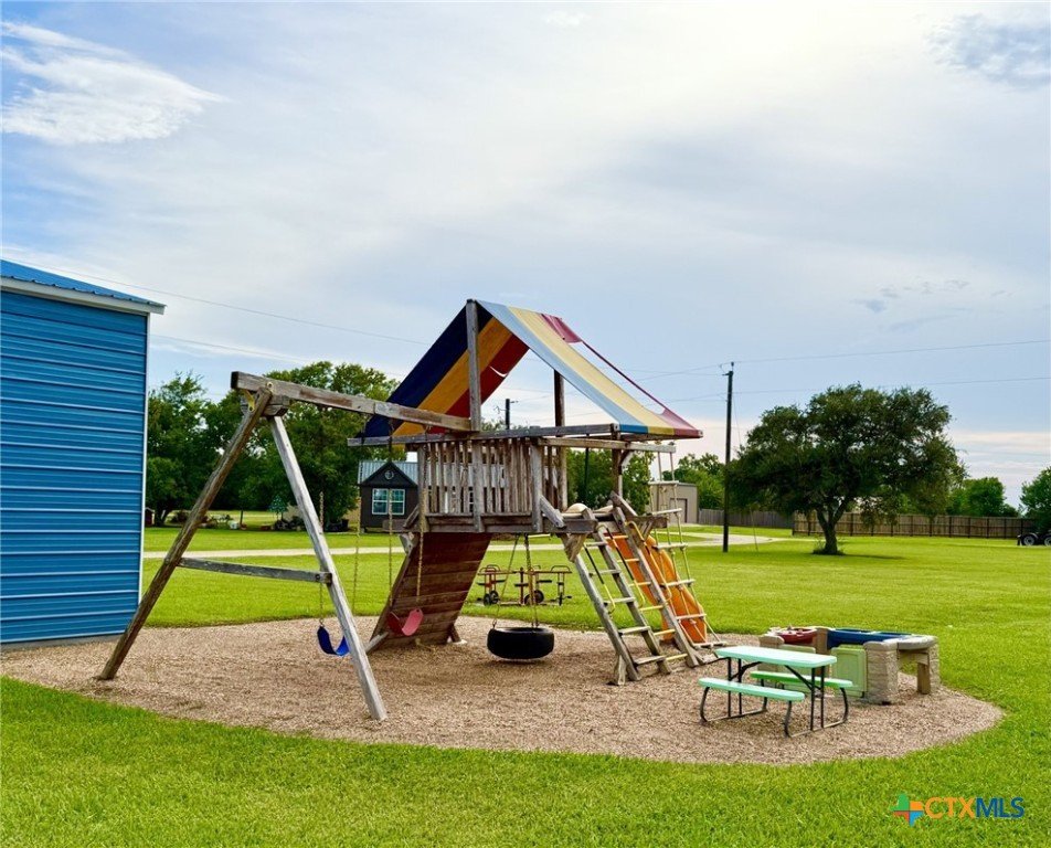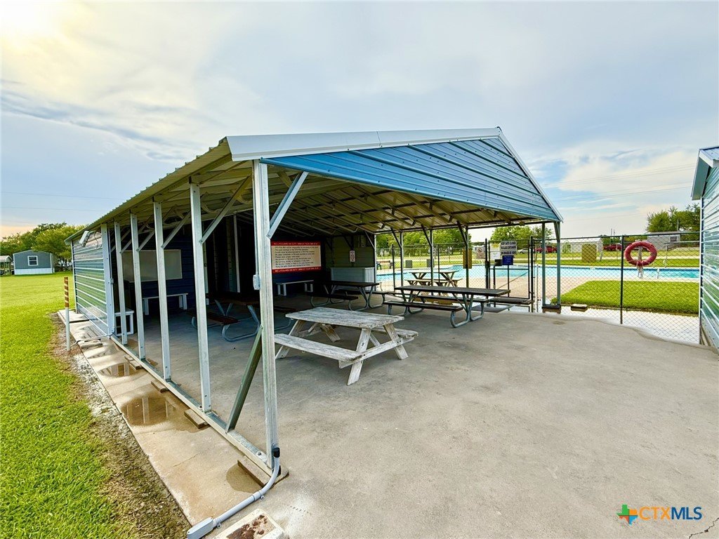 This handy man special is OUT if the flood plain and IN the desirable, gated and restricted Tres Palacios Oaks community. With great bones this home is waiting for you to come, make it your own! Built in a hip "A" frame style this house features a roomy living room that flows easily into the combination kitchen/dining/laundry room. There is a full bath downstairs and upstairs there is a large open, bunk-style bedroom that could easily be made into two individual bedrooms if more privacy is desired. The sturdy metal detached carport is the perfect place to keep your vehicle out of the rain, hang out in the shade or store a boat or jet ski! There is a fully enclosed storage room at the back of the carport complete with power. Offering easy access to the Tres Palacios River, Matagorda Bay and the Gulf this gated community provides residents security and amenities including a sparkling private pool, a huge freshwater lake, boat ramp and a lighted fishing pier! This quiet, secluded community is the perfect place to work on your fishing stories, enjoy balmy breezes and beautiful sunsets.