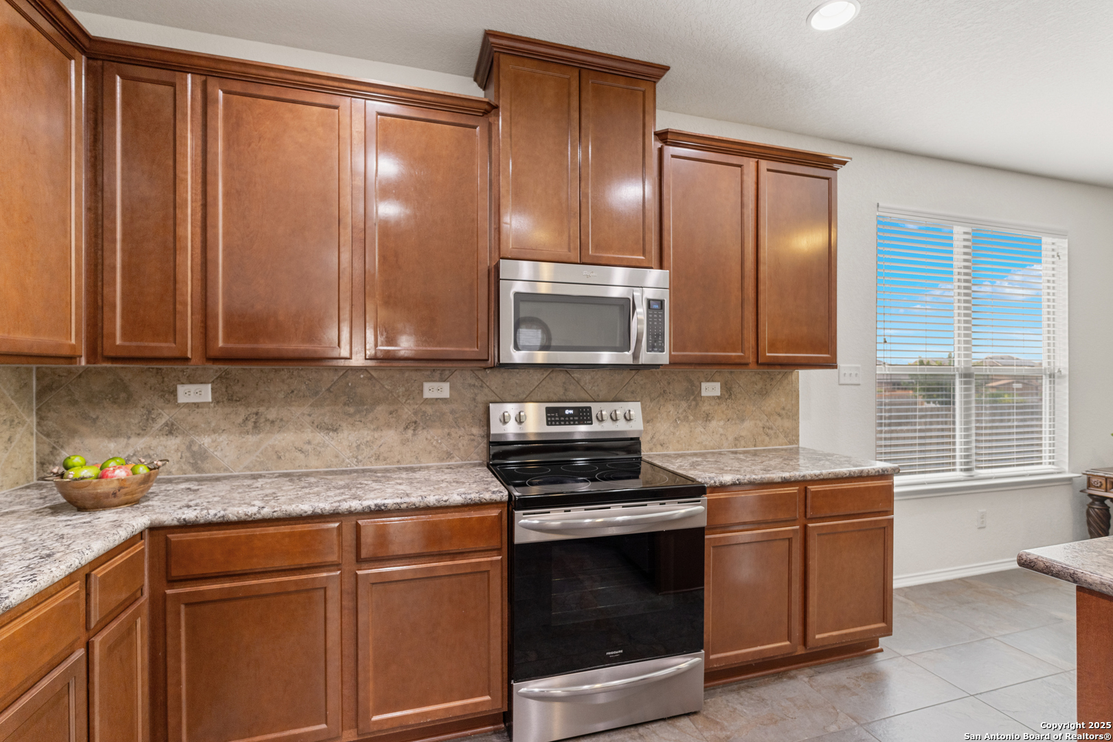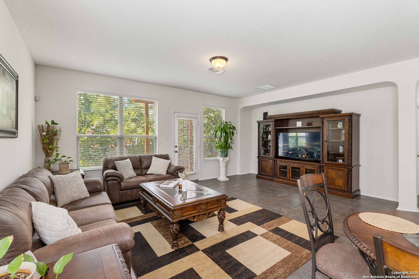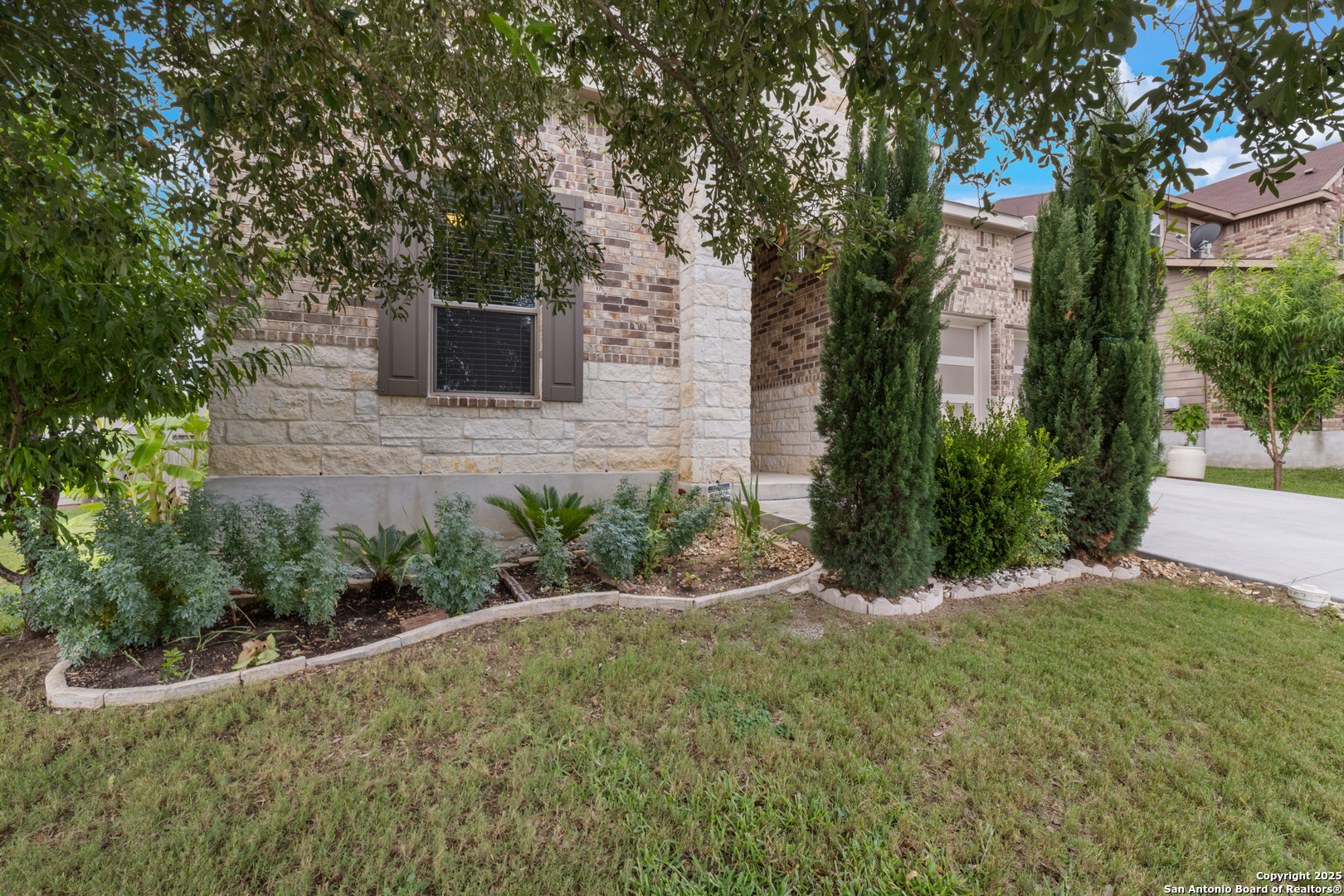 Welcome to this inviting 3-bedroom, 2.5-bathroom home nestled in a quiet Converse neighborhood. This beautifully maintained one-story residence features a striking stone and brick exterior, enhanced by lush front landscaping that offers exceptional curb appeal. Inside, you'll find an open layout that includes a spacious kitchen with a central island-perfect for cooking, entertaining, or gathering with family and friends. The home's layout offers comfortable living with three well-sized bedrooms and two and a half baths, providing space and convenience for the whole family. Step out back and enjoy your own private oasis! The generously sized backyard is filled with a variety of mature fruit trees, offering shade, beauty, and the joy of homegrown produce. Don't miss the opportunity to own this charming home with character, space, and natural beauty-all in a desirable Converse location.