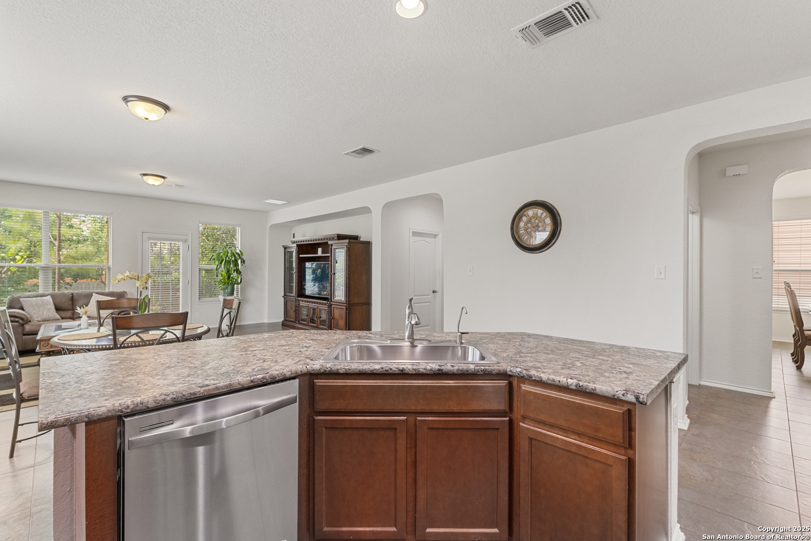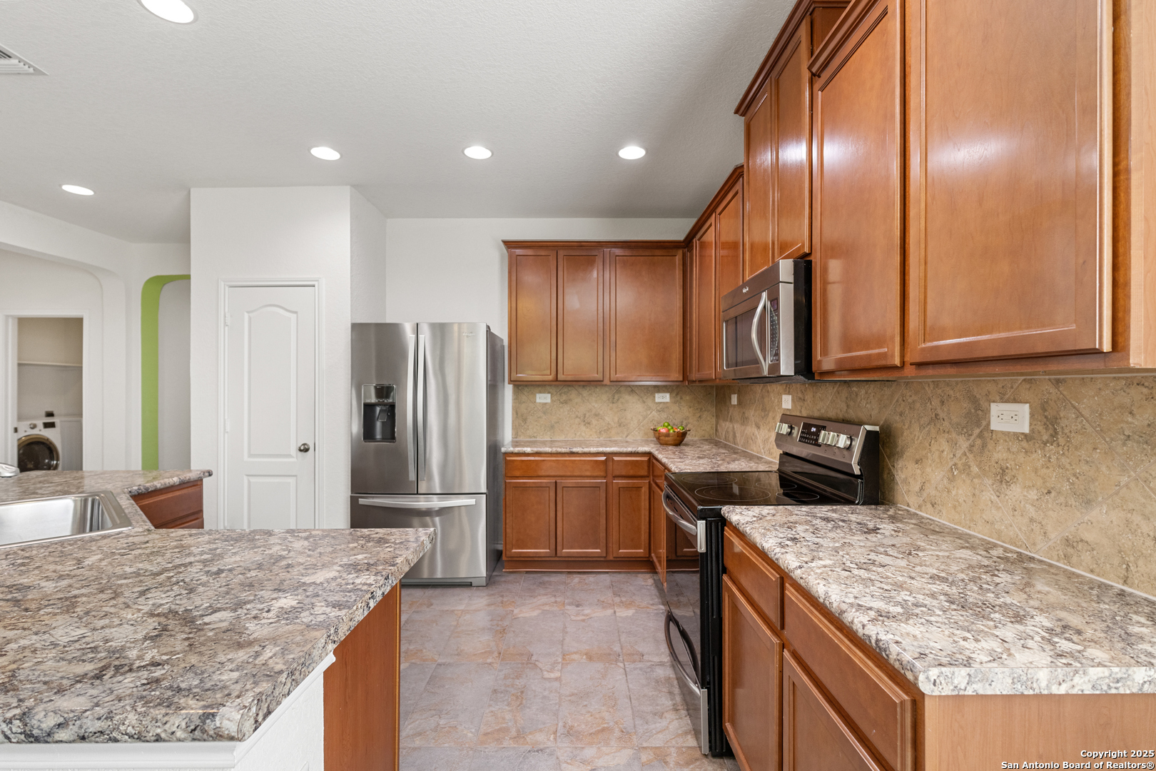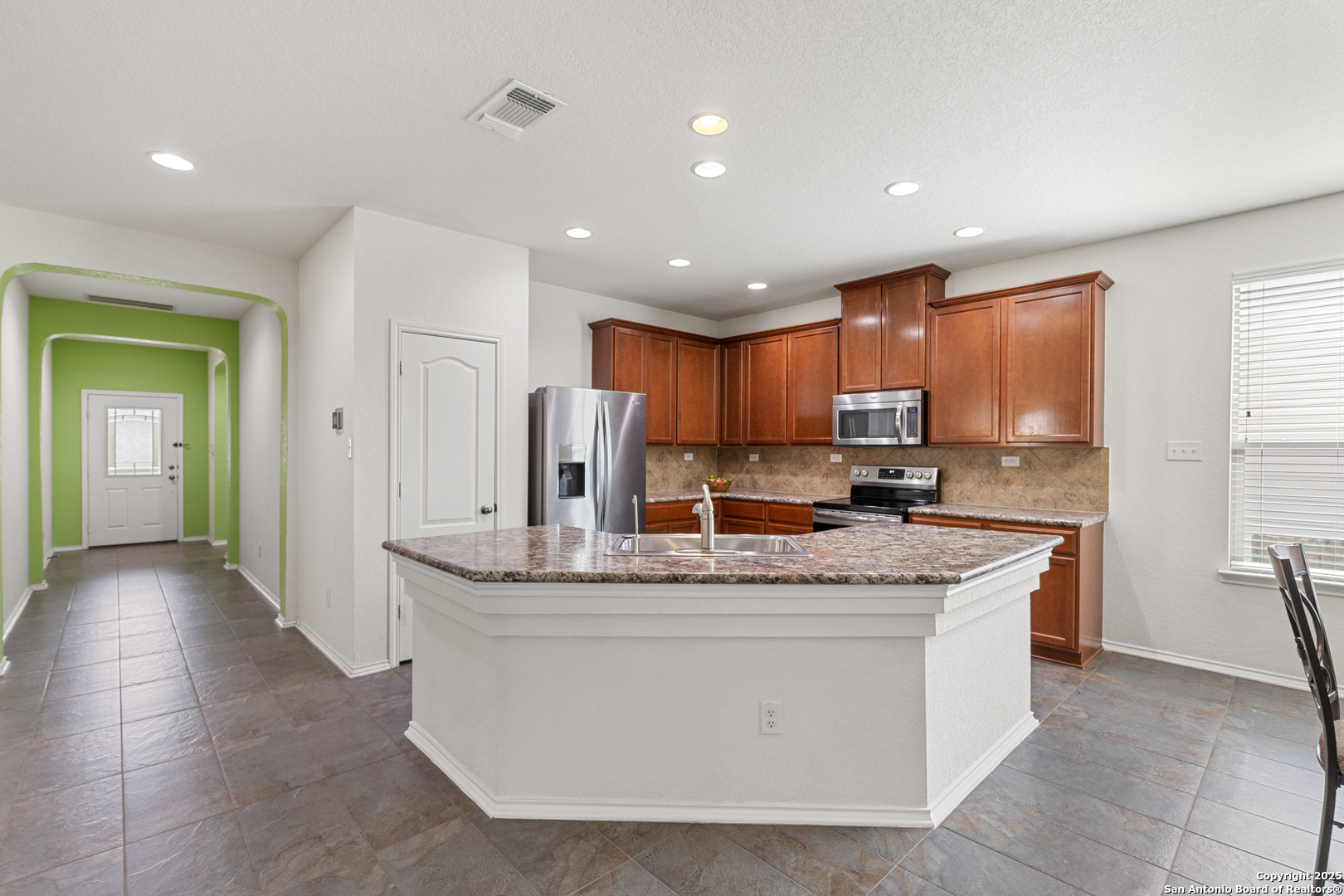 Welcome to this inviting 3-bedroom, 2.5-bathroom home nestled in a quiet Converse neighborhood. This beautifully maintained one-story residence features a striking stone and brick exterior, enhanced by lush front landscaping that offers exceptional curb appeal. Inside, you'll find an open layout that includes a spacious kitchen with a central island-perfect for cooking, entertaining, or gathering with family and friends. The home's layout offers comfortable living with three well-sized bedrooms and two and a half baths, providing space and convenience for the whole family. Step out back and enjoy your own private oasis! The generously sized backyard is filled with a variety of mature fruit trees, offering shade, beauty, and the joy of homegrown produce. Don't miss the opportunity to own this charming home with character, space, and natural beauty-all in a desirable Converse location.