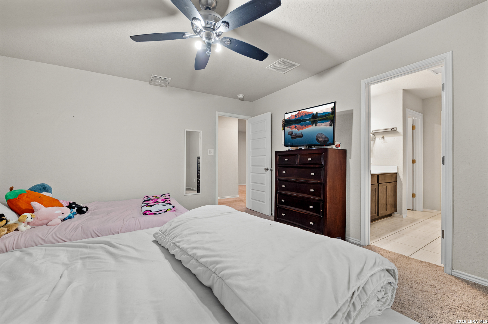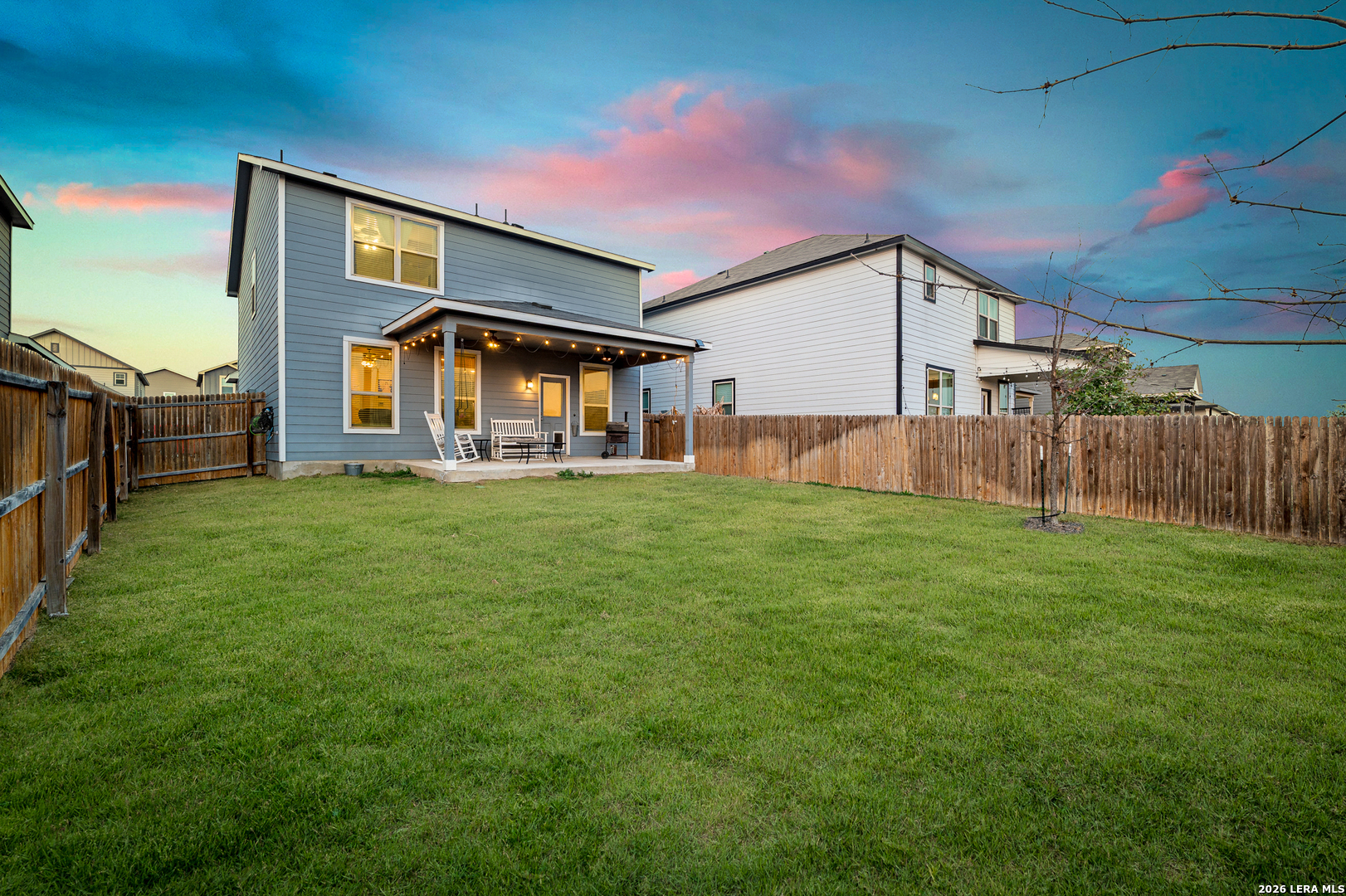 Welcome to this inviting 3-bedroom, 2.5-bath home tucked away in a quiet, welcoming neighborhood. The open-concept main level features tile flooring throughout and a spacious kitchen complete with granite countertops, a pantry, dishwasher, and a convenient half bath for guests. Upstairs, all bedrooms are thoughtfully positioned for privacy, including a comfortable primary suite offering a full bathroom with double vanities and a walk-in closet. One of the secondary bedrooms also includes its own walk-in closet, while an additional loft or second living area provides flexible space for relaxing, working, or entertaining. The upstairs laundry room adds everyday convenience, along with a second full bathroom. Step outside to enjoy a two-car garage, a fully fenced backyard, and a covered patio with ceiling fans - perfect for gatherings or unwinding outdoors.