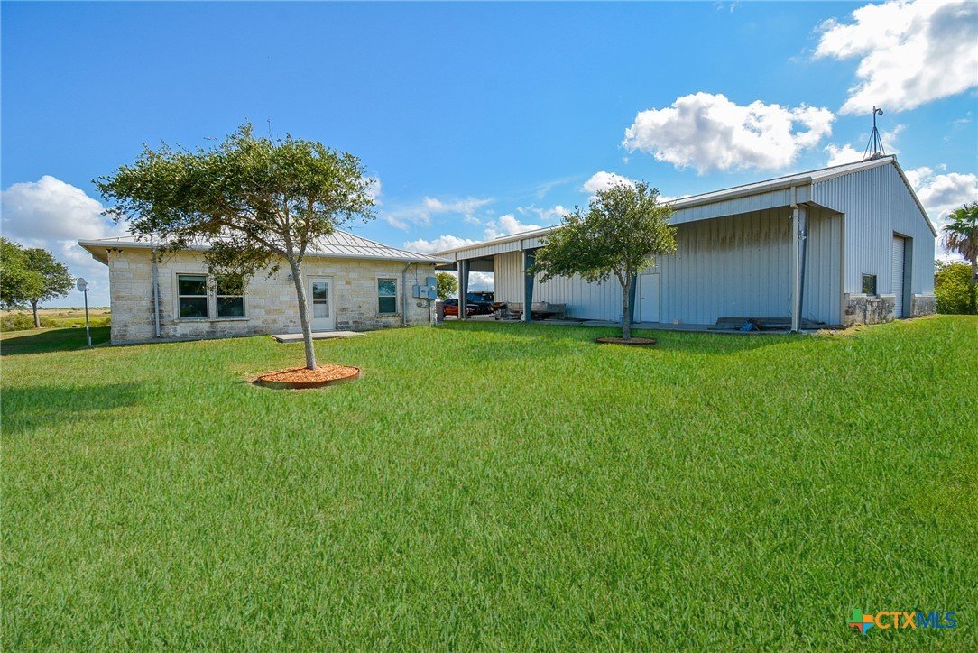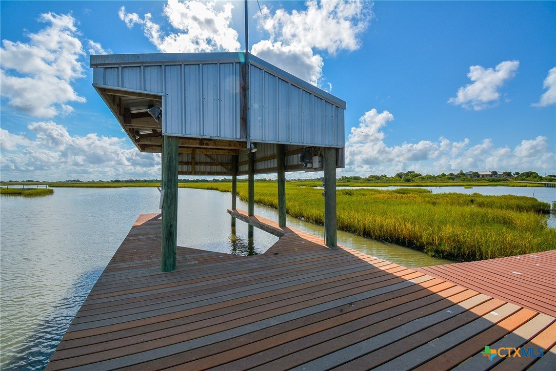 Waterfront coastal retreat with EVERYTHING you've been looking for! 36.7 acres of fenced native pastures, pond, bayfront and wetlands teeming with native wildlife. Your very own nature & fishing retreat. The Austin Stone house is a true gem with wind-rated metal roof, impact resistant vinyl windows and slab on bell piers. Inside the home boasts a cavernous living area complete with soaring beamed ceiling and kitchen loaded with storage and elegant finishes. Airy and inviting, the house has durable engineered wood and tile flooring and tranquil natural tones throughout. The Barn gives endless options for storage with 3187 sq ft of insulated interior and 1912 sq ft of outdoor covered area. Take a stroll down the 688' x 6' pier, reinforced with poly decking, to your very own boat barn and slip. This unique property offers an unparalleled coastal living experience!