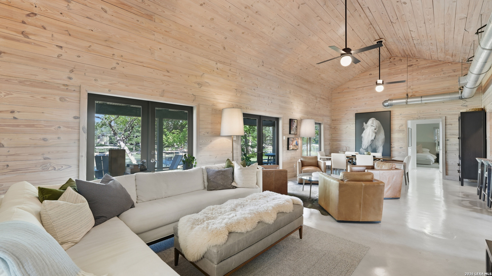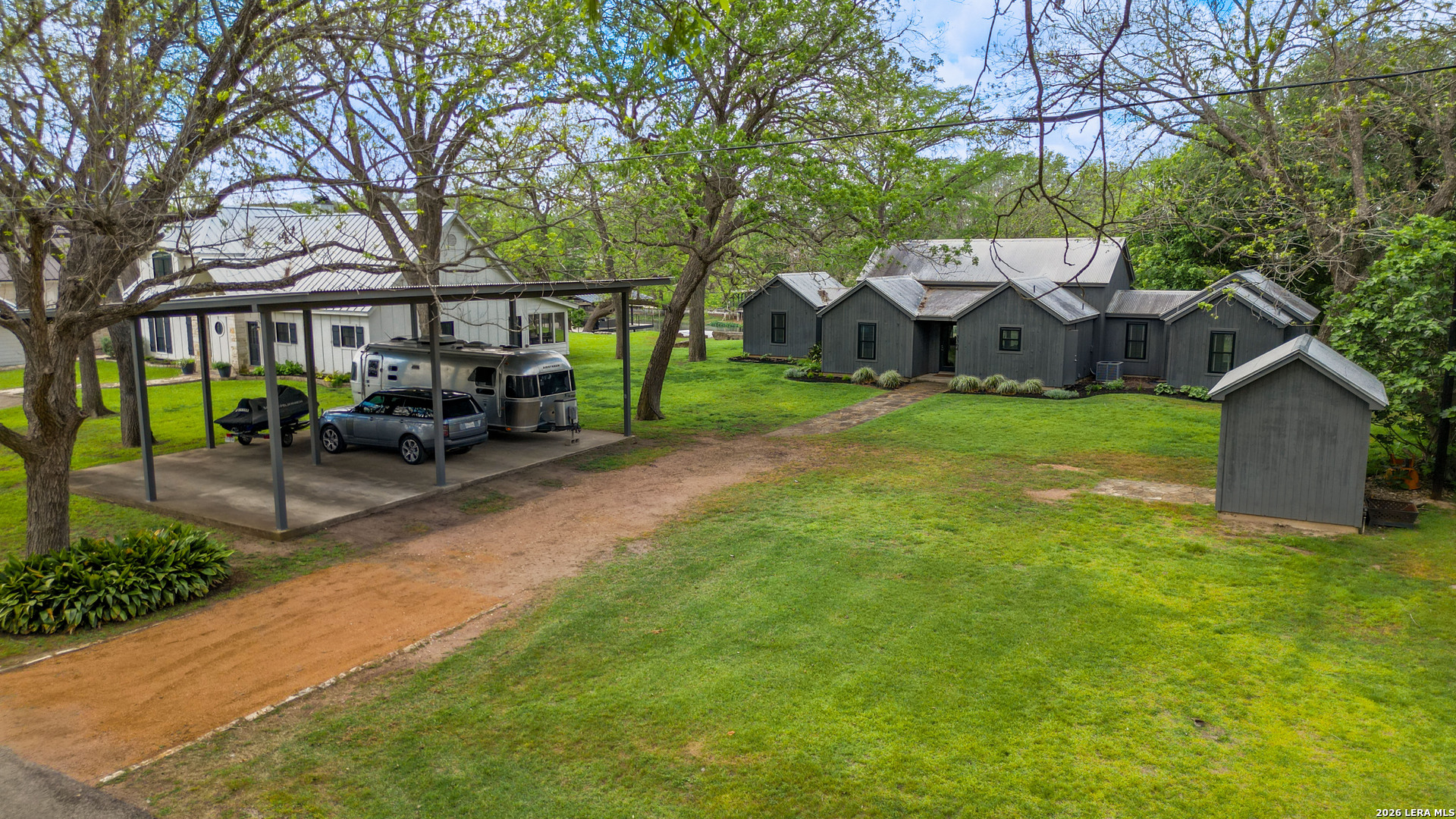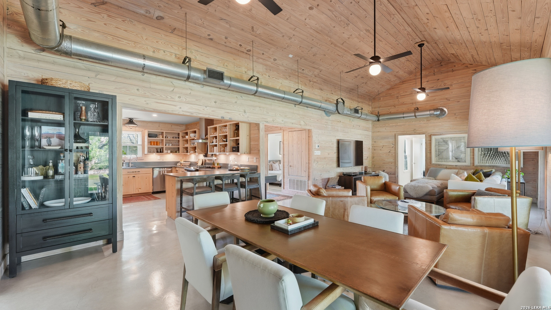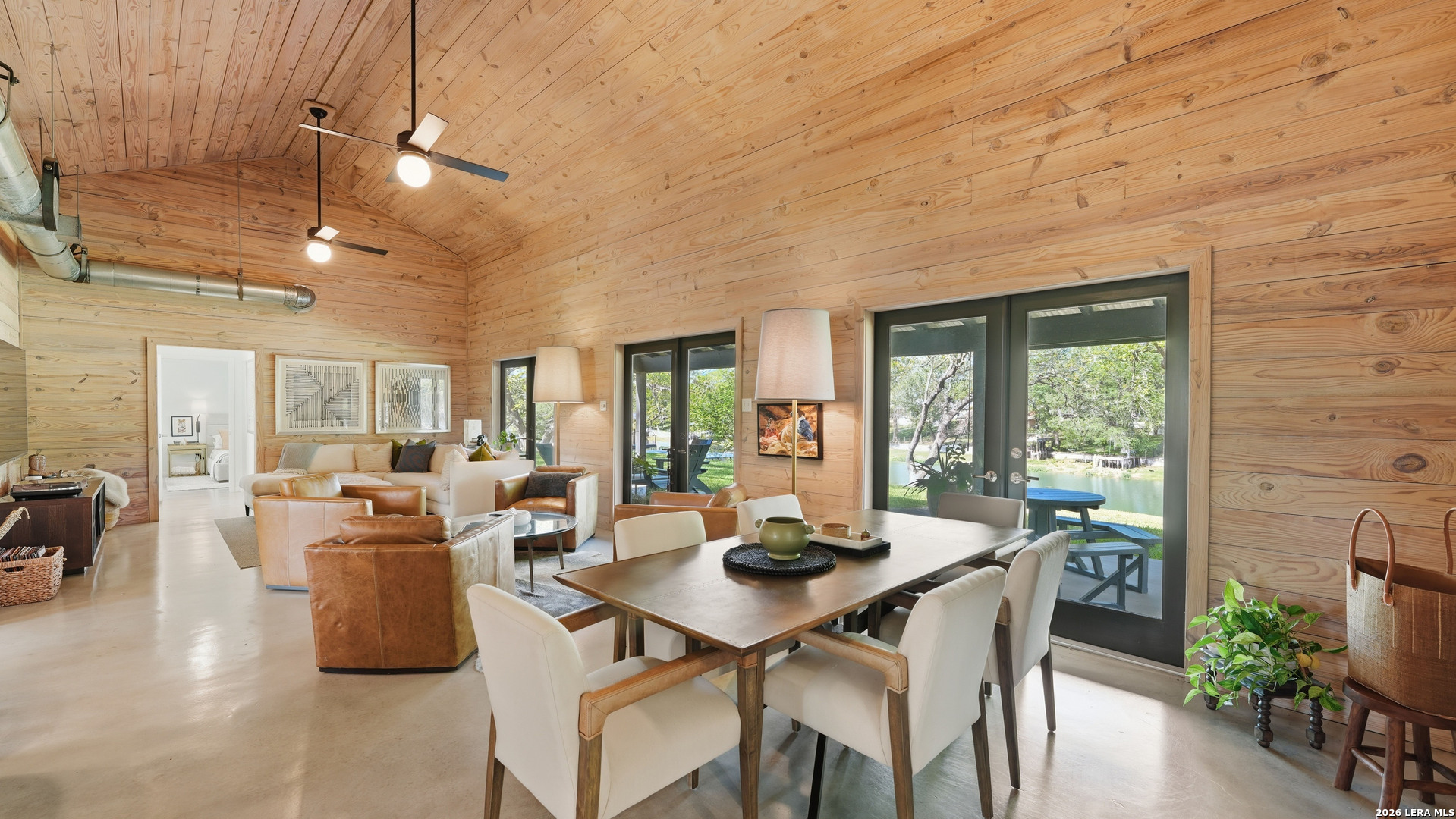 Are you looking for a cozy, yet modern cottage on Lake McQueeney? Here it is! This 1773 sq ft home with 3 bedrooms, 2 baths sits on 1/2 an acre, with 100 ft of waterfront! The main/dining space is grand central in this home with it's cathedral ship-lap ceiling and walls that are art in itself! The metal AC exposed duct-work just adds to the modern cottage feel. Off the entryway is the 3rd bedroom which would also be a good office. The home was remodeled in 2021 with new an updated kitchen include new countertops, new tile backsplash, appliances and the range was retrofitted for gas cooking! The primary bedroom suite is past the kitchen with a walk in closet, patio doors that access a covered porch and a master bathroom that was recently renovated to include a large walk in shower and a custom double vanity, new lighting and plumbing fixtures. Head to the other side of the house for the 3rd guest bedroom, with outdoor access to it's over covered patio and a hall guest bath updated with a tub/shower combo, tile surround and new custom vanity with updated lighting. New HVAC and windows in 2021. 3 car carport with EV charging point in 2024 and new boat house with sundeck in 2025.
