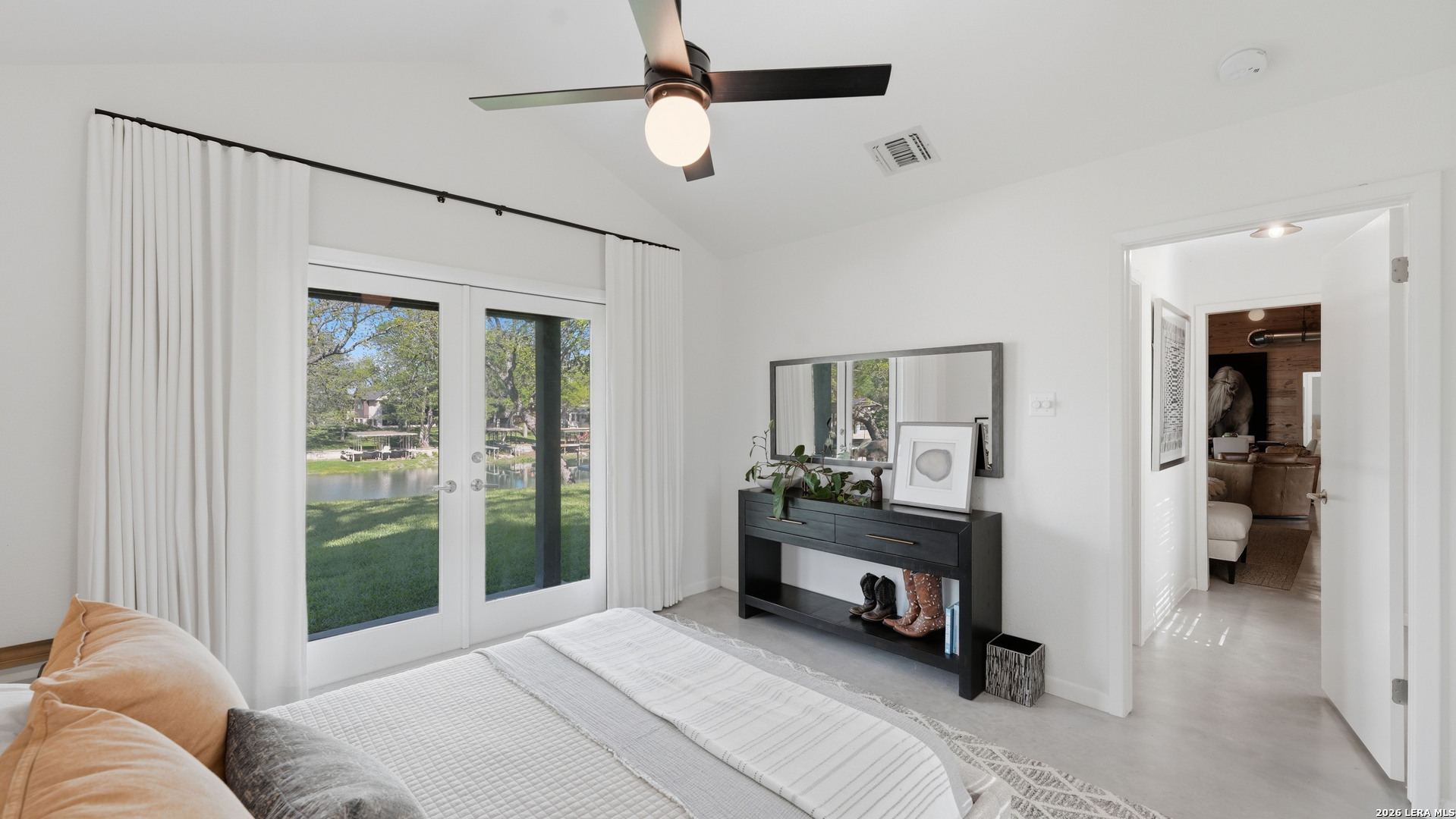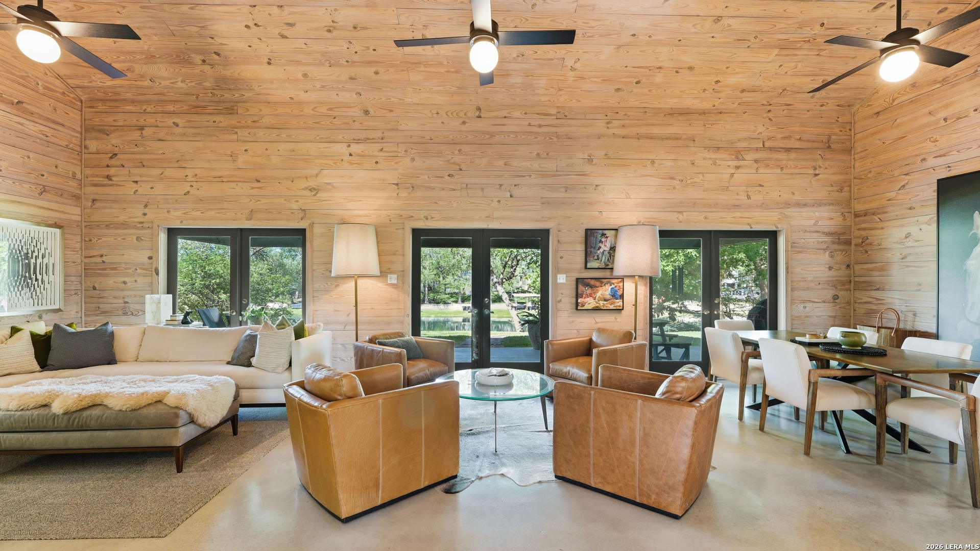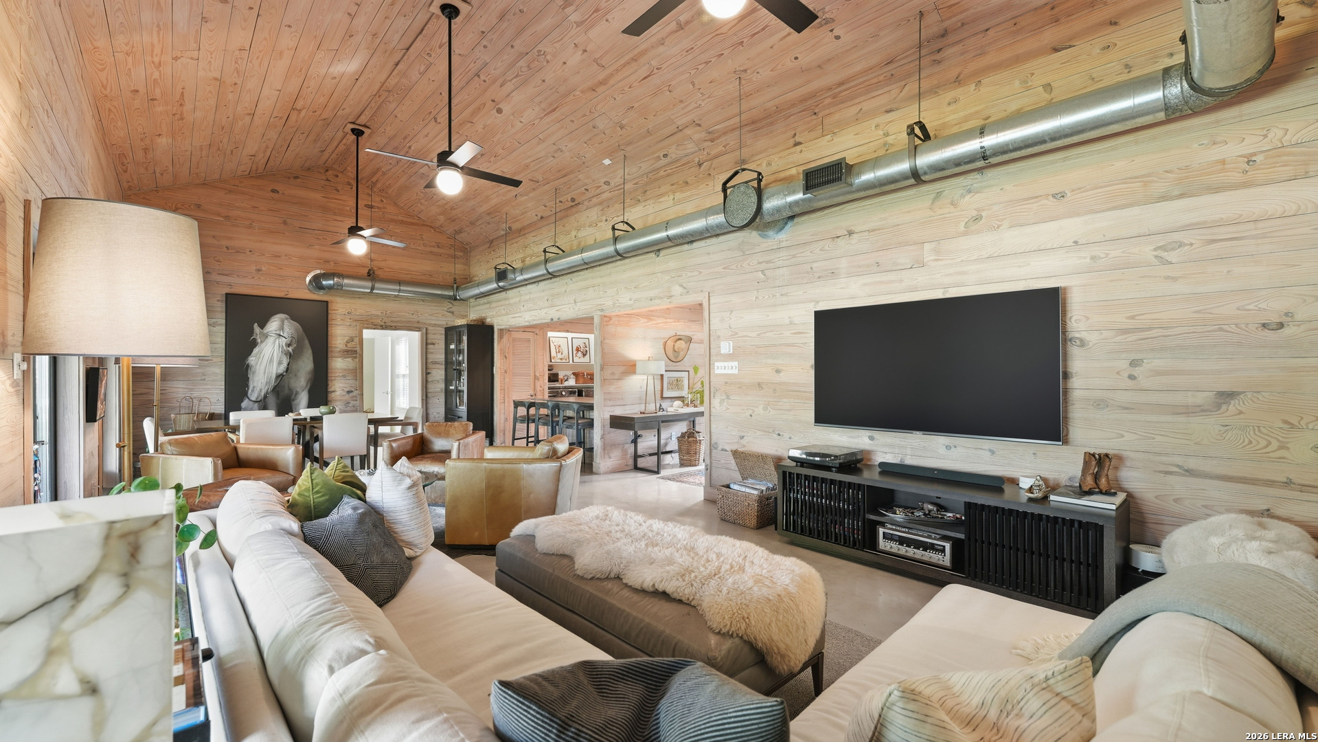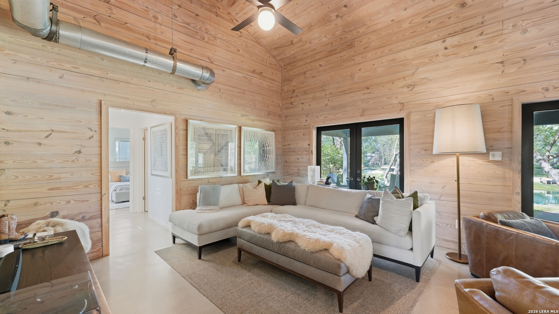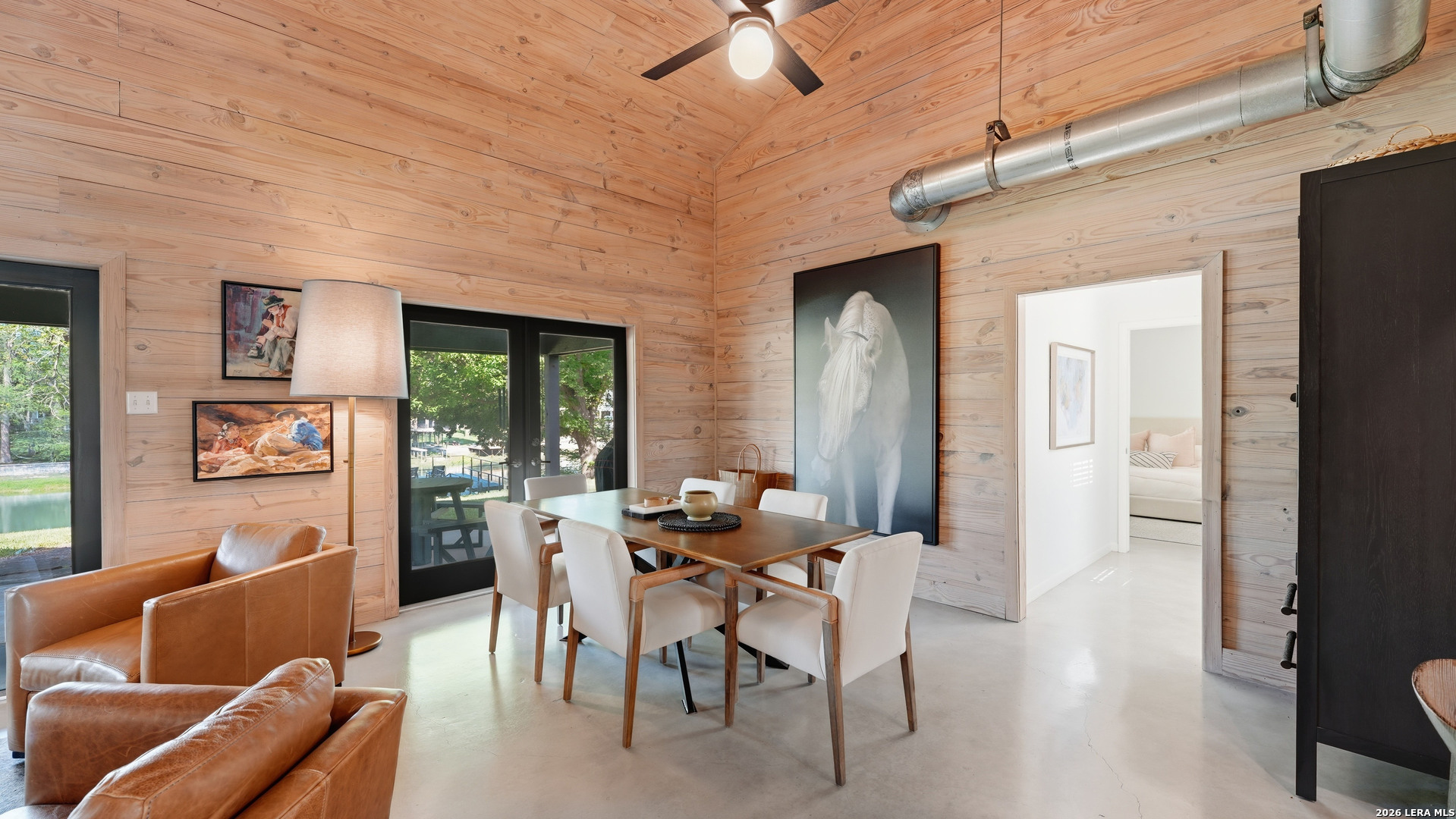Are you looking for a cozy, yet modern cottage on Lake McQueeney? Here it is! This 1773 sq ft home with 3 bedrooms, 2 baths sits on 1/2 an acre, with 100 ft of waterfront! The main/dining space is grand central in this home with it's cathedral ship-lap ceiling and walls that are art in itself! The metal AC exposed duct-work just adds to the modern cottage feel. Off the entryway is the 3rd bedroom which would also be a good office. The home was remodeled in 2021 with new an updated kitchen include new countertops, new tile backsplash, appliances and the range was retrofitted for gas cooking! The primary bedroom suite is past the kitchen with a walk in closet, patio doors that access a covered porch and a master bathroom that was recently renovated to include a large walk in shower and a custom double vanity, new lighting and plumbing fixtures. Head to the other side of the house for the 3rd guest bedroom, with outdoor access to it's over covered patio and a hall guest bath updated with a tub/shower combo, tile surround and new custom vanity with updated lighting. New HVAC and windows in 2021. 3 car carport with EV charging point in 2024 and new boat house with sundeck in 2025.
