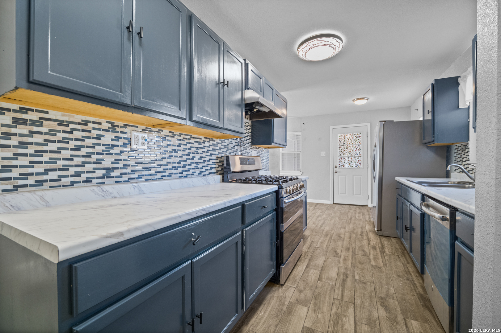 Beautiful home in Bellaire featuring porcelain tile flooring, interior and exterior paint, and a kitchen with tile finishes, cabinetry, countertops, backsplash, lighting fixtures, and stainless steel appliances. Additional features include fixtures, ceiling fans, and carpet. Buyer to verify current condition and features.