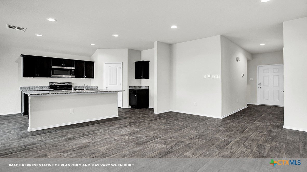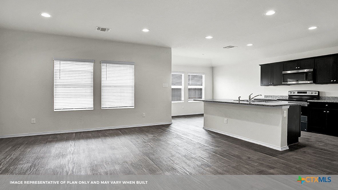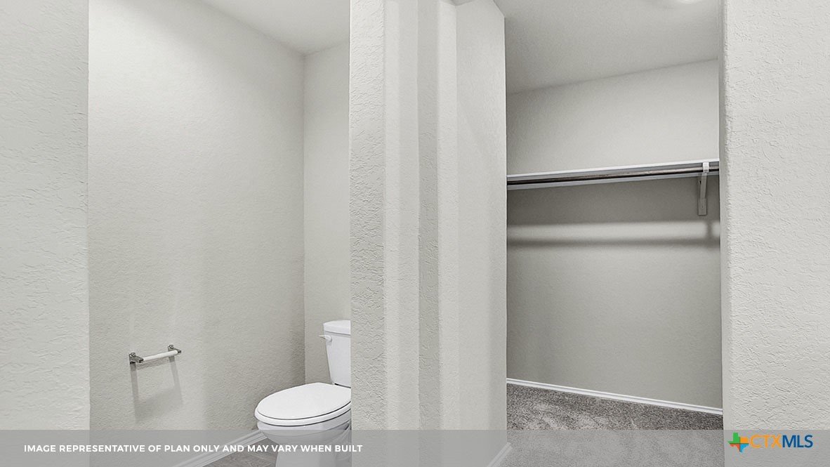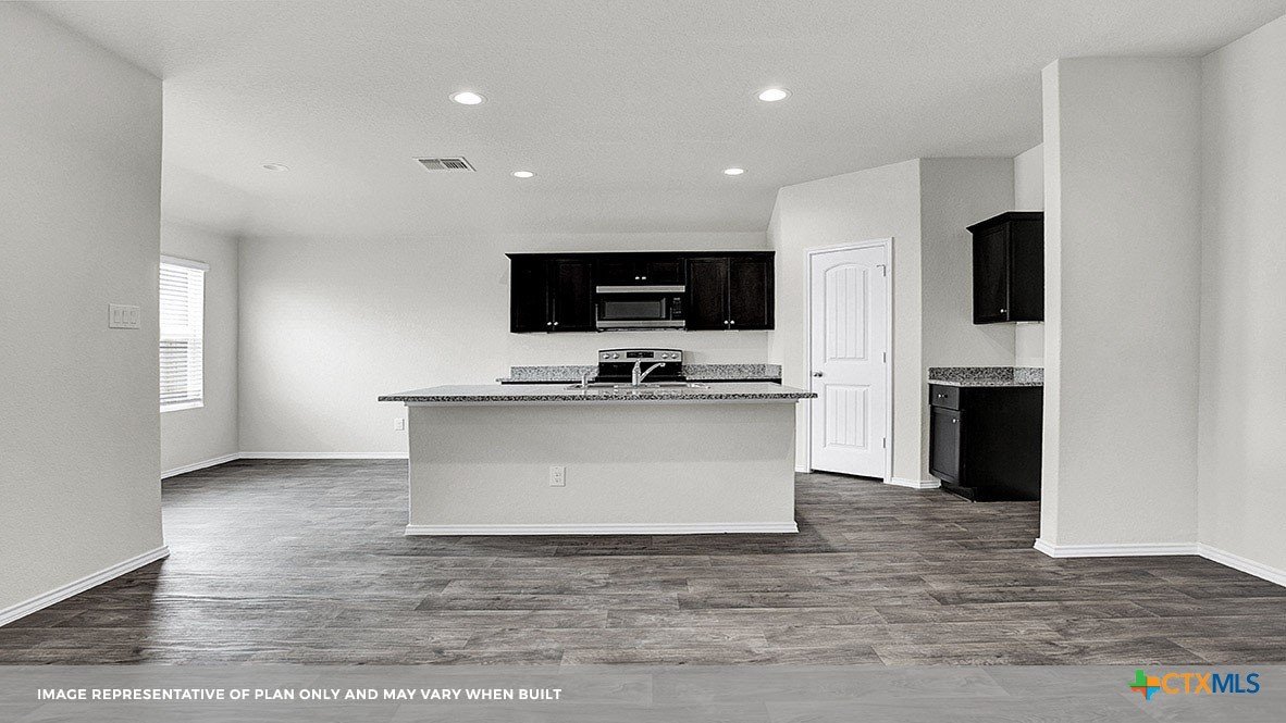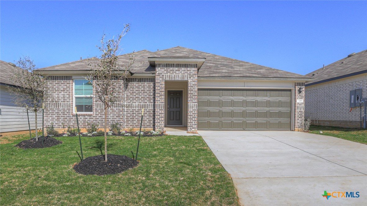 MOVE IN READY! INCLUDES WASHER/DRYER, BLINDS, GARAGE DOOR OPENER AND REFRIGERATOR IN ADDITION TO STANDARD APPLIANCE PACKAGE. The Ashburn is one of our one-story floorplans featured at our Arroyo Ranch community in Seguin, Texas. This home is perfect for smaller families or homeowners looking to downsize. Featuring 3 bedrooms and 2 bathrooms, this home also includes a 2-car garage all within 1,263 square feet of living space. When you enter the home from the covered front porch, you will find a short hallway that leads to the secondary bedrooms, bathroom, and utility room. Bathroom 2 includes a tub/shower combination, and the bedrooms include a large closet with shelving. Whether you use these rooms for an office, child’s room or guest room, there is enough room for sleep and play. The living area is an open concept design, so you are always close to the action in the family room, kitchen or dining area. The kitchen features an island with an undermount sink facing out towards the family room, stainless steel appliances, granite countertops, corner pantry closet and 36” upper cabinets. Enjoy the natural light with four windows looking out to the backyard. The primary bedroom is off the family room and includes its own attached bathroom, making the start of your day a seamless step from sleep to your morning routine. Enjoy the 5’ walk in shower, double vanity and separate door to the toilet for privacy. A walk-incloset with generous shelving is connected to the bathroom. The Ashburn includes vinyl flooring throughout the common areas of the home, and carpet in the bedrooms. All our new homes feature a covered back patio, full sod and an irrigation system in the front and back yard, and a 6’ privacy fence around the back yard. This home includes our America’s Smart Home base package, which includes the Amazon Echo Pop, Front Doorbell, Front Door Deadbolt Lock, Home Hub, Thermostat, and Deako® Smart Switches.