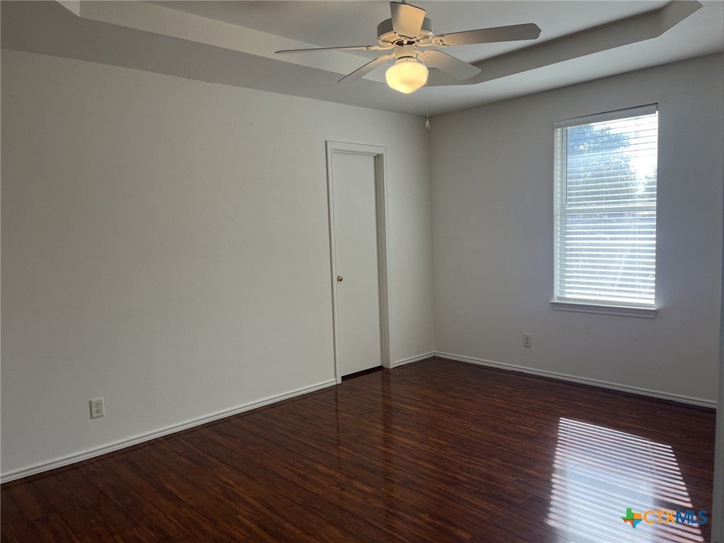 This 4 bedroom, 2 bathroom home features a large living room, galley style kitchen open to the dining area . Secondary bedrooms are on opposite side from the primary bedroom with a full bathroom. Primary bedroom has its own full bathroom with double vanities and walk in closet. The home sits at the end of a cul de sac lot