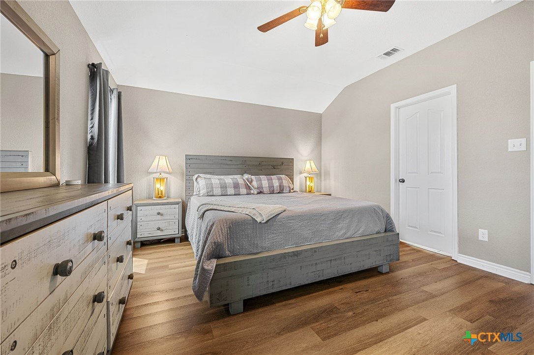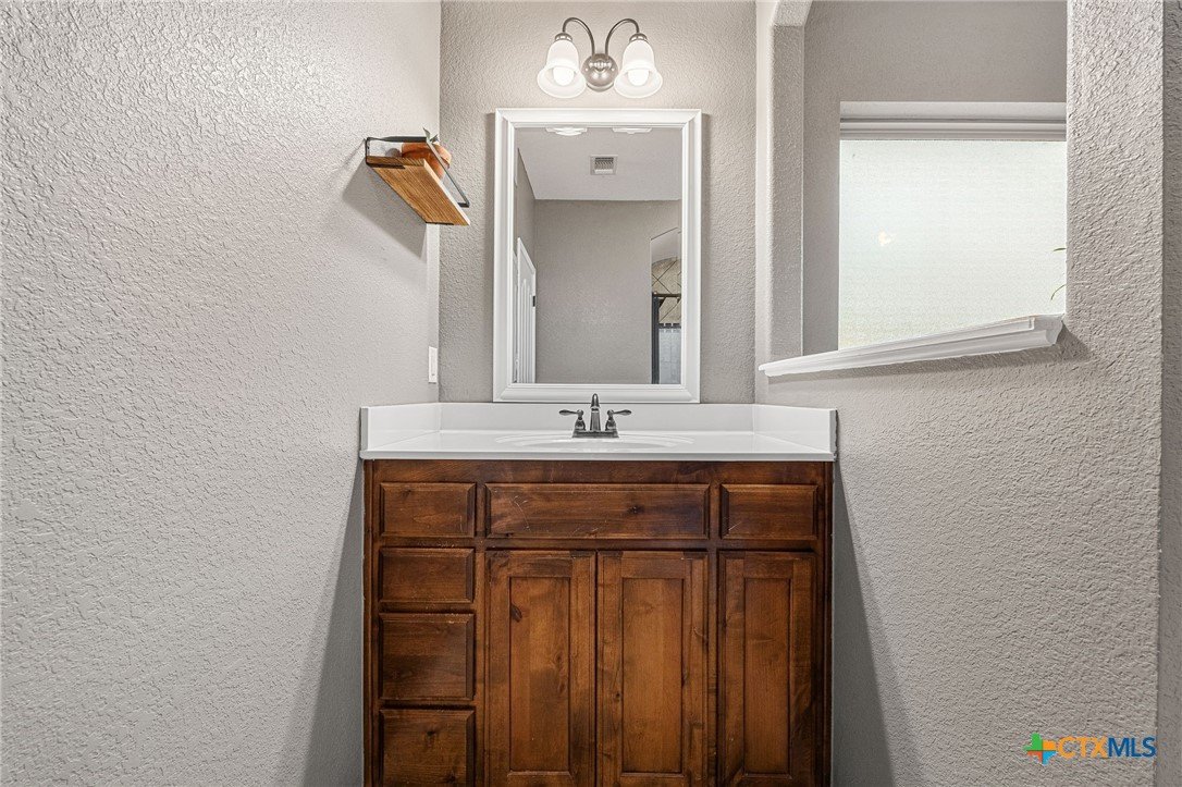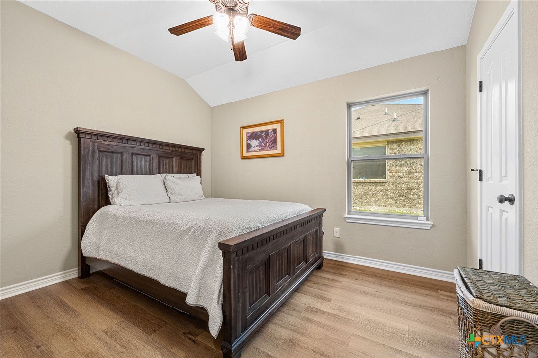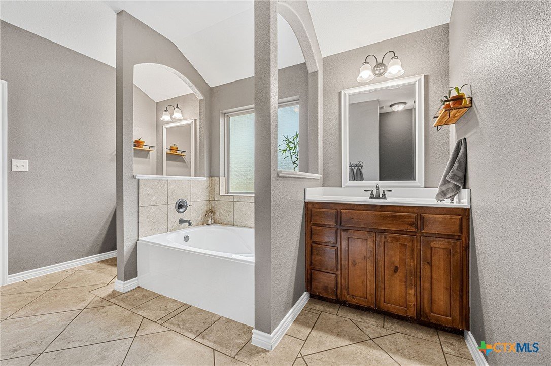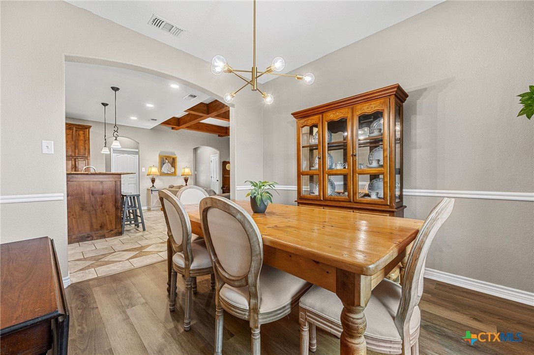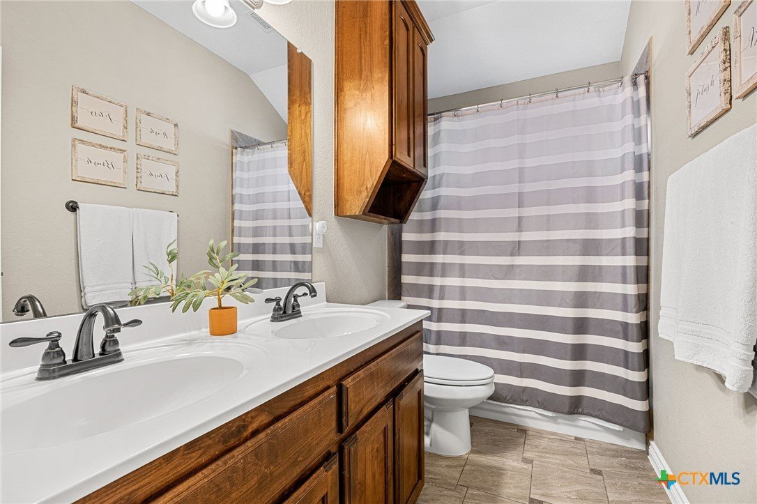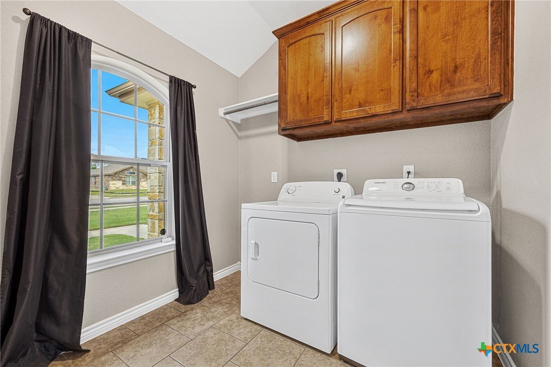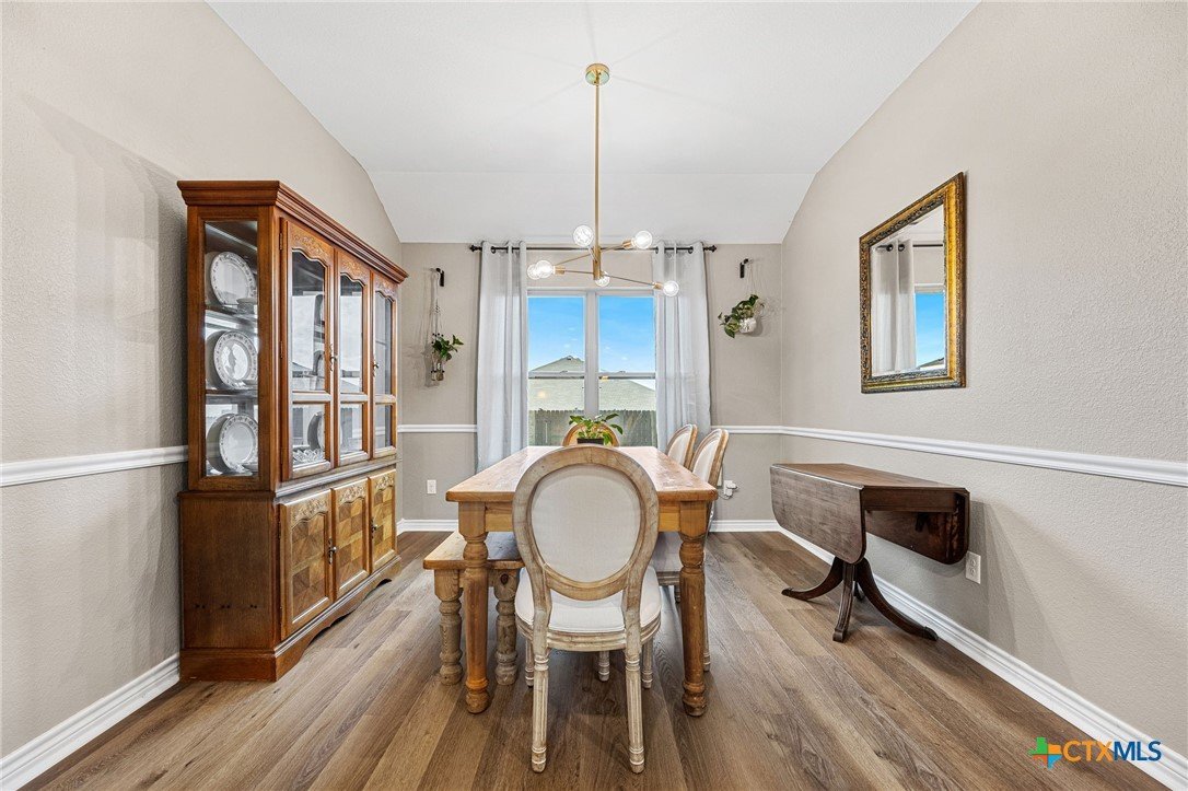 Thoughtfully designed and beautifully maintained, this all brick 4-bedroom, 2-bath home offers comfort, style, and convenience in a prime Copperas Cove location—just minutes from schools, shopping, dining, entertainment, and Fort Hood. The open-concept floor plan is enhanced by a striking coffered ceiling and a cozy wood-burning fireplace with a stone surround, creating a warm and inviting living space. Elegant tile flooring with decorative accents flows throughout the main areas. The kitchen is a standout, featuring granite countertops, upgraded cabinetry, a breakfast bar, and a bright breakfast area—perfect for both everyday living and entertaining. The spacious primary suite offers a walk-in closet, ceiling fan, and a luxurious en suite bathroom complete with a large garden tub, oversized walk-in shower, and dual vanities. In addition to the primary suite, the home features three well-appointed guest bedrooms and a full bathroom, providing ample space and flexibility for family, guests, or a home office. Step outside to enjoy the private backyard, where a covered patio provides the ideal setting for relaxing evenings, weekend gatherings, or family fun. This home combines thoughtful design and desirable features in a location that truly delivers.