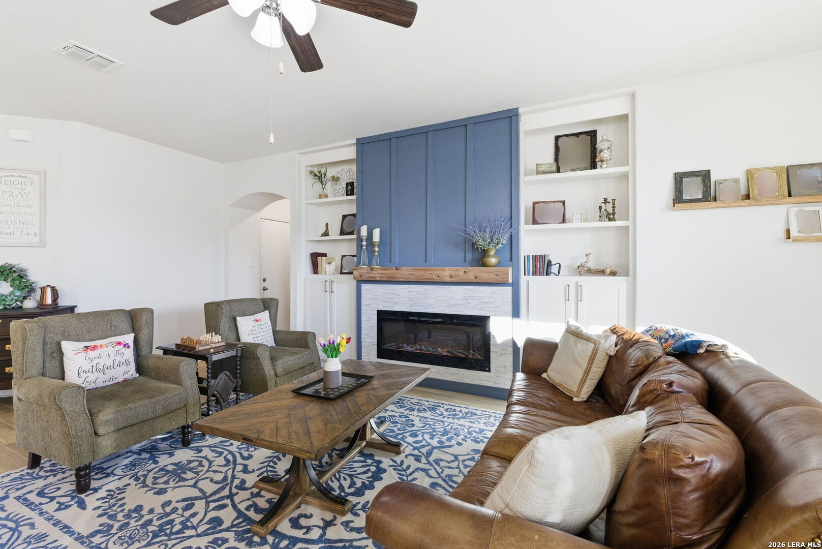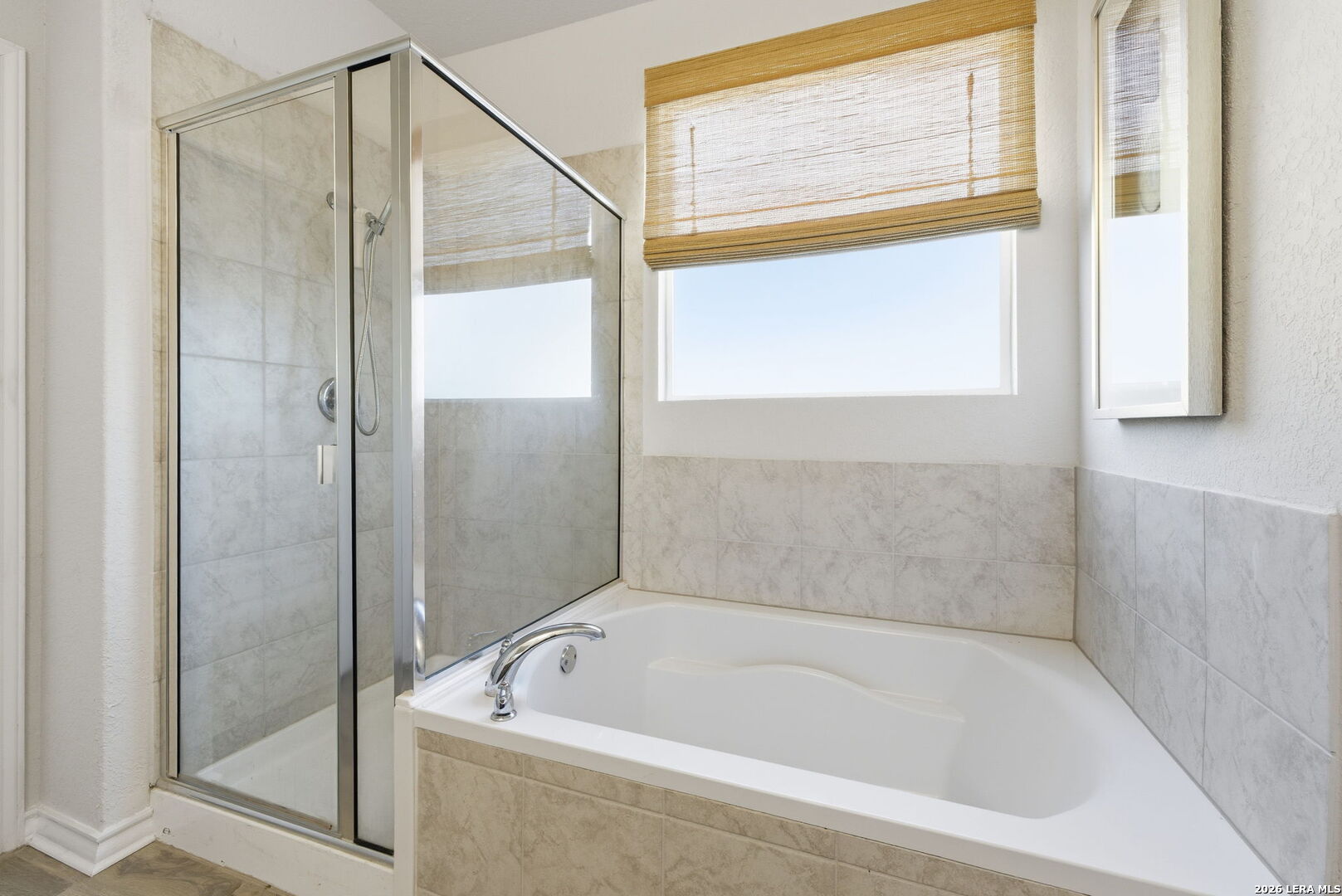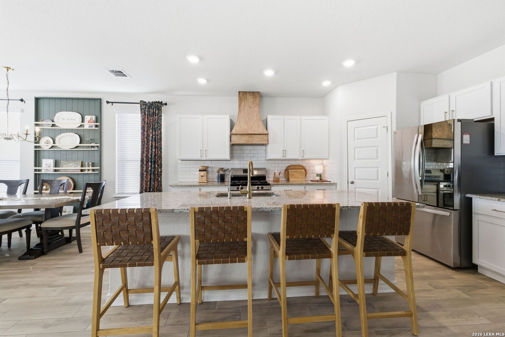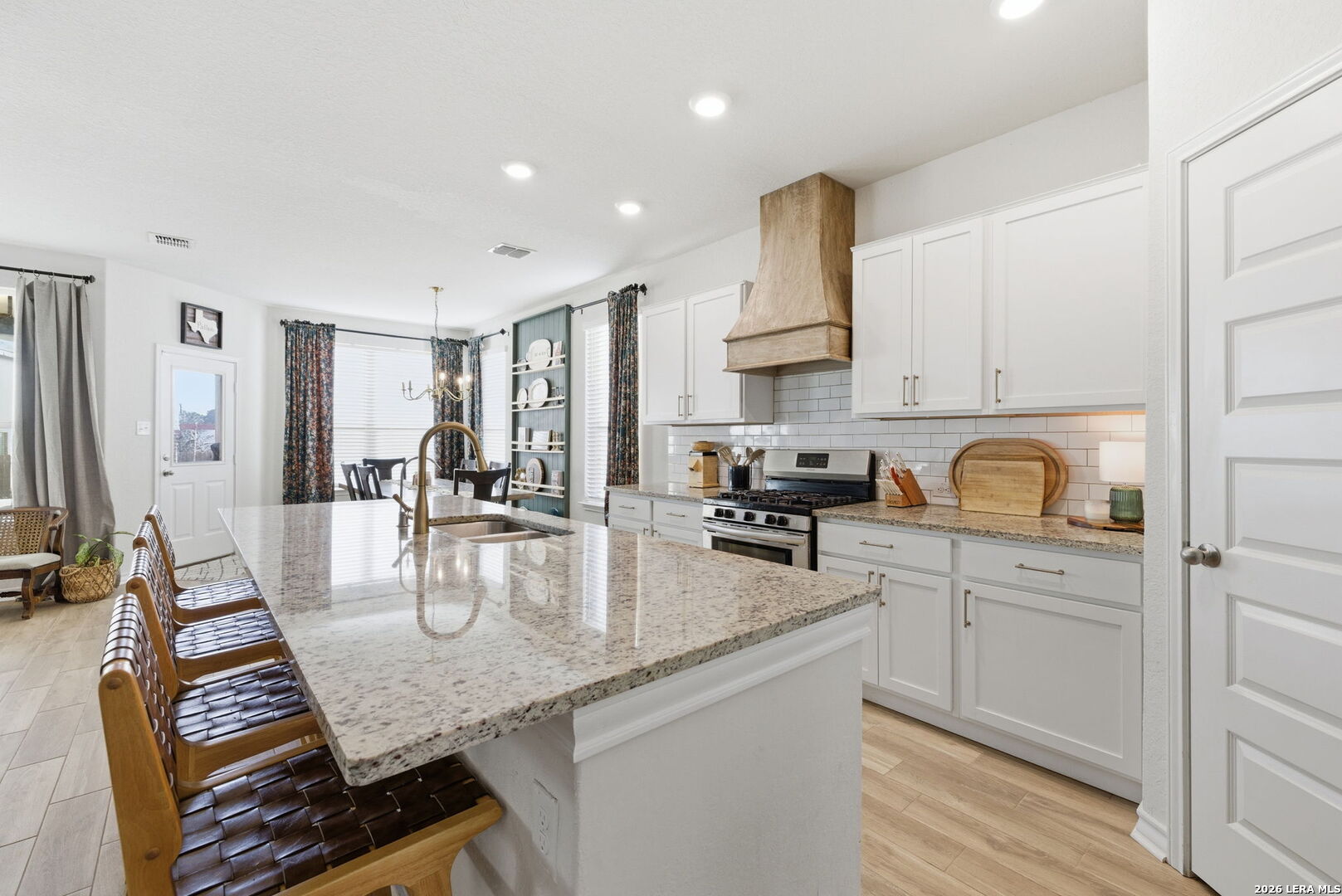 Located in sought-after Copper Canyon and just a five-minute walk to neighborhood amenities, this beautifully upgraded 5-bedroom, 3.5-bath residence offers 2,869 square feet of thoughtfully curated living space on a spacious 1/4-acre corner lot. From the charming stone exterior to the inviting front porch, the home makes a striking first impression. The moment you step inside, soaring ceilings and abundant natural light create a bright, uplifting atmosphere. Inside, porcelain wood-look tile spans the entire first floor, creating warmth, durability, and visual continuity. The open-concept layout is anchored by a stunning living room featuring a custom electric fireplace with 42" built-ins, blending warmth and architectural detail while providing functional storage. The kitchen has been tastefully elevated with granite countertops, stainless steel appliances, decorative brass handles and a custom decorative wood hood vent that serves as a beautiful focal point. Adjacent to the kitchen, the dining space is enhanced by a designer light fixture and a custom decorative plate rack, adding character and charm to everyday gatherings. Spacious primary suite featuring vaulted ceilings, abundant natural light, and warm porcelain tile for a bright, airy feel. The room comfortably accommodates large furniture. The en-suite bath offers a spa-like retreat with a soaking tub framed by elegant tile surround, and custom Quartz double vanity with updated gold fixtures, lighting and framed mirrors. Large windows enhance the space with natural light, creating a clean, relaxing atmosphere perfect for unwinding. Upstairs feels like an entirely separate sanctuary, offering a private retreat from the main living areas. The expansive family room is anchored by a custom built-in, blending thoughtful organization with refined design and elevating the space beautifully. The solid wood staircase adds richness and craftsmanship rarely found in this price range. All bathrooms have been thoughtfully updated with refined finishes. The secondary bedrooms are generously sized and feature walk-in closets along with ceiling fans for year-round comfort. Each of the four bedrooms includes access to a Jack-and-Jill bathroom, offering excellent functionality and convenience for secondary living spaces Outdoors, the covered patio overlooks the expansive backyard, offering ample room for a future pool, garden, or entertaining space - a rare benefit of the oversized corner lot. One of the most exceptional aspects of this home is the community, numerous monthly events offered for all members of your family to enjoy. This home offers intentional upgrades throughout, generous living spaces, and a prime location, at an exceptional value!