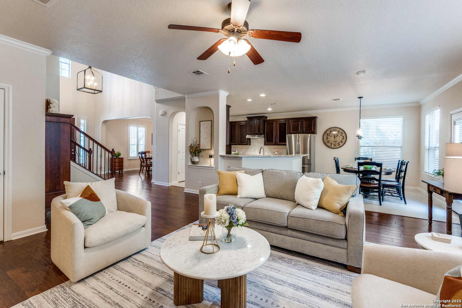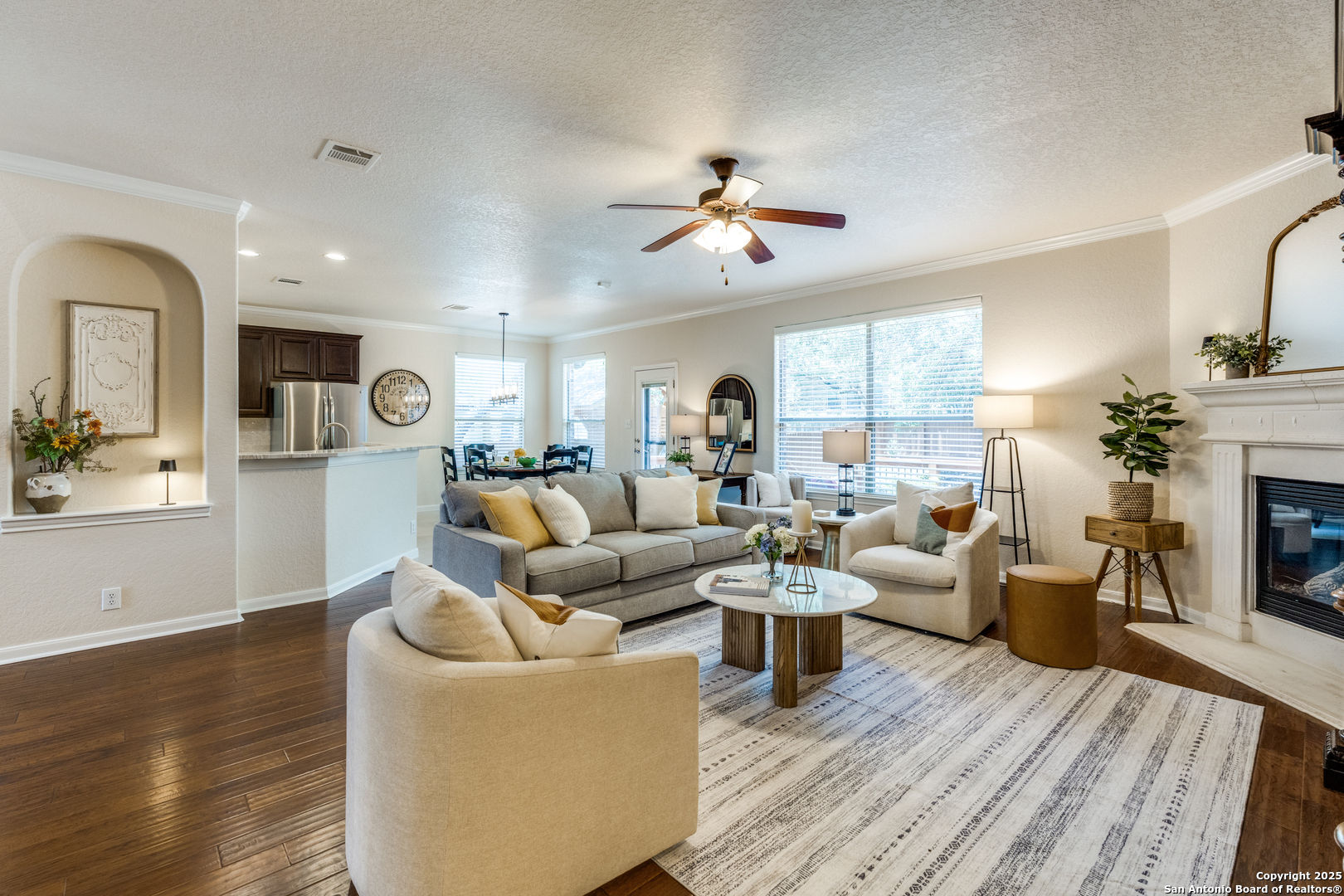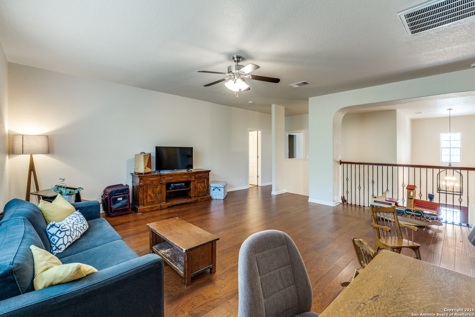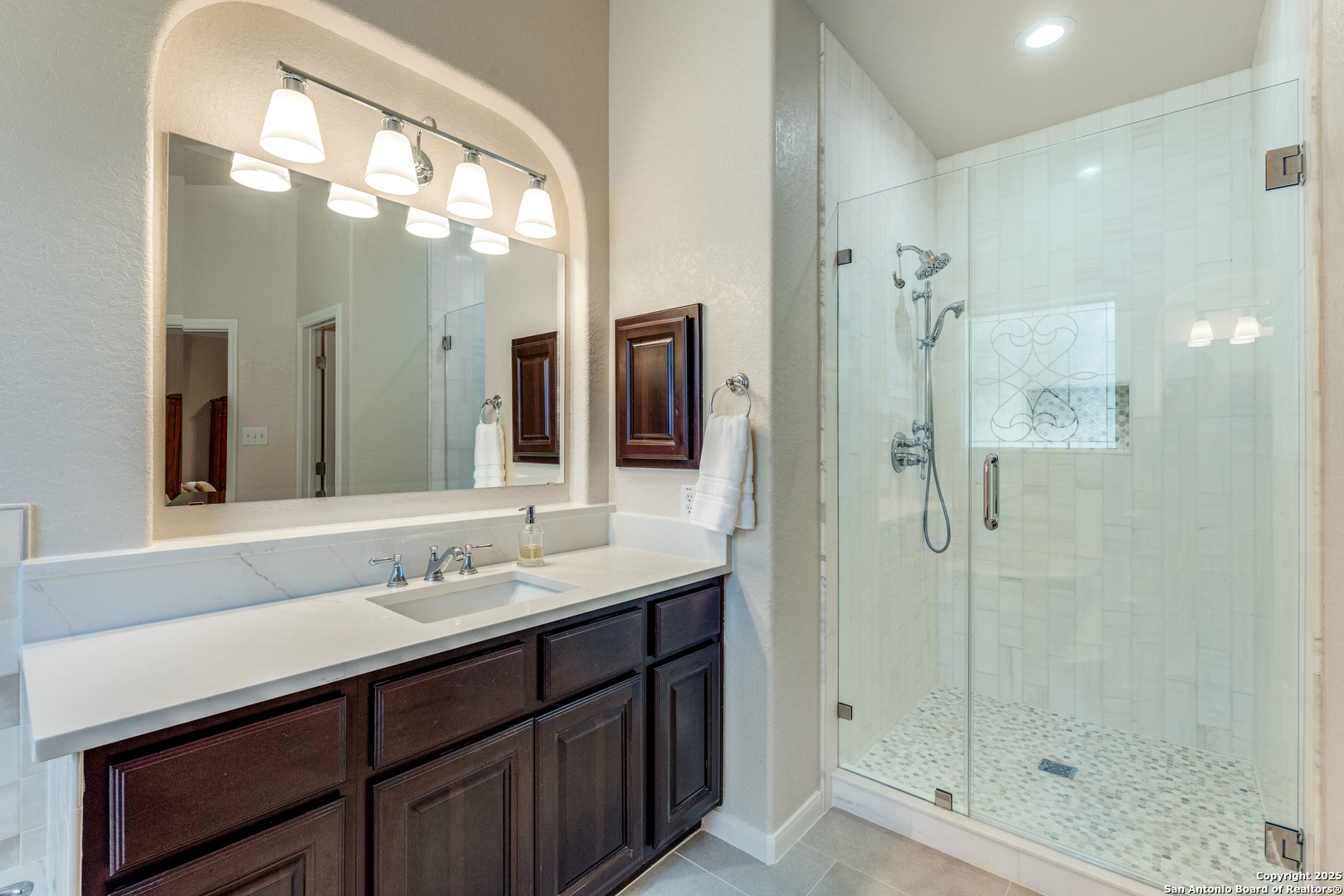 VA ASSUMABLE LOAN FOR QUALIFIED BUYERS W/ LENDER APPROVAL! Fabulous home and location in the beautiful neighborhood of Vallitas at Cibolo Canyons. This welcoming 5 bd/4 bath home is comfortably sitting on a corner lot with 2 car side garage entrance. Not only pleasing on the outside, but beautiful renovations done throughout. Gourmet Kitchen with gas stove, island, breakfast bar, great appliances, new floor and stunning quartzite countertops. The primary bath remake has a clean, crisp, spa feel with quality quartz countertops, new sinks, mirrors, separate double vanities, new flooring and a beautiful new glass walk in shower. This home has the comforts and beauty of mature trees, front porch, large backyard deck, open floor plan with high ceilings and a large Game Room and coveted location. Location not only coveted for shopping, eateries, PGA golf course and Spa, but located within NEISD! Amenity Center w/ Lazy River Pool, Lg Pool, Covered Playground, Basketball Court, Soccer field, Fitness Center and more!