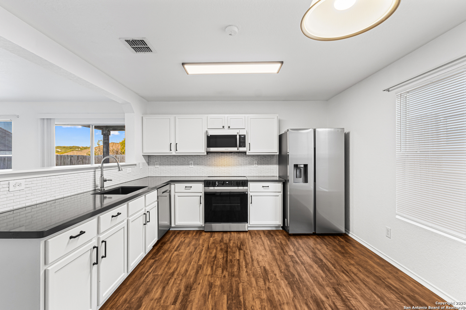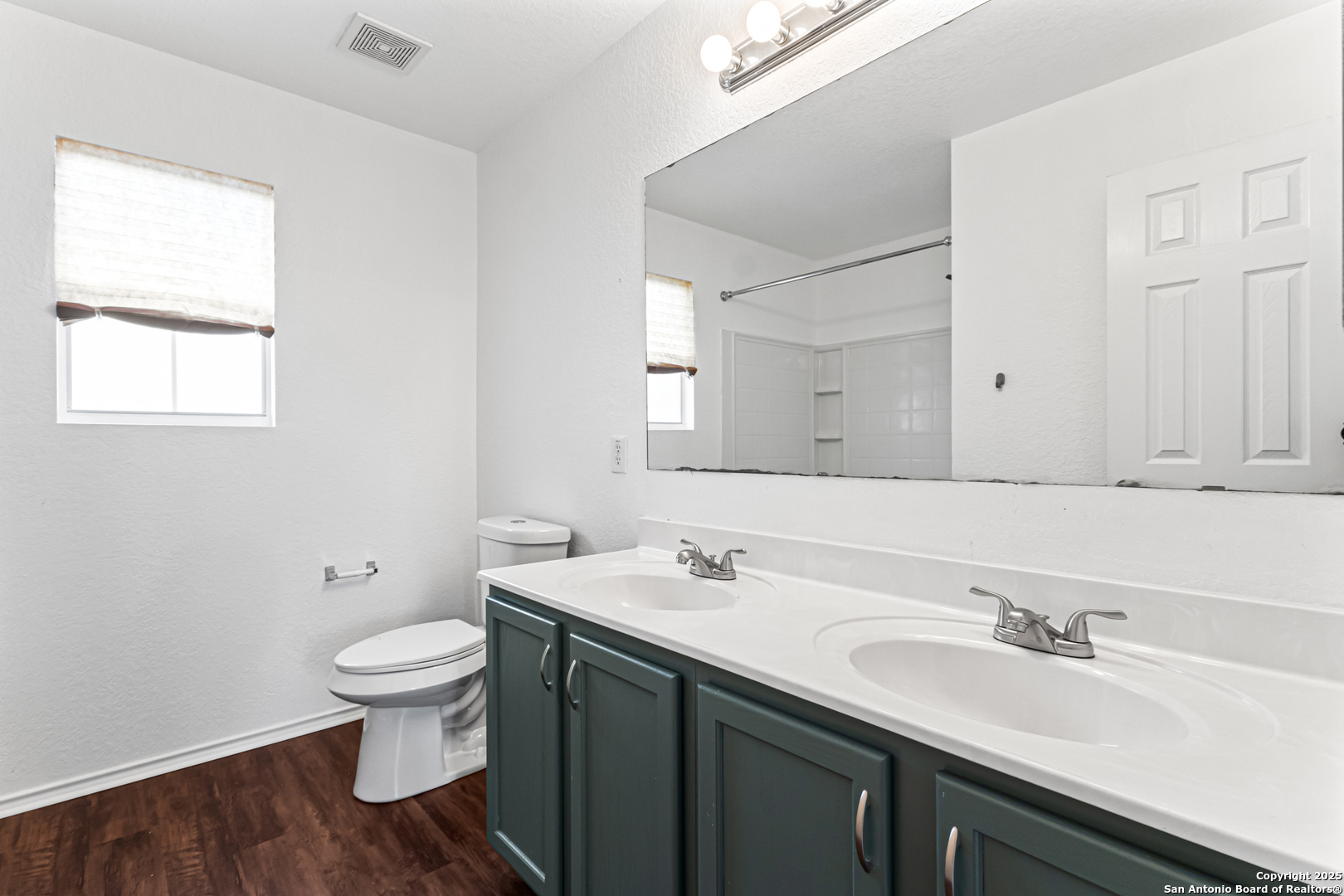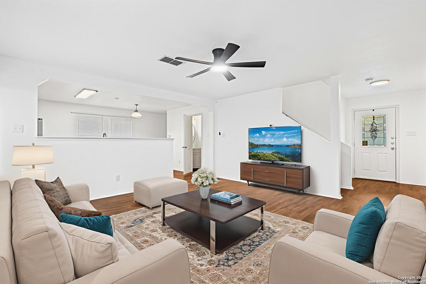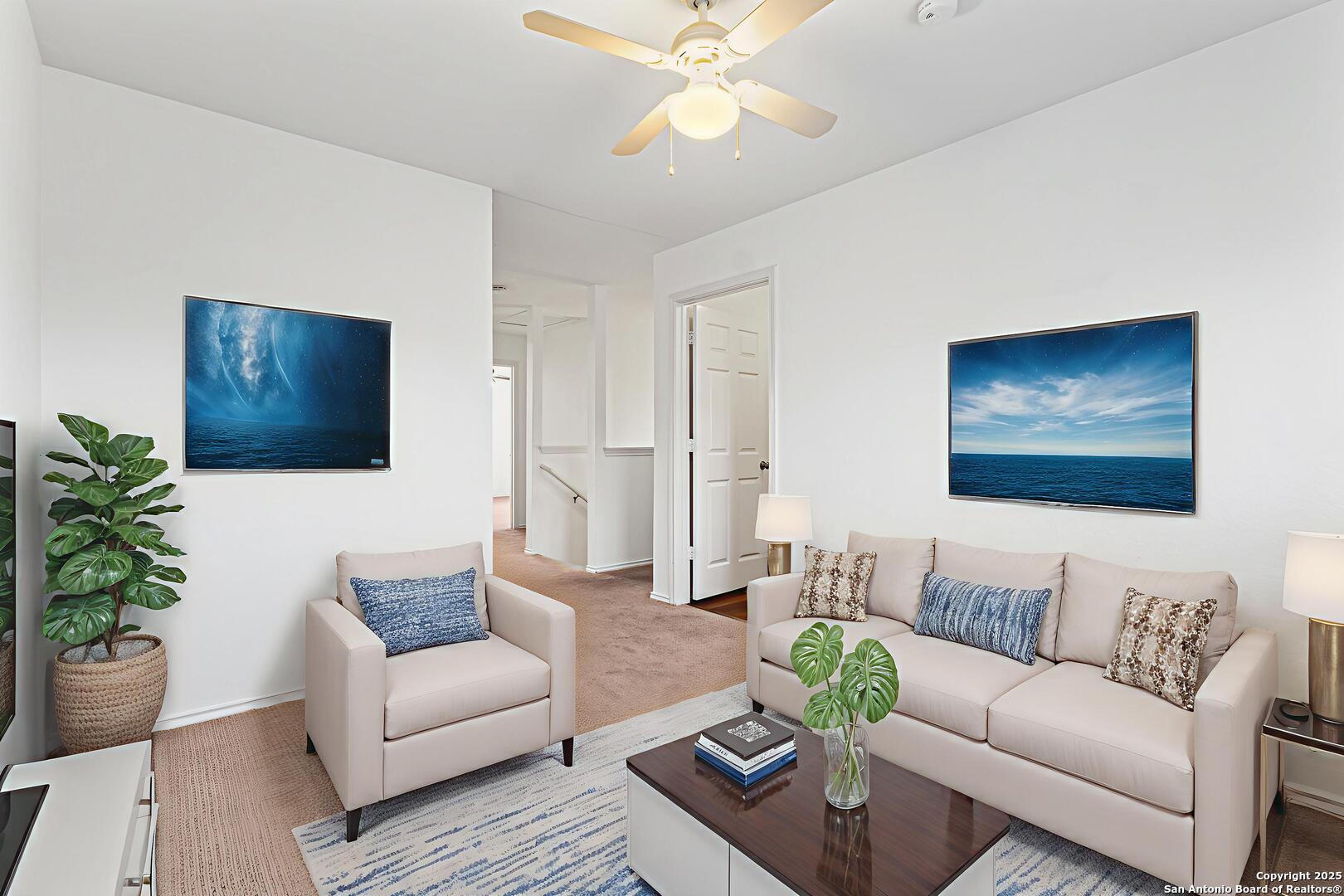 Welcome to this 3 bedroom, 2.5 bath home in a prime NE San Antonio location! The open layout features no carpet downstairs and two living areas - one on each level - offering plenty of space to relax or entertain. The eat-in kitchen has great flow into the main living area that overlooks the backyard. Upstairs, all bedrooms and the laundry room are conveniently located on the same level. Enjoy evenings on the covered patio, perfect for unwinding after a long day. This home offers comfort, function, and a great location close to schools, shopping, and dining.