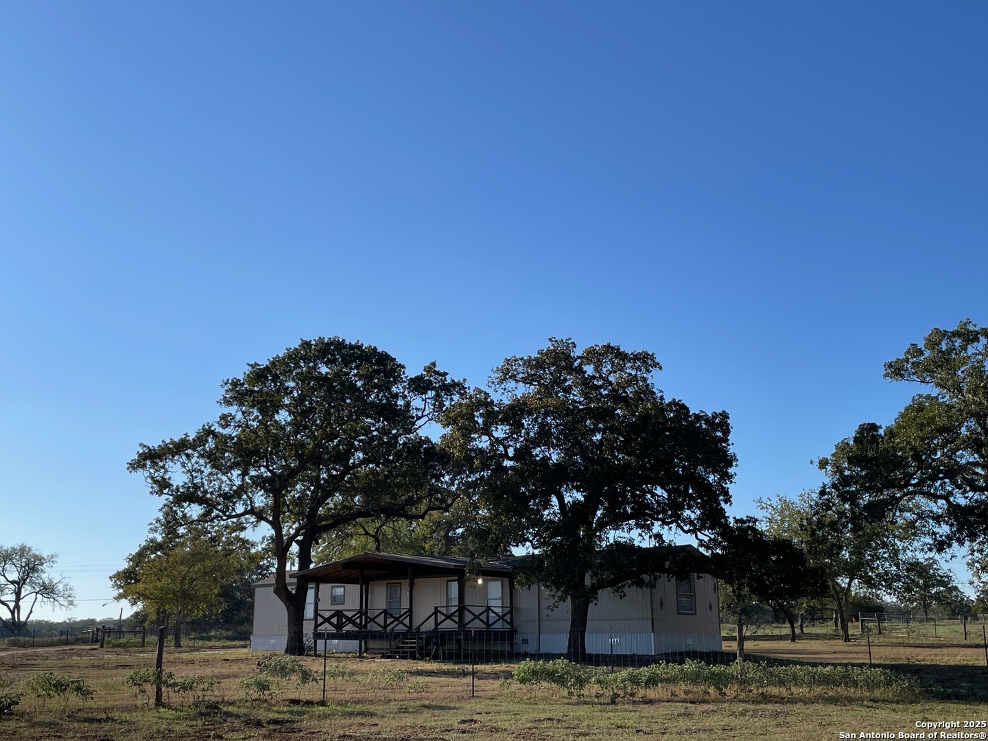 AMAZING HOME ON 11 ACRES WITH A STOCK TANK AND BRAND NEW WATER WELL. Inside contents of home to convey with acceptable offer: Including refrigerator, oven, kitchen table, washer and dryer, bunk beds, entertainment center. Beautiful Ag Exempt land with giant oak trees thru out and it is only 18 minutes to Seguin! Highly desirable Guadalupe County line land with lots of wildlife and minimal restrictions. No city taxes, No HOA. Freedom!
