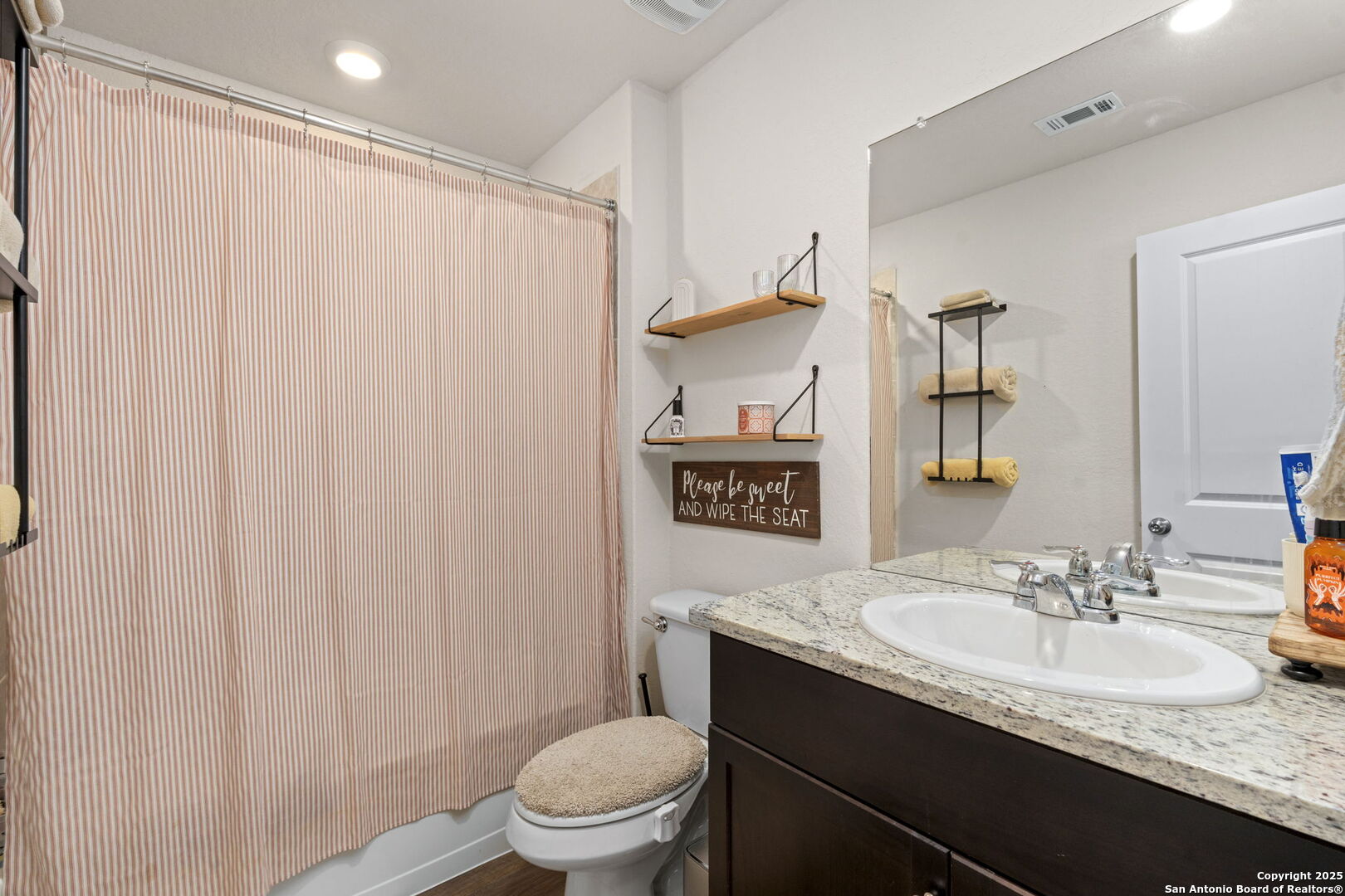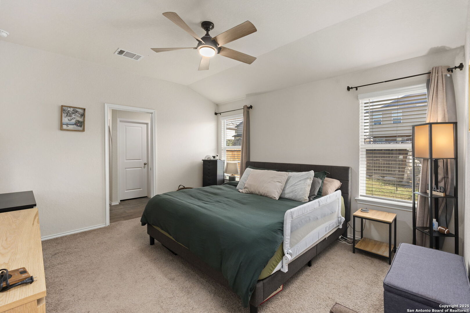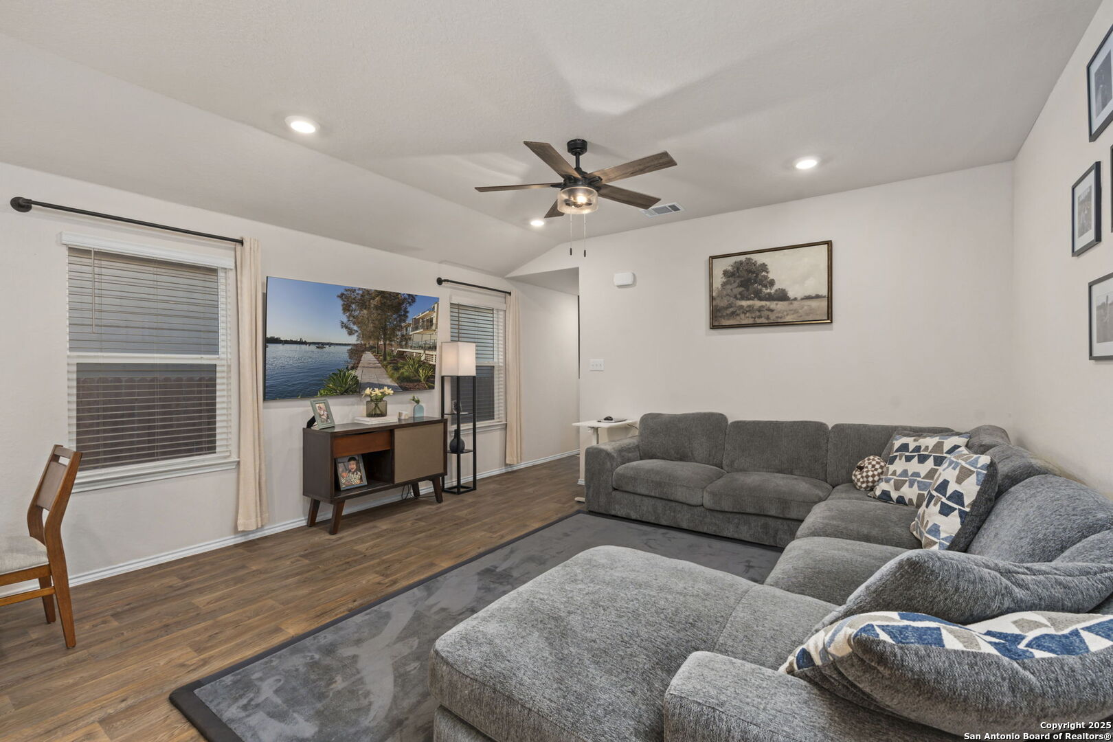 Client has FHA assumable loan with 4.375 with a minimual lump sum payment. Discover the perfect blend of style, comfort, and convenience , this beautifully maintained home offers approximately 1,540 square feet of thoughtfully designed living space, featuring three spacious bedrooms and two full baths. The open-concept layout seamlessly connects the living area to a sunlit breakfast nook and a stylish kitchen, where granite countertops, an updated backsplash, and gas cooking create an inviting space for both relaxing evenings and lively gatherings. The primary bedroom is a true retreat, boasting a walk-in closet with updated organizer shelving to keep everything neat and accessible. Step outside from the kitchen onto a covered patio overlooking a backyard that's perfect for weekend get-togethers or unwinding after a busy day. The two-car garage provides ample space for vehicles and storage, ensuring practicality without sacrificing style. Residents of this vibrant community enjoy access to fantastic amenities, including a sparkling swimming pool, a small splash pad, and a playground-ideal for recreation and leisure just steps from home. Convenience is truly at your doorstep, with major retailers such as Costco, Walmart, and H-E-B nearby, along with the Dove Creek shopping center for all your shopping and dining needs. Quick access to Highway 90, Loop 1604, and Loop 410 makes commuting throughout San Antonio effortless, whether you're heading to work, school, or exploring the city's many attractions. Don't miss your opportunity to experience modern living in a sought-after neighborhood.