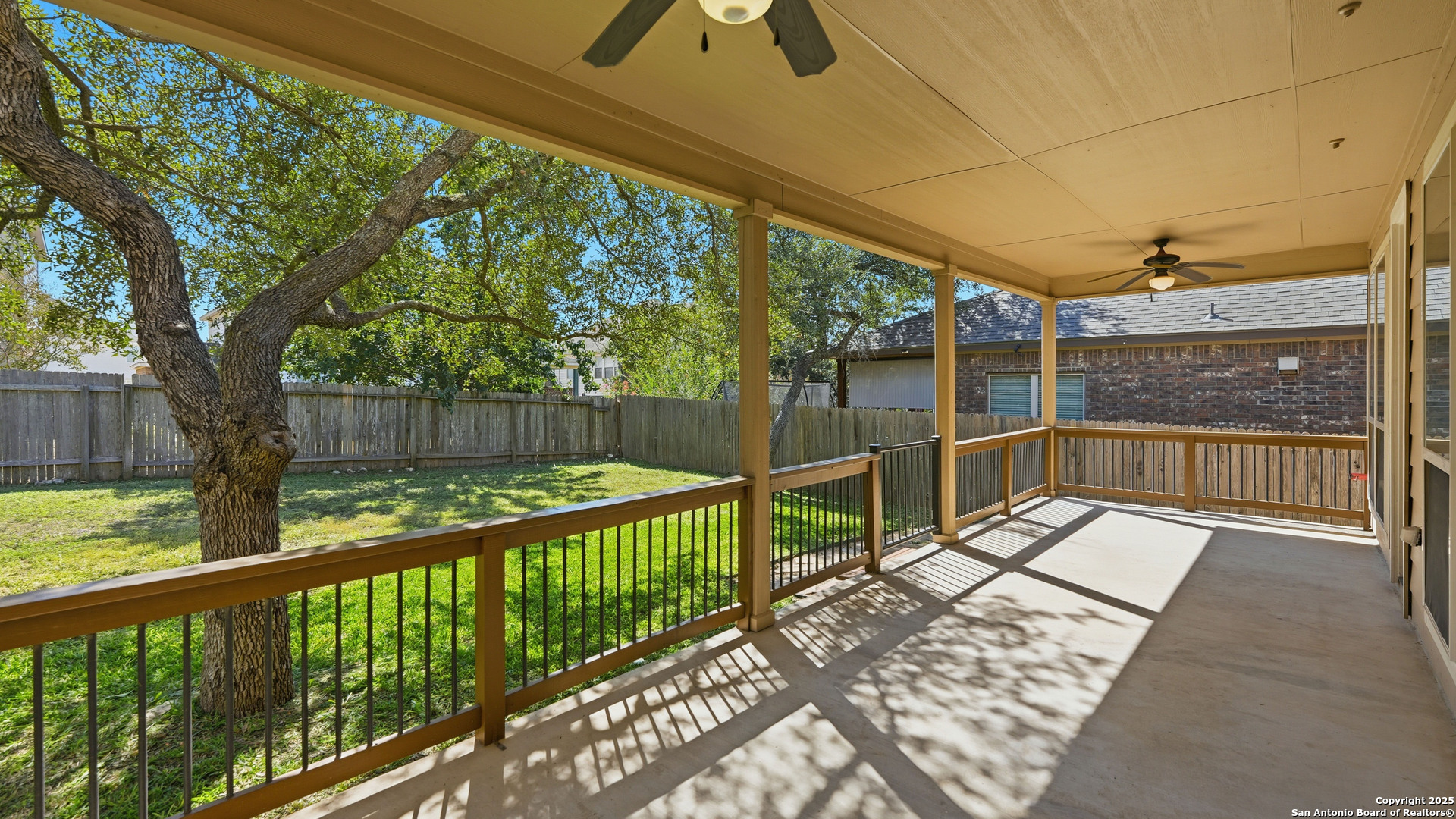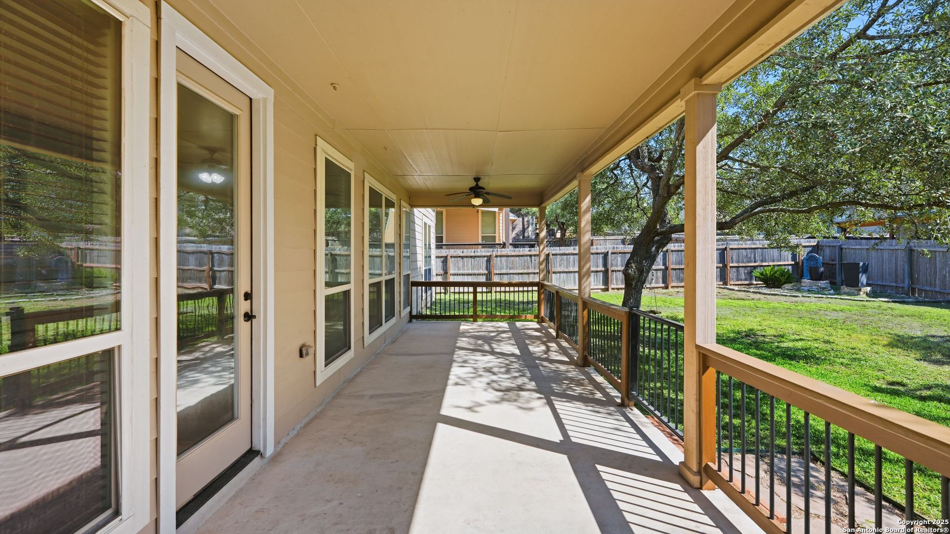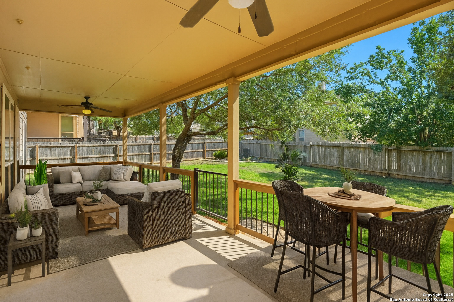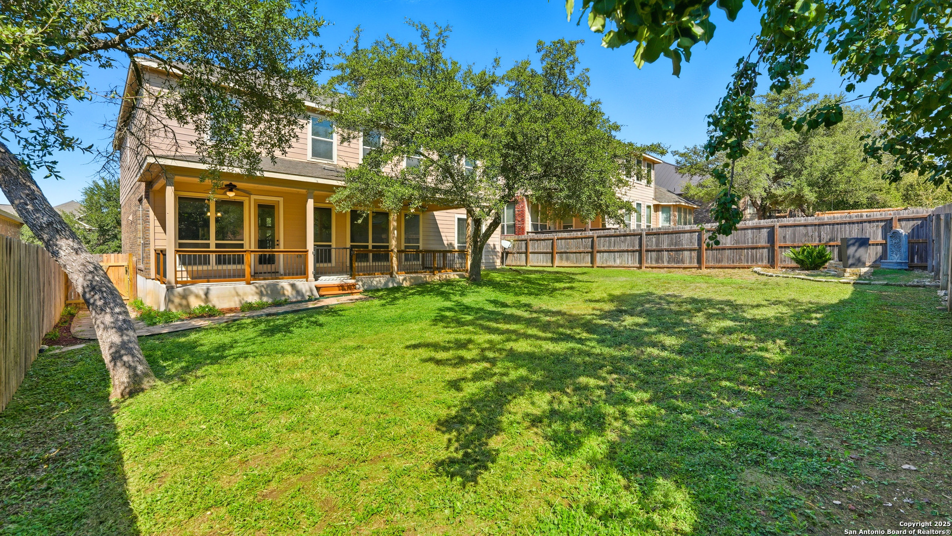 Step inside this spacious 5-bedroom, 4.5-bath home that blends comfort, function, and fresh updates throughout. The main level features wood and tile flooring, a dedicated office, a separate dining area that's ideal for holidays and gatherings, and a welcoming living space with a cozy gas fireplace. The kitchen is designed for everyday use and entertaining, with granite counters, a built-in oven, stainless steel appliances, a gas stove, and plenty of cabinet storage. A guest suite with a full bath is conveniently located downstairs. Upstairs, brand-new carpet runs through all four bedrooms and the loft. The primary suite includes a large bath and an oversized closet. Another upstairs bedroom features its own full bath. The loft offers great flexibility, use it as a kids' play area, movie room, gaming space, or homework lounge. Fresh paint carries through the entire home, and a water softener is already in place. Outside, the covered patio provides a comfortable spot to relax or entertain, with a backyard that's easy to enjoy and make your own. This home is just minutes from the JW Marriott San Antonio Hill Country Resort & Spa-offering golf, dining, spa services, and entertainment-along with nearby shopping, dining, and everyday conveniences.