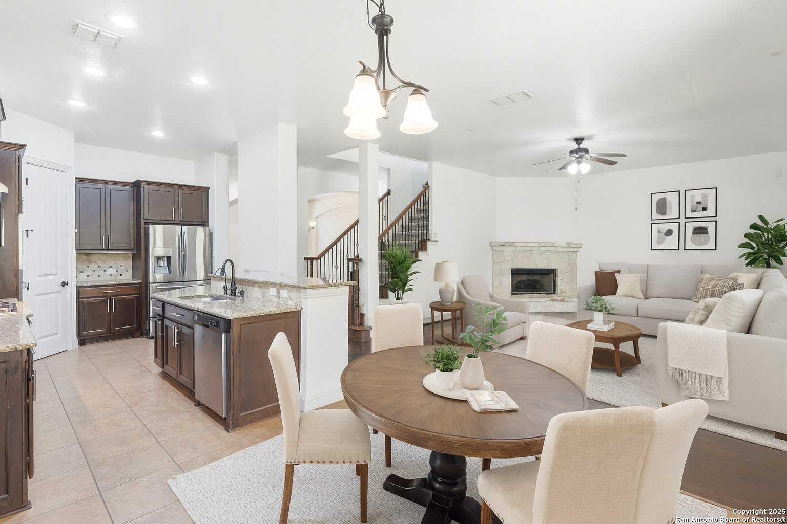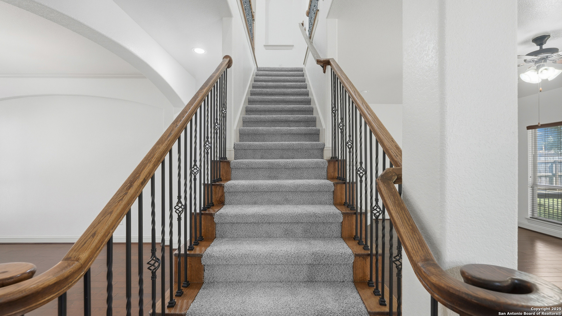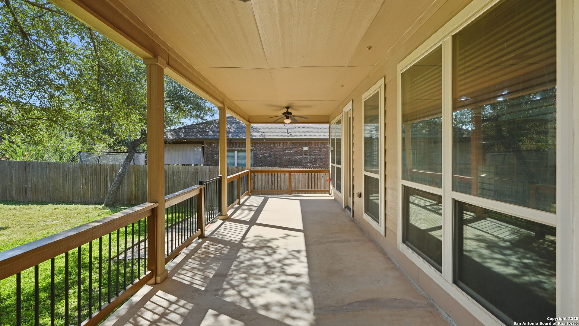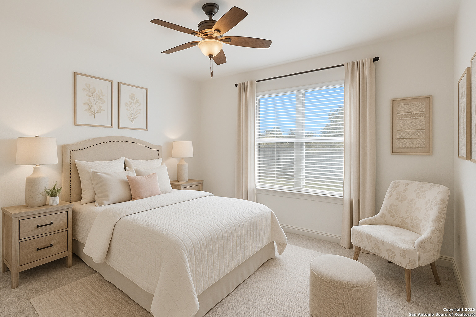Step inside this spacious 5-bedroom, 4.5-bath home that blends comfort, function, and fresh updates throughout. The main level features wood and tile flooring, a dedicated office, a separate dining area that's ideal for holidays and gatherings, and a welcoming living space with a cozy gas fireplace. The kitchen is designed for everyday use and entertaining, with granite counters, a built-in oven, stainless steel appliances, a gas stove, and plenty of cabinet storage. A guest suite with a full bath is conveniently located downstairs. Upstairs, brand-new carpet runs through all four bedrooms and the loft. The primary suite includes a large bath and an oversized closet. Another upstairs bedroom features its own full bath. The loft offers great flexibility, use it as a kids' play area, movie room, gaming space, or homework lounge. Fresh paint carries through the entire home, and a water softener is already in place. Outside, the covered patio provides a comfortable spot to relax or entertain, with a backyard that's easy to enjoy and make your own. This home is just minutes from the JW Marriott San Antonio Hill Country Resort & Spa-offering golf, dining, spa services, and entertainment-along with nearby shopping, dining, and everyday conveniences.