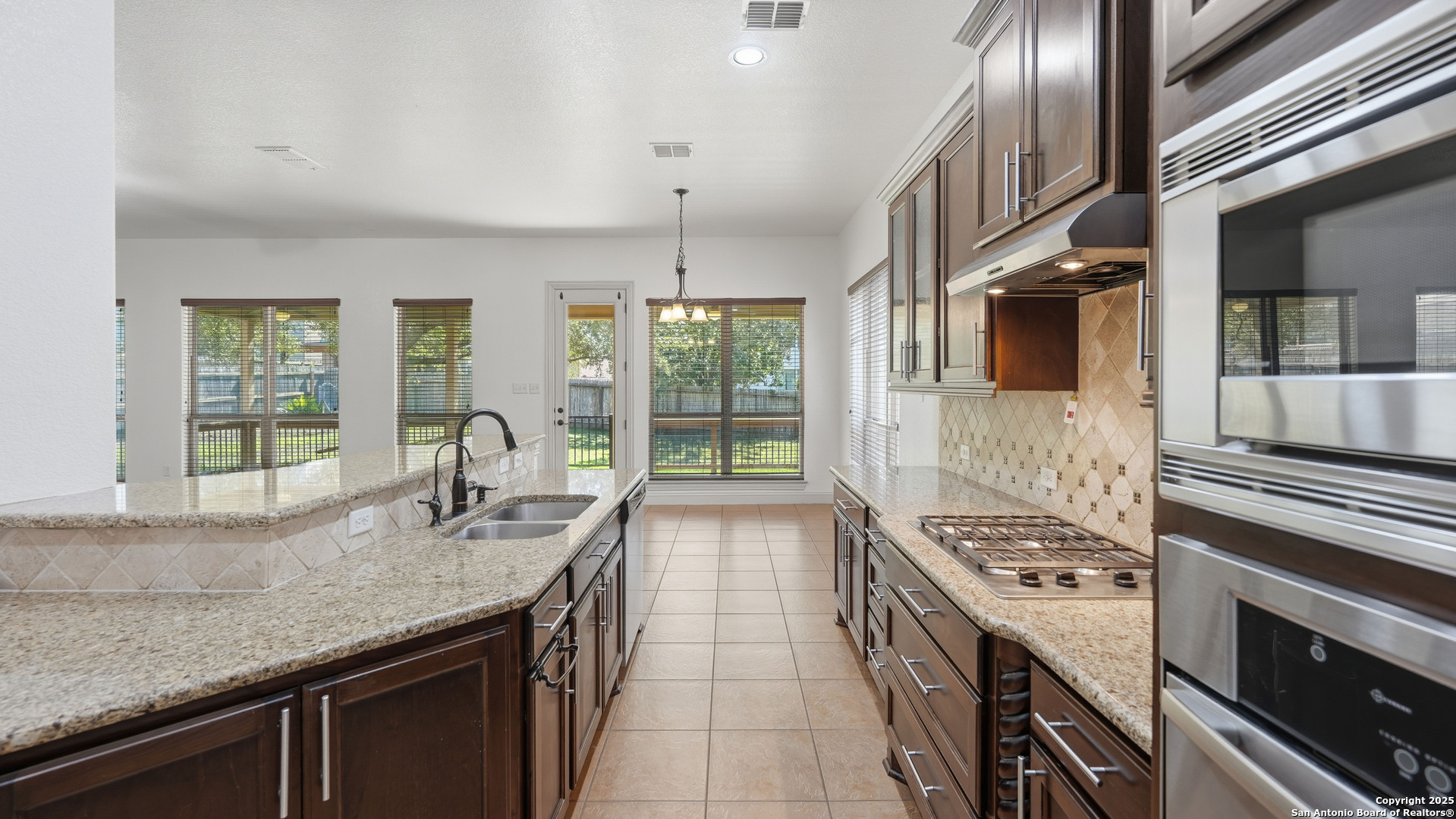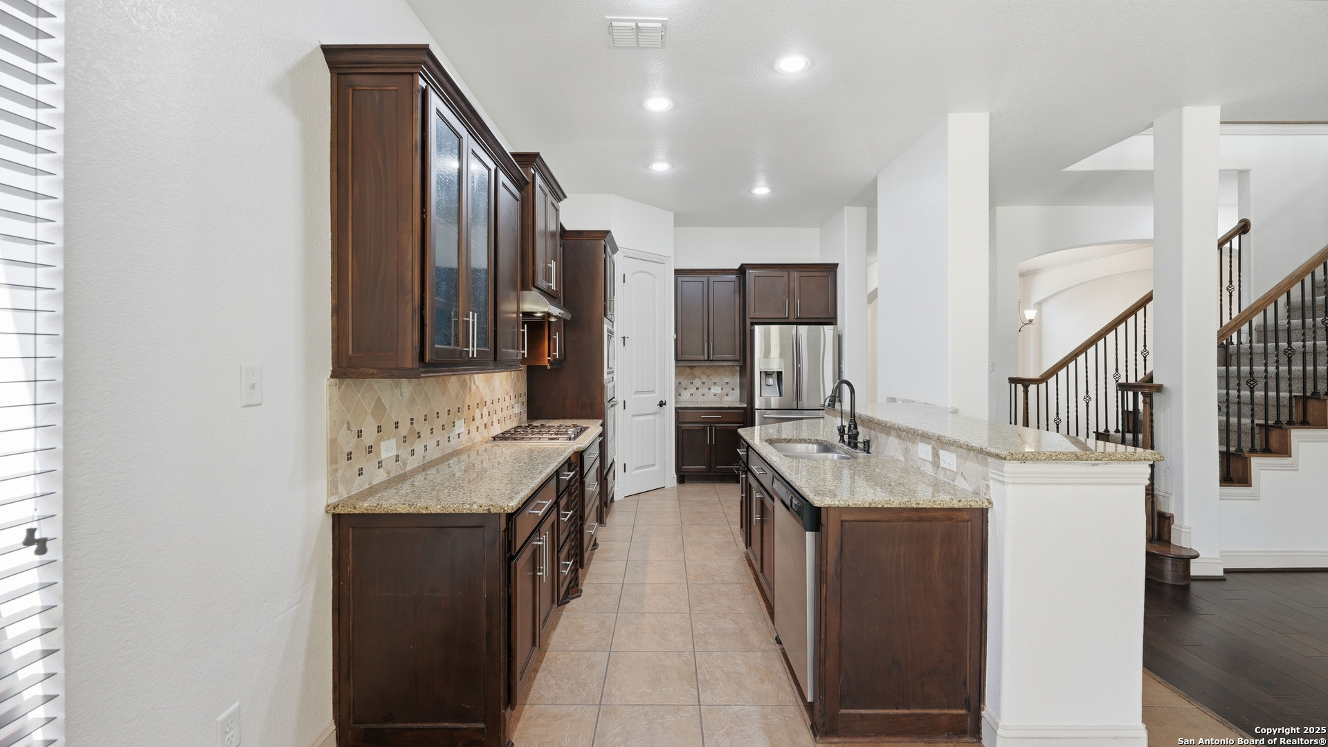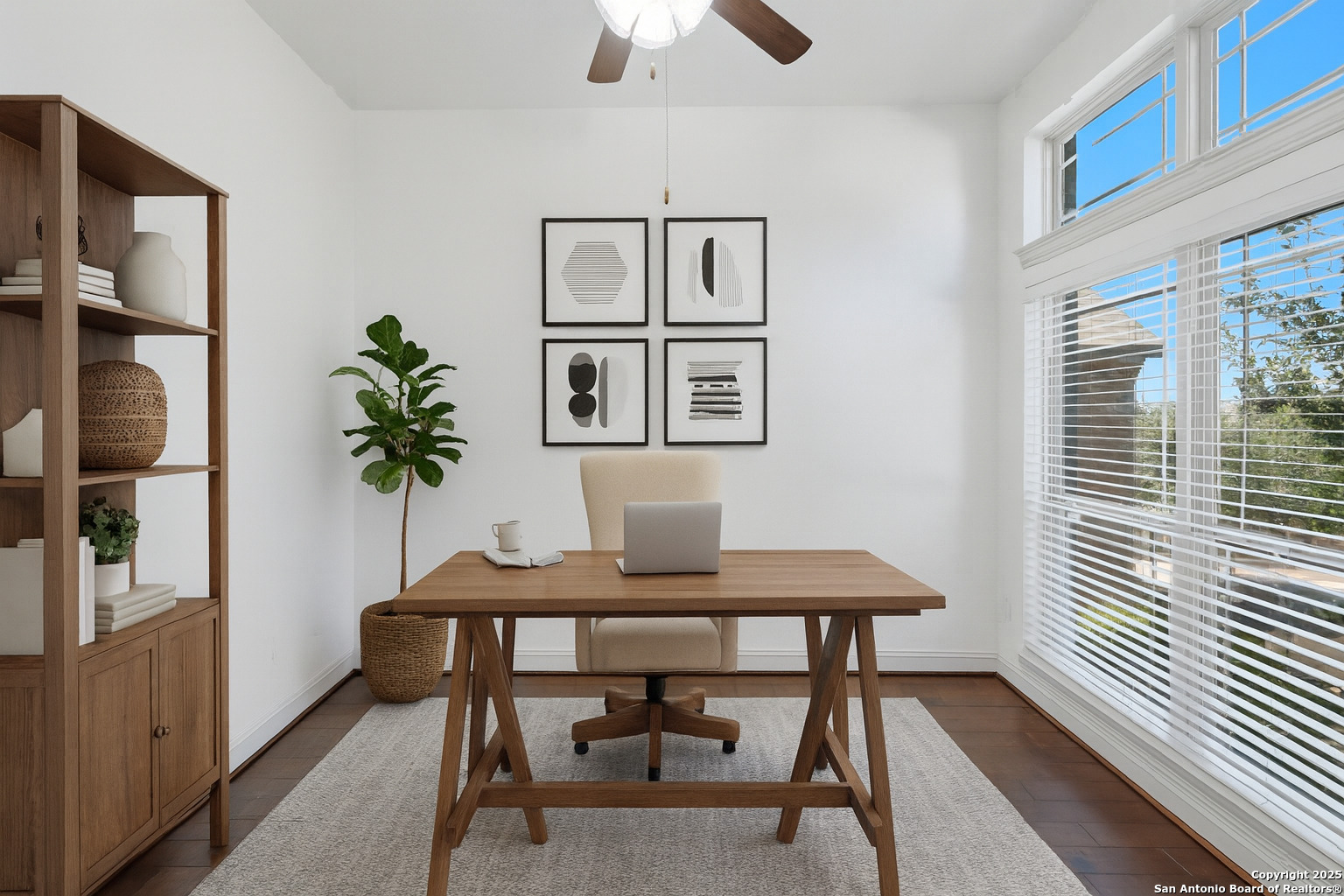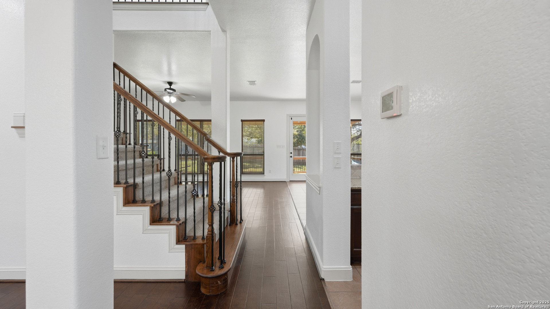 Step inside this spacious 5-bedroom, 4.5-bath home that blends comfort, function, and fresh updates throughout. The main level features wood and tile flooring, a dedicated office, a separate dining area that's ideal for holidays and gatherings, and a welcoming living space with a cozy gas fireplace. The kitchen is designed for everyday use and entertaining, with granite counters, a built-in oven, stainless steel appliances, a gas stove, and plenty of cabinet storage. A guest suite with a full bath is conveniently located downstairs. Upstairs, brand-new carpet runs through all four bedrooms and the loft. The primary suite includes a large bath and an oversized closet. Another upstairs bedroom features its own full bath. The loft offers great flexibility, use it as a kids' play area, movie room, gaming space, or homework lounge. Fresh paint carries through the entire home, and a water softener is already in place. Outside, the covered patio provides a comfortable spot to relax or entertain, with a backyard that's easy to enjoy and make your own. This home is just minutes from the JW Marriott San Antonio Hill Country Resort & Spa-offering golf, dining, spa services, and entertainment-along with nearby shopping, dining, and everyday conveniences.