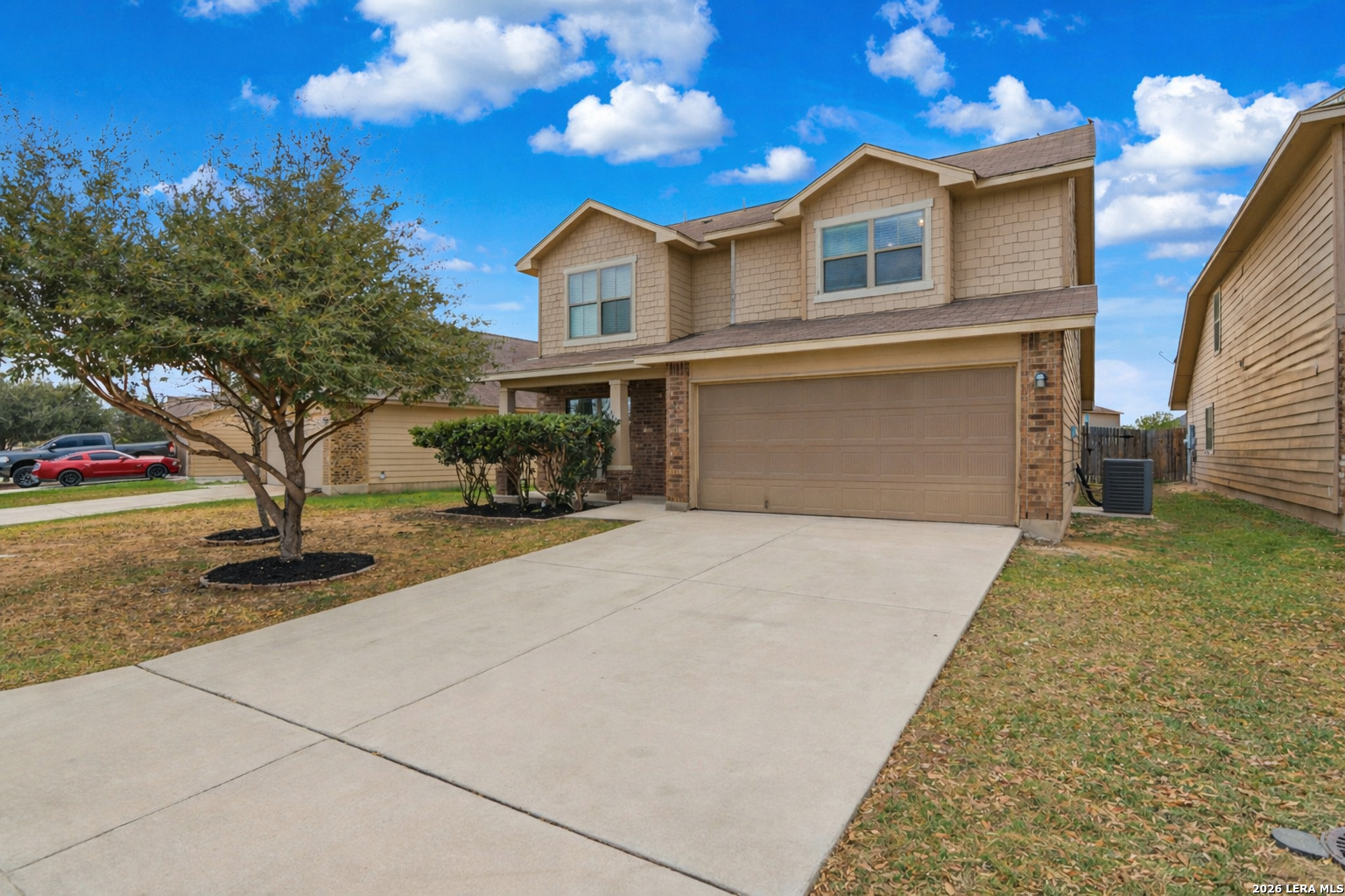 Welcome to this beautifully refreshed two-story home in the Mesa Creek community! Recently repainted and featuring newly installed luxury vinyl plank flooring, this home offers a bright, clean feel from the moment you walk in. The open-concept layout includes a spacious living area that flows seamlessly into the kitchen and dining space, where granite countertops, stainless steel appliances, abundant cabinetry, and a large breakfast bar create the perfect setup for everyday living and entertaining. The primary suite provides a relaxing retreat with a generous layout, dual vanities, soaking tub, separate shower, and a large walk-in closet. Secondary bedrooms are well-sized and offer flexibility for guests, a home office, or additional living space. Step outside to a fully fenced backyard with a patio area ideal for relaxing evenings or weekend gatherings. Conveniently located near shopping, dining, and major highways, this home blends comfort, thoughtful updates, and accessibility in the desirable Mesa Creek community.