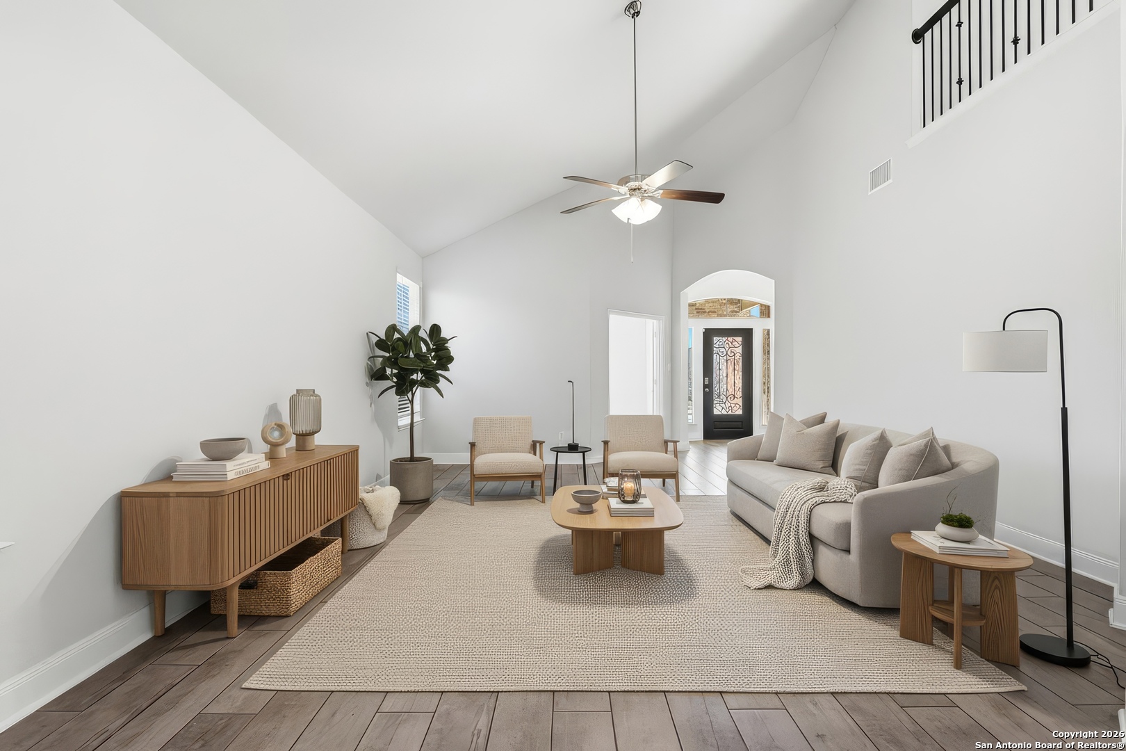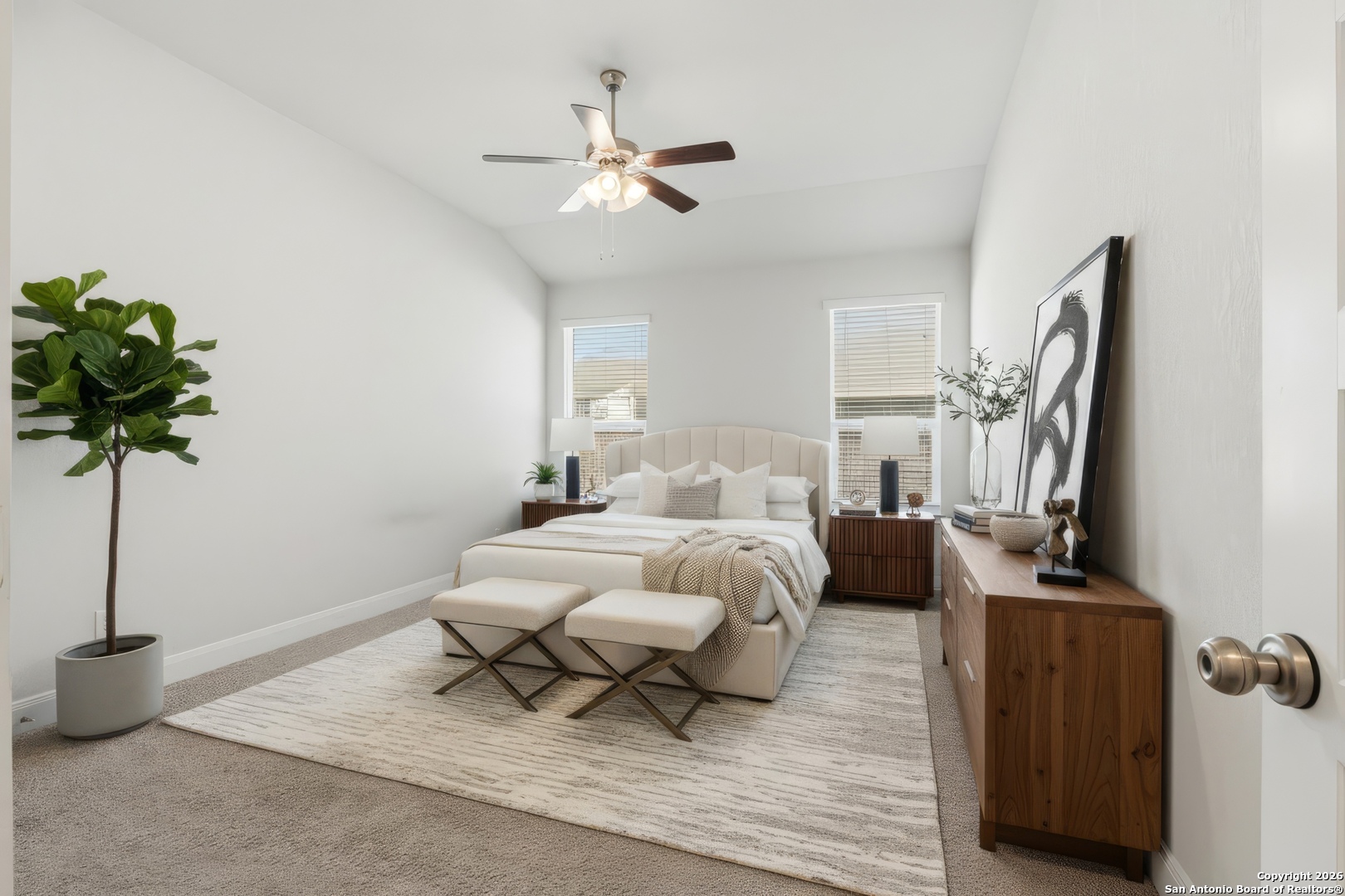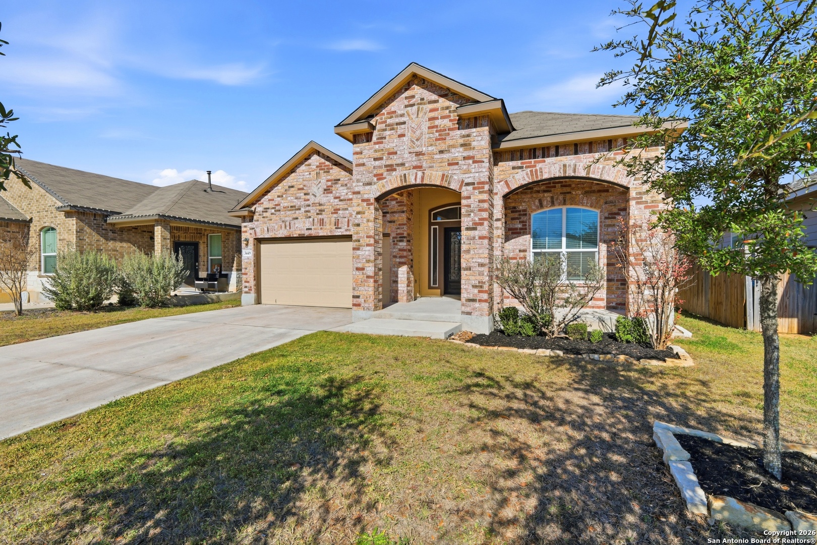 Welcome to this stunning home in the highly desirable Copper Canyon community, an established neighborhood known for its beautiful surroundings, thoughtful layout designs, and easy access to the best of the Hill Country and San Antonio. Step inside and you're greeted by soaring high ceilings and wide, open spaces that make the home feel bright, elegant, and truly inviting. The main level features a warm, seamless flow from the living room to the kitchen, where a large island, granite countertops, and spacious cabinetry make every meal a pleasure. Downstairs, the primary bedroom sits privately toward the back, close enough to keep an eye on little ones, yet perfectly tucked away for quiet evenings. Two additional secondary bedrooms are thoughtfully placed on the main floor, creating convenience and comfort for everyday life. For families who need privacy, versatility, or multi-generational living, the upstairs is a dream. A private suite with a bedroom, full bath, and an open loft, perfect for a teenager, extended family, guest retreat, media room, or even a second work-from-home space. If a person works from home or two, this home gives you options: a dedicated office/den near the entry plus the loft upstairs. Enjoy peaceful mornings and relaxed evenings in the covered patio, the perfect setting for coffee, grilling, or unwinding after a long day. Situated between New Braunfels and Boerne, with fast access to San Antonio, Canyon Lake, Blanco, and all the favorite Hill Country destinations. Easy access to highways to the Riverwalk, Gruene, the Guadalupe River. Close to golf courses, shopping, dining, and endless entertainment options. Just minutes from Johnson Ranch Elementary, Smithson Valley Middle School, and Smithson Valley High School (COMAL ISD). A beautifully designed home. An established, peaceful community. A layout that grows with you.