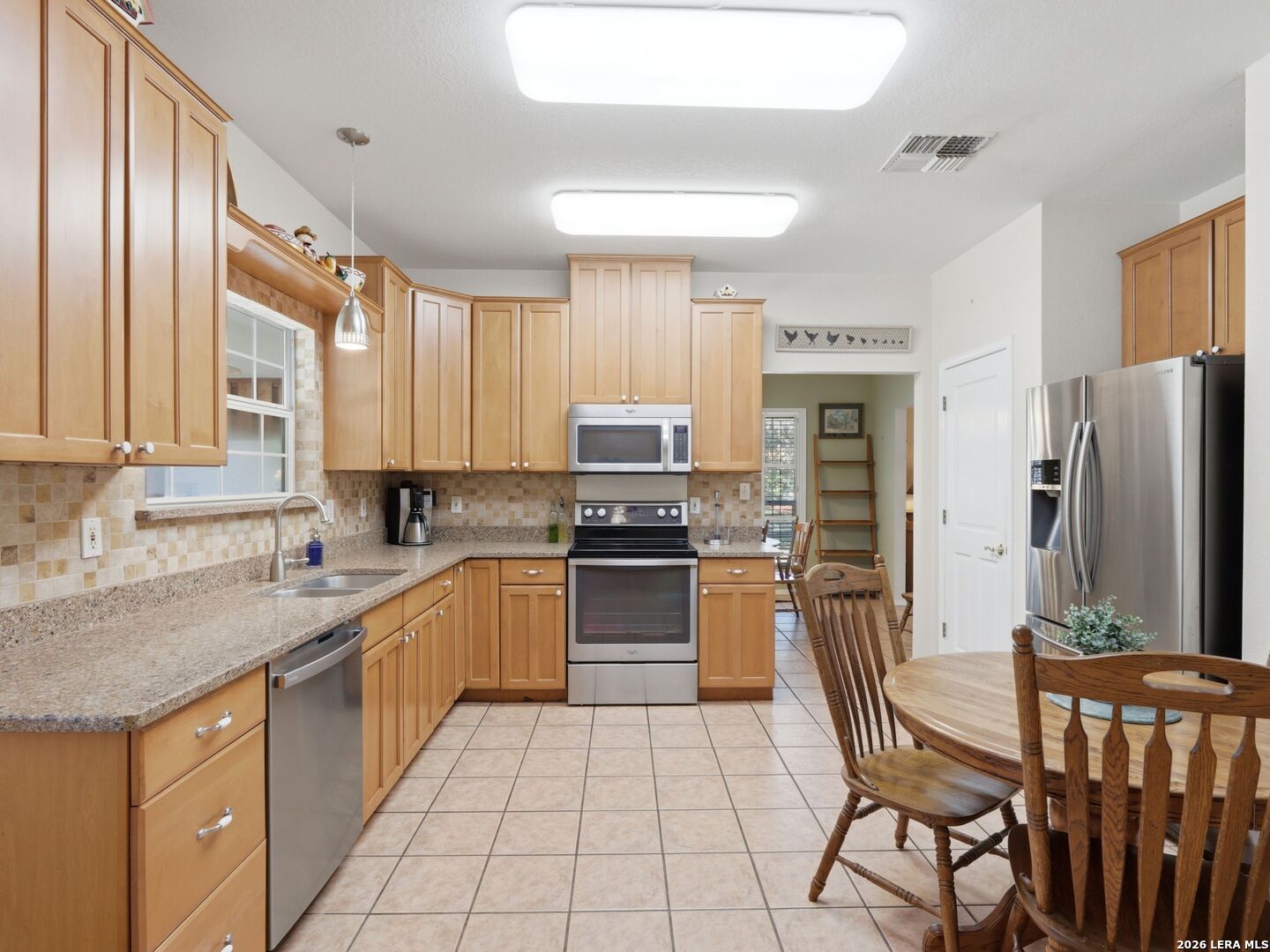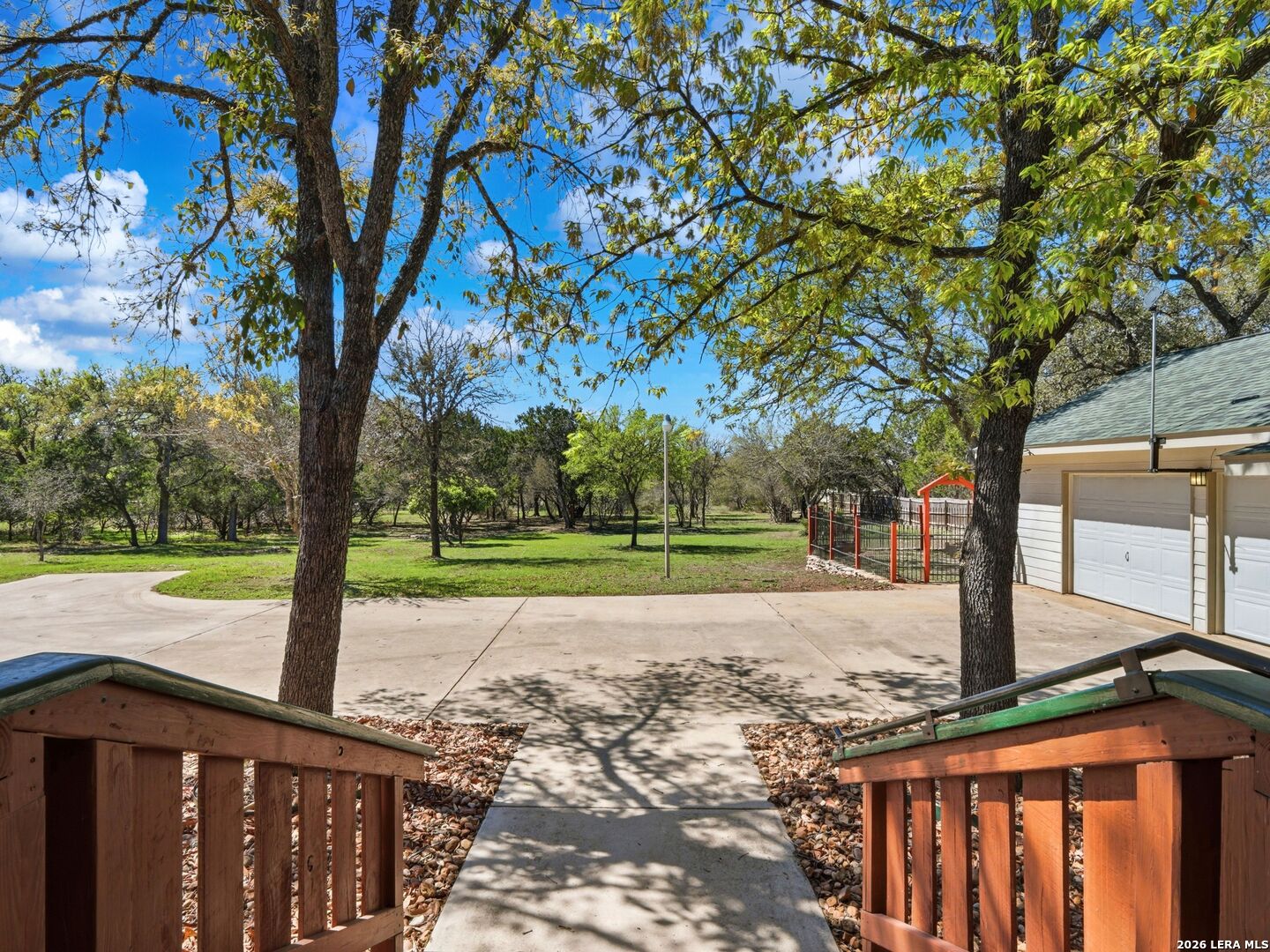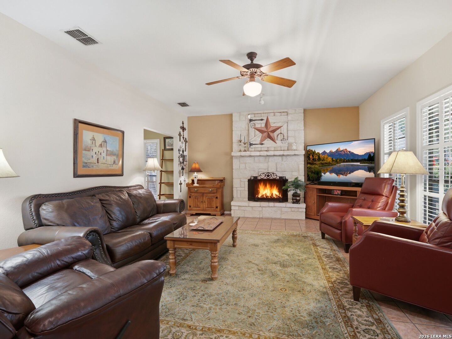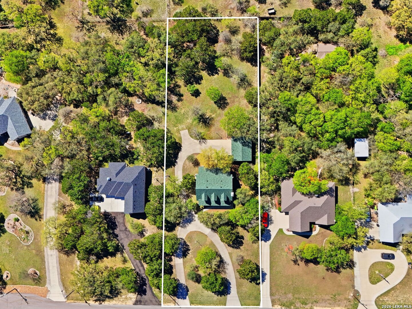 Set on a full acre in The Pinnacle, this well-maintained property offers a rare combination of space, privacy, and flexibility just minutes from New Braunfels. Mature trees frame the home and create a peaceful setting, while a circular driveway and oversized garage add both convenience and curb appeal. Inside, the home features an open and comfortable layout with high ceilings, abundant natural light, and a wood-burning fireplace anchoring the main living area. The kitchen offers generous cabinet and counter space, a breakfast area, and easy flow into both the dining and living spaces. The primary suite is located on the main level with a spacious layout, large walk-in closet, and full bath. Upstairs, two oversized secondary bedrooms and additional flexible space provide options for office, hobbies, or a second living area. The outdoor space is a standout, with a full acre of usable land, mature oaks, and room to expand outdoor living, recreation, or storage. The oversized garage and additional parking provide excellent flexibility. Located in a community with amenities including park/playground, trails, and tennis courts, this property offers a balance of quiet living with convenient access to town.