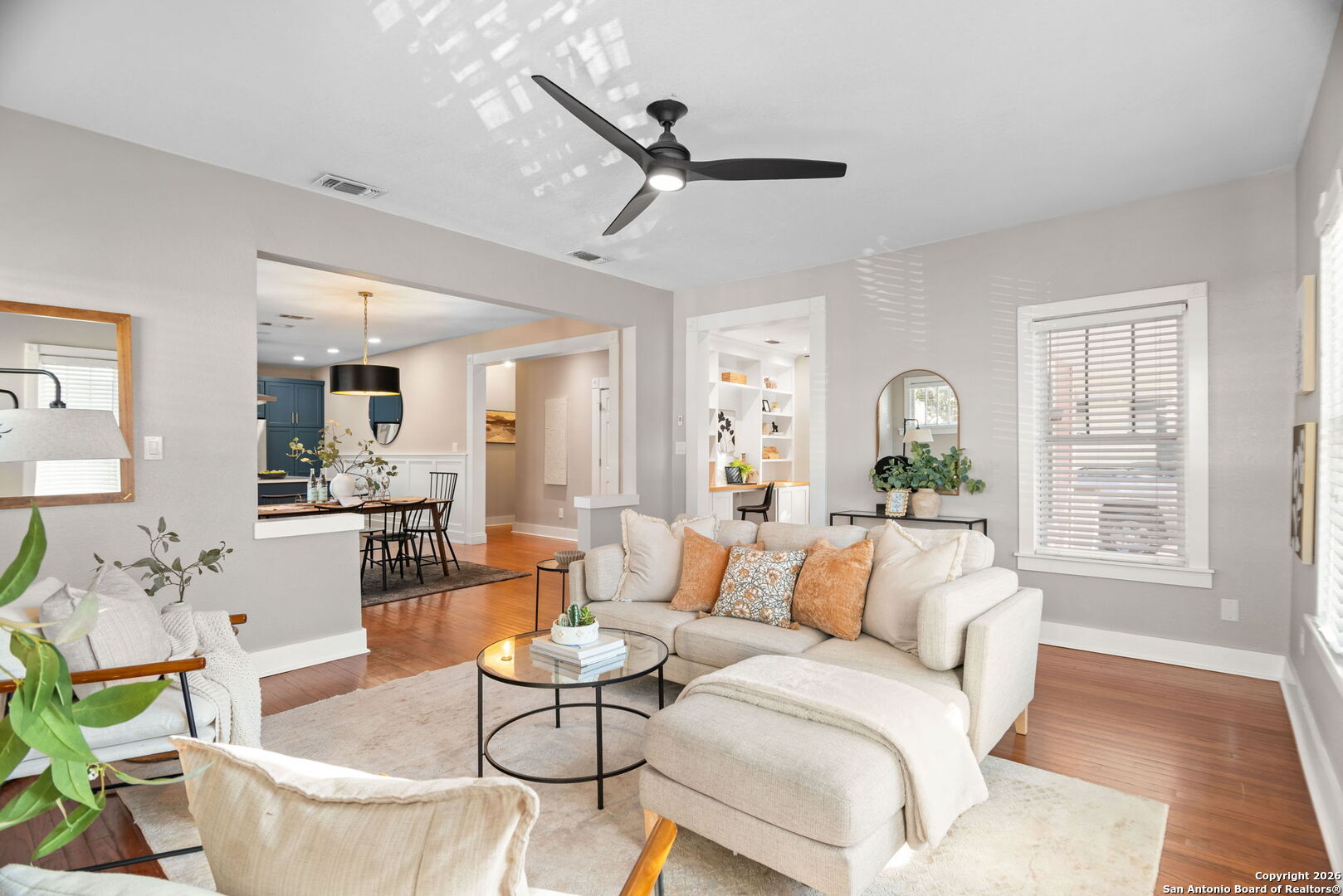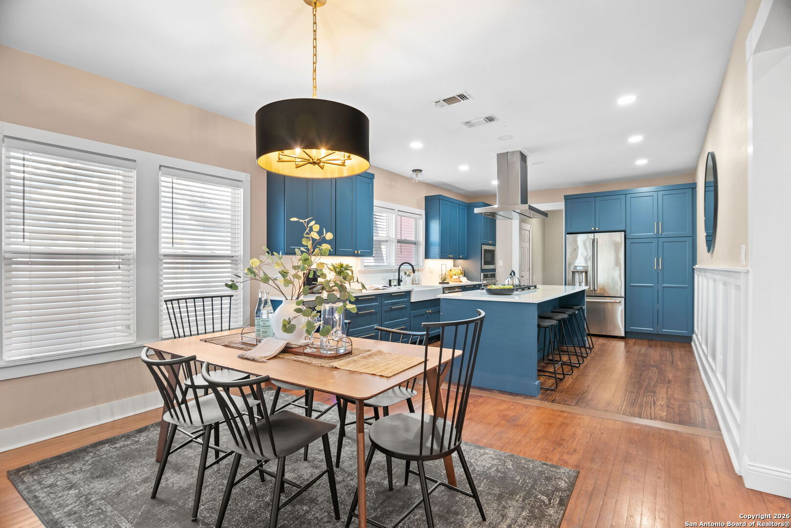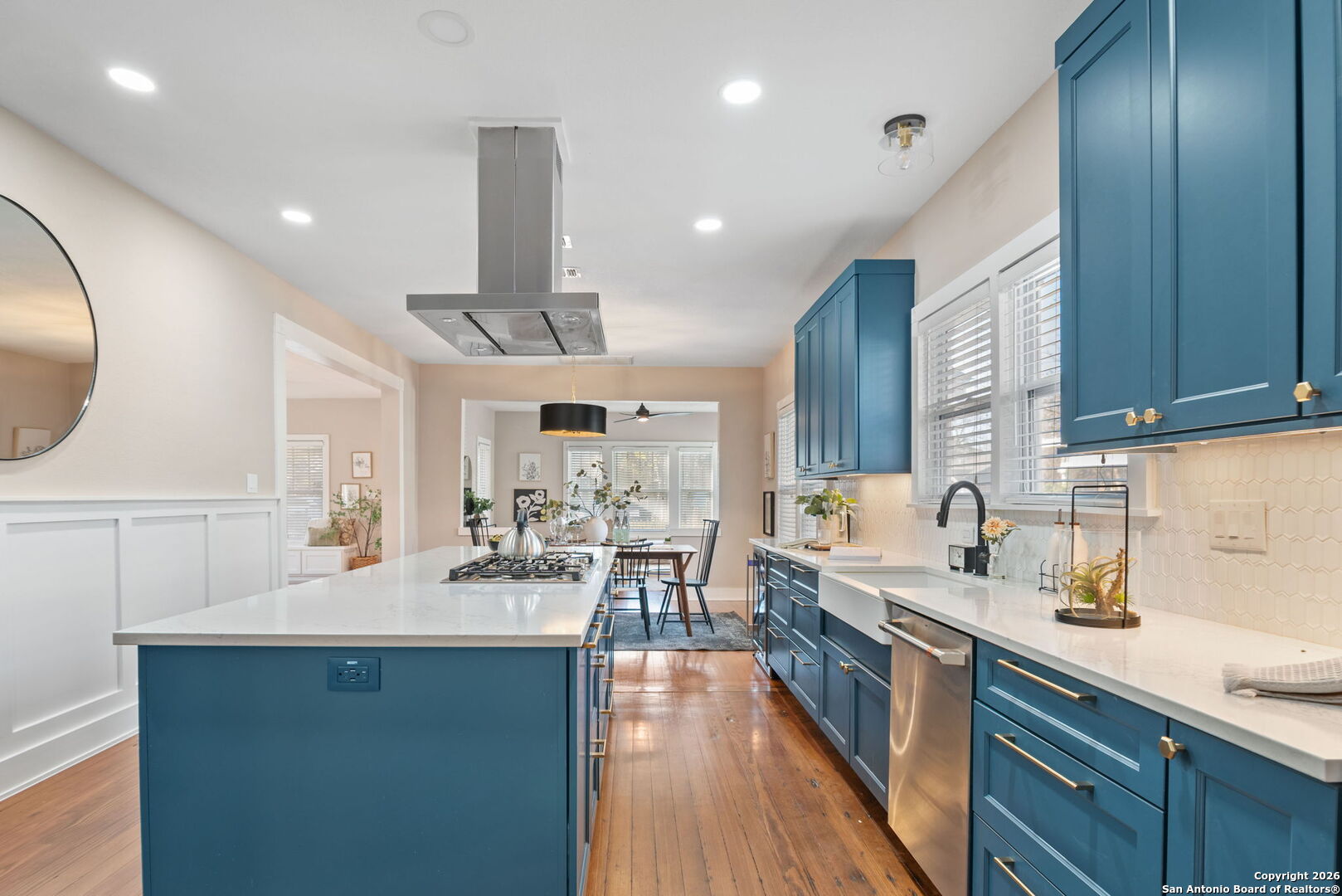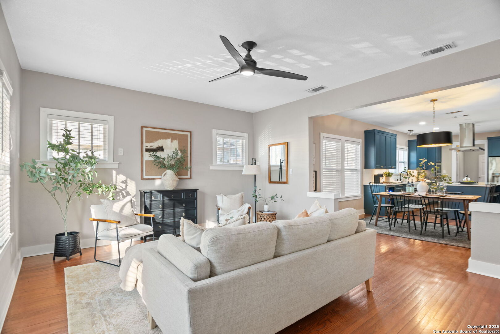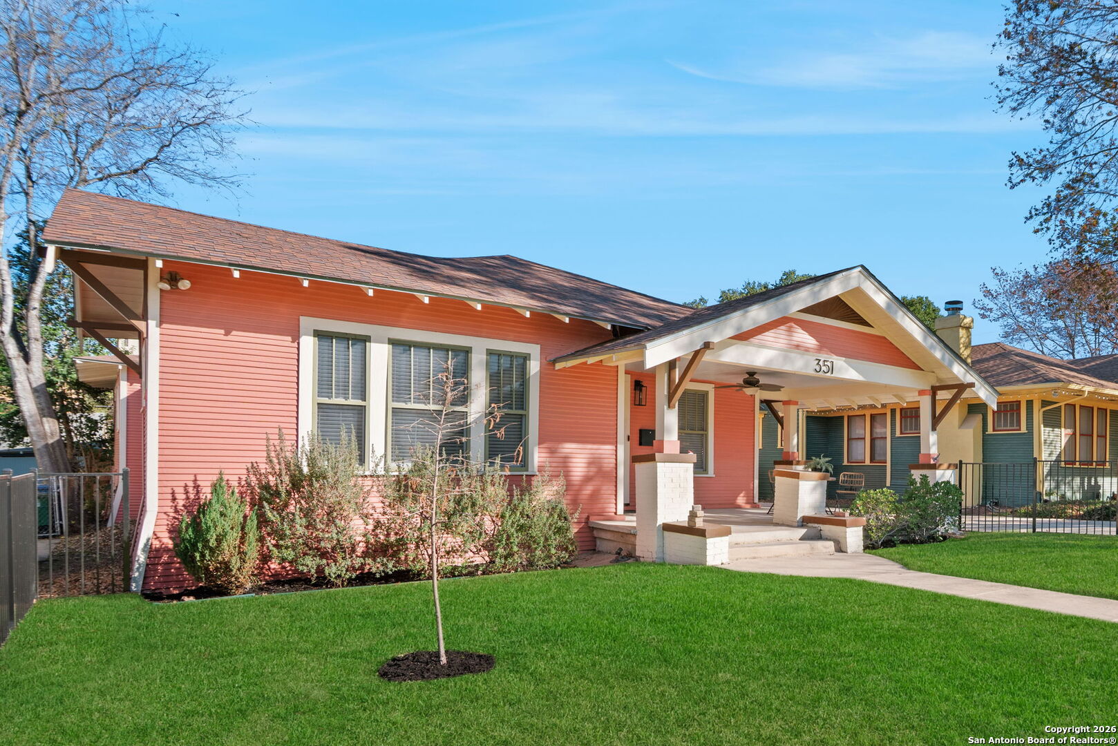 This thoughtfully renovated residence features 3 bedrooms, 2 bathrooms, and nearly 2,239 square feet of beautifully designed living space, blending classic architecture with contemporary comfort. From the inviting front porch to the light-filled interiors, every detail has been curated with intention. Inside, original hardwood floors, generous living areas, and a seamless layout create an effortless flow for everyday living and entertaining. The private primary suite serves as a true retreat, complete with a spa-inspired bath featuring dual vanities, custom cabinetry, designer tile, and a striking walk-in glass shower. Step outside to an exceptional backyard designed for year-round enjoyment. A covered pavilion with ambient string lighting creates the perfect setting for gatherings, while the lush lawn, mature landscaping, and detached storage shed add both beauty and function. Ideally located nearby The Pearl, Brackenridge Park, the San Antonio Zoo, the Witte Museum, and the San Antonio River Walk, this home offers unmatched access to the city's most celebrated dining, culture, and outdoor destinations. A rare opportunity to own a boutique-style residence where historic charm meets modern luxury - all in one of San Antonio's most sought-after neighborhoods.
