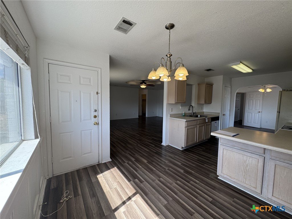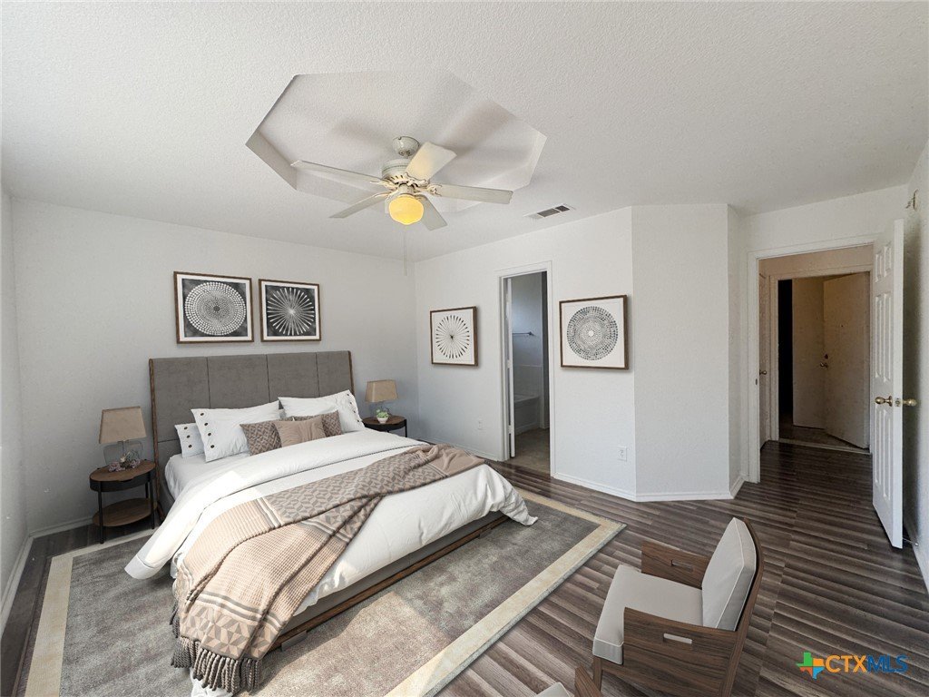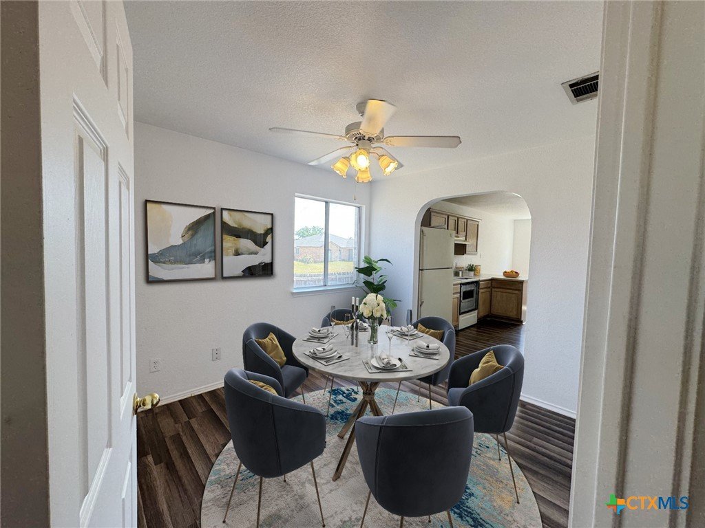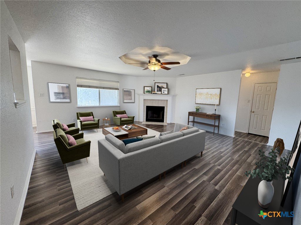 This 3 bedroom, 2 bathroom, 2 car garage home is located on a corner lot and is within a few miles to all amenities! It features a large living room area with a wood burning fireplace, 2 dining areas (one could be converted into another bedroom), primary bedroom separate from the secondary bedrooms with its own on suite bathroom with double vanities and separate tub and shower, covered patio and is ready for its new owner!