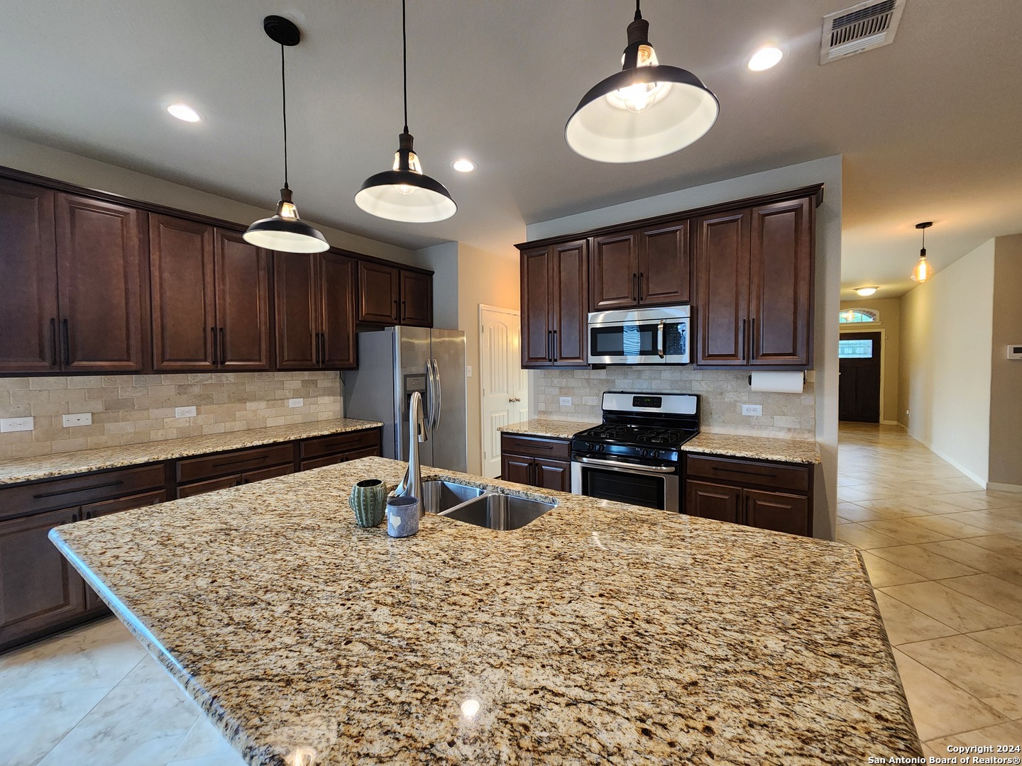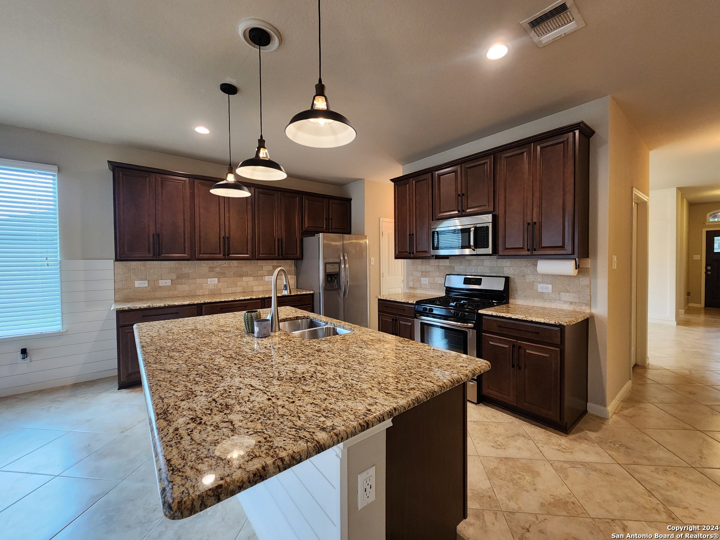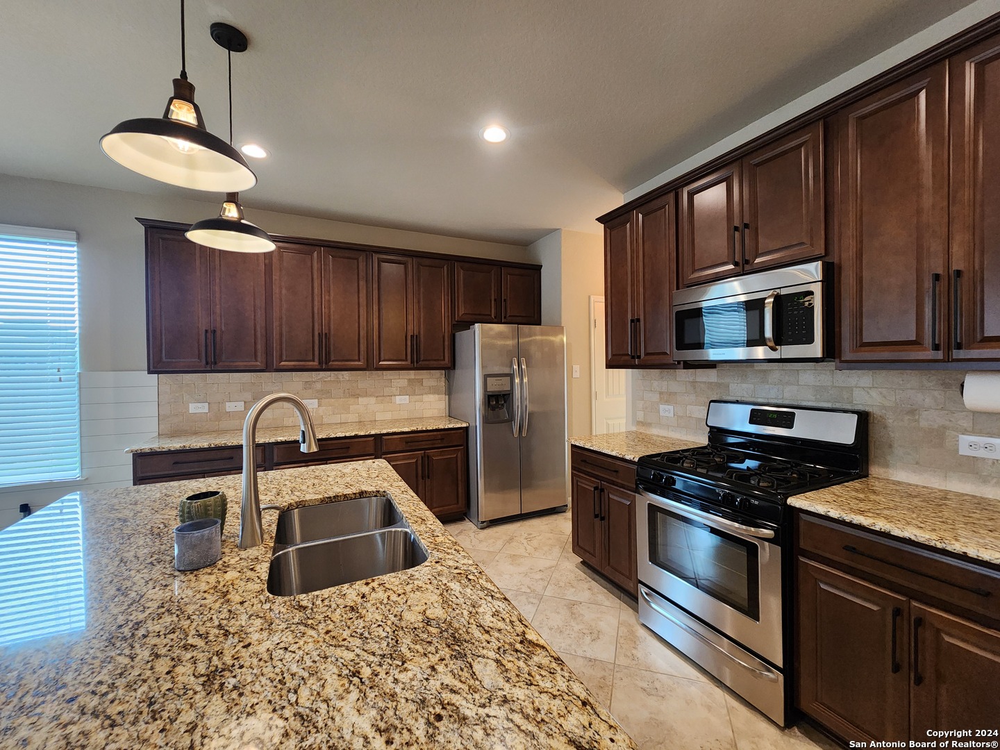 4/3/2 in Oak Creek Estates. Flooring is a mix of ceramic tile & carpet. Granite counter tops & updated fixtures throughout. Kitchen Features: side by side fridge, gas stove/oven range, dishwasher, built in microwave, & island with breakfast bar. Other Features: ceiling fans, shiplap walls, interior washer / dryer connections, walk in shower, garden tub, double vanities, walk in closet, shower / tub combo, recessed lighting, garage door opener, 2 water heaters, water softener , sprinkler system, covered back patio, planter box for garden & a fenced in yard. 2 pets ok, 50 lbs max. CISD Schools. Oak Creek Amenities: pool, playground & BBQ area. *2 weeks free rent off the first full month* First lease to end May, 2026 or April - June, 2027.