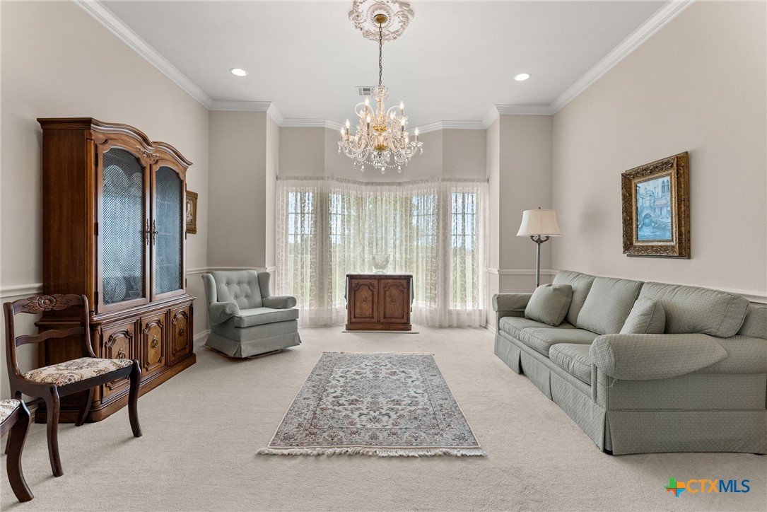 Presenting a rare opportunity to own a meticulously maintained, one-owner custom home! Situated on a beautiful 4.8-acre parcel, this impressive residence offers 3,365 square feet of comfortable living. Inside, you'll find three spacious bedrooms, three full bathrooms, two living areas and a dedicated office – ideal for today's flexible lifestyles. Built with pride in 1999, the home features a stunning limestone fireplace, adding a touch of timeless elegance to the living space. Crown molding throuhgout, stunning chandeliers, and tasteful wall paper gives this house touches of sophistication. For added security, an outdoor, in-ground storm shelter provides peace of mind. Practicality meets convenience with ample outdoor storage for all your tools and toys. Enjoy the best of both worlds – the serenity of acreage living with the convenience of city amenities just moments away. Located within minutes of Buc-ee's, Starbucks, and Interstate 35, your daily needs and commutes are effortlessly handled. This exceptional property has been lovingly cared for and is ready for its next fortunate owner.