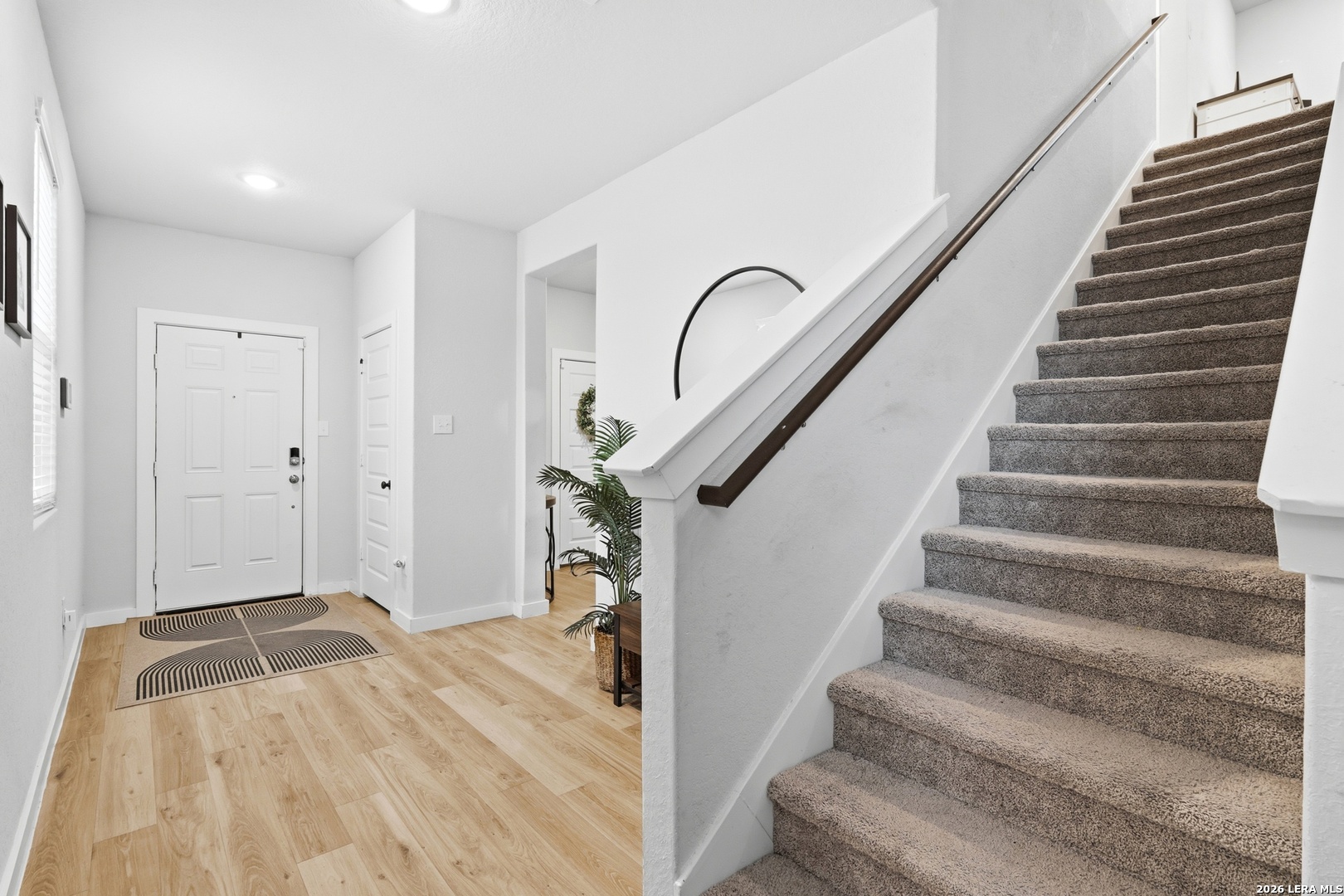 Beautiful two-story home featuring 4 bedrooms and 3 full bathrooms, thoughtfully designed for comfort and functionality. A secondary bedroom with a full bath is conveniently located downstairs, ideal for guests or multi-generational living. The spacious 2-car garage provides ample storage. Carpet is located upstairs only, with easy-to-maintain flooring downstairs. Enjoy outdoor living on the extended patio with partial cover, perfect for relaxing or entertaining. A well-laid-out home offering space, versatility, and comfort.