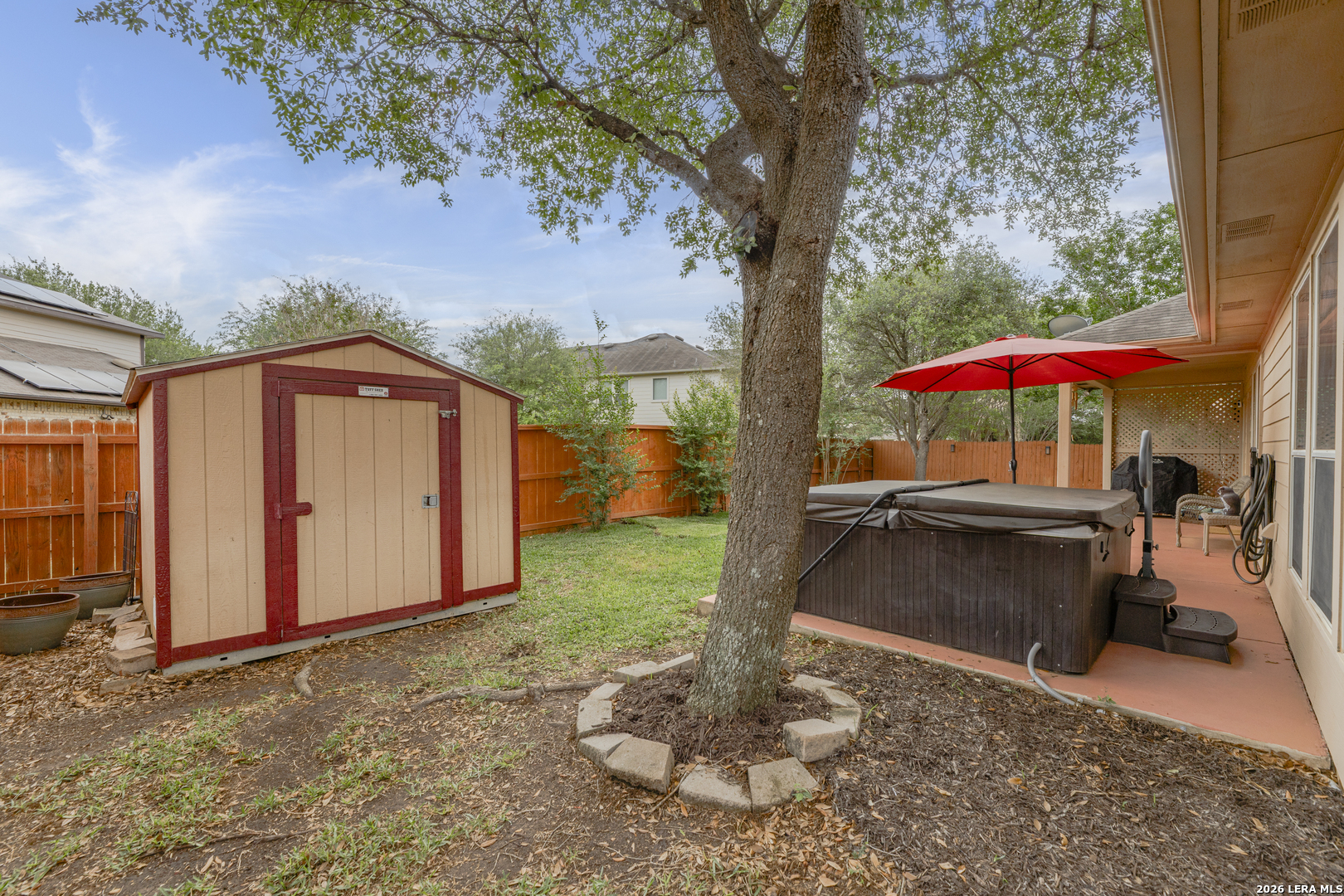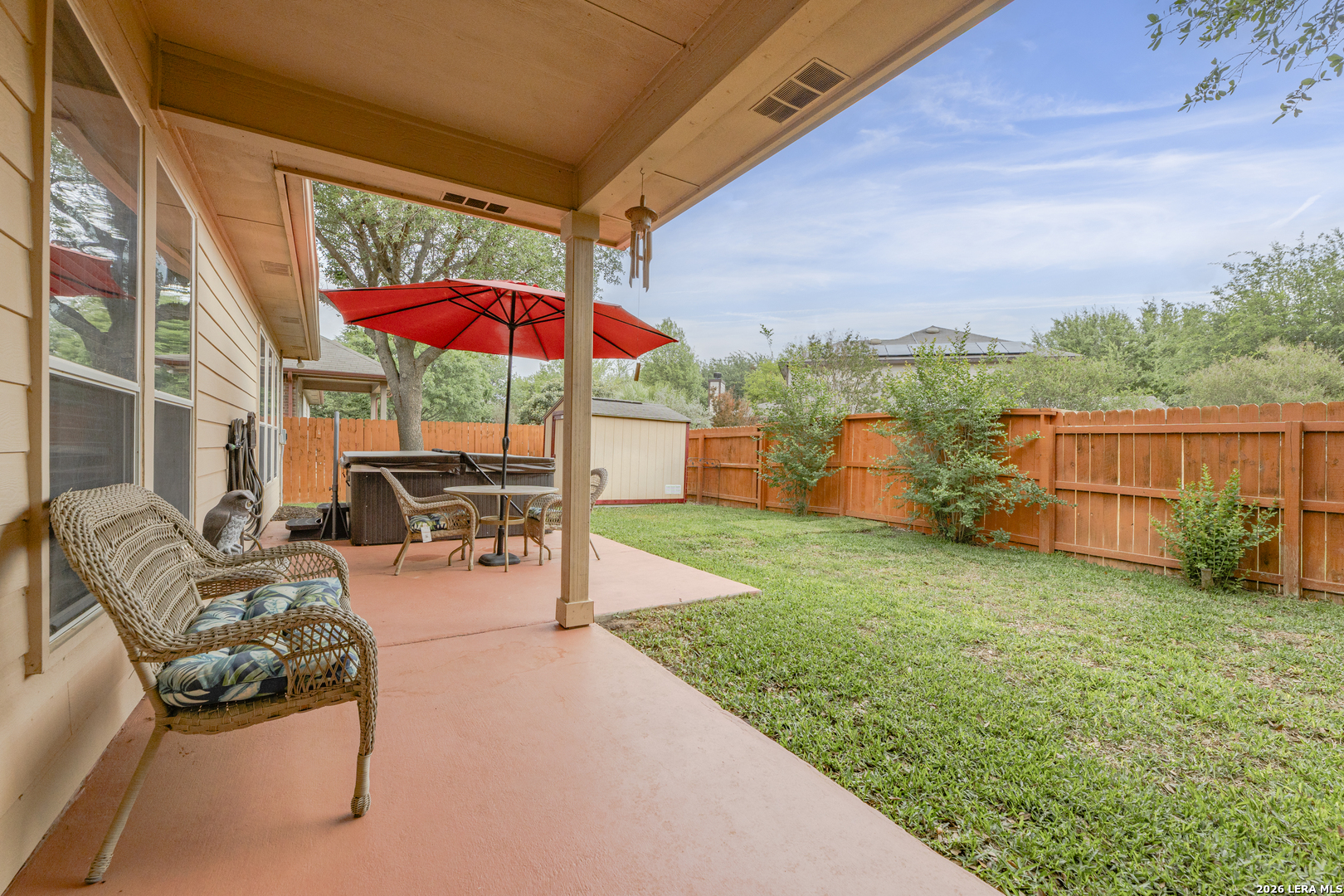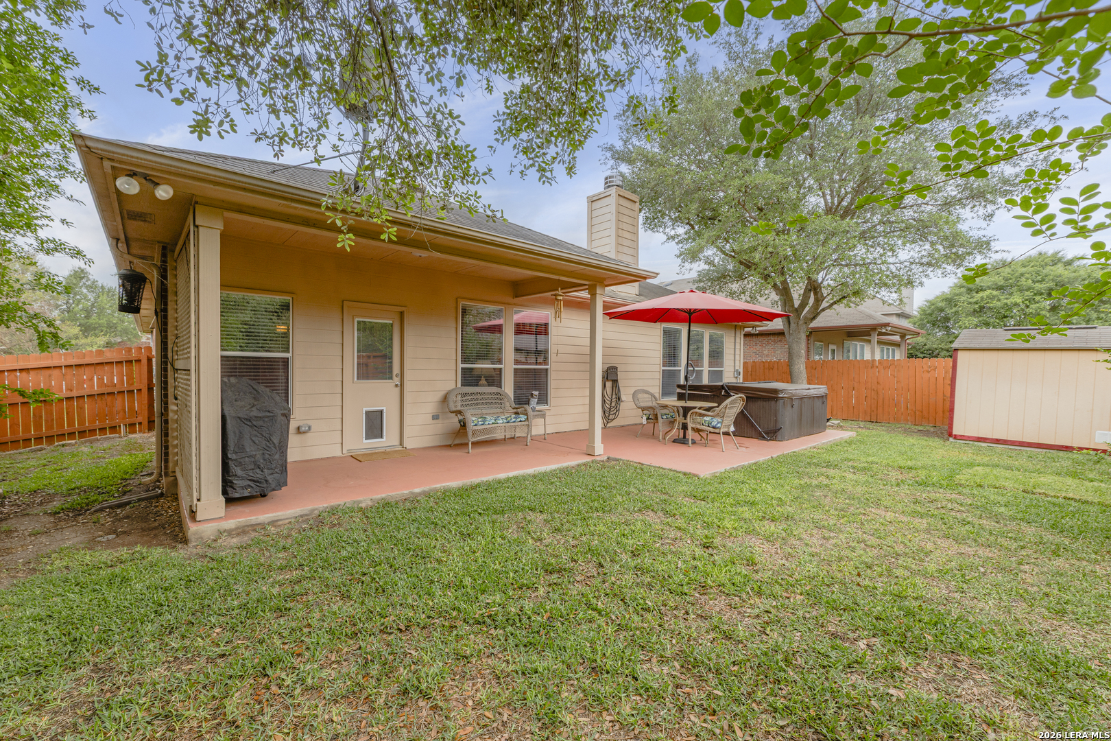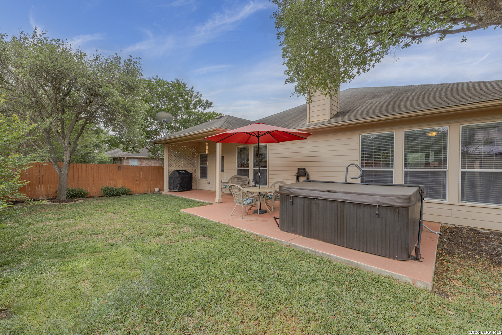 Set within the Estates of Kensington Ranch, this one-story home offers a layout that balances comfort, space, and everyday functionality. With 4 bedrooms, 2 baths, and 2,404 square feet, the design makes it easy to settle in and feel at home. Inside, multiple living areas give you the flexibility to create spaces that fit your routine, whether it's a cozy spot to unwind or a place to gather and entertain. The kitchen naturally draws everyone in, featuring an island, granite countertops, double ovens, and ample cabinetry, all arranged to make both daily meals and hosting feel effortless. The primary suite is privately positioned and offers a relaxing retreat, complete with a garden tub, separate walk-in shower, dual vanity, and a spacious walk-in closet. The additional bedrooms provide plenty of options for guests, a home office, or hobbies, while the dining area, laundry room, and two-car garage add to the home's thoughtful layout. Out back, the covered patio opens to a nicely maintained yard with mature trees, a hot tub, and functional outdoor space that works well for both casual get-togethers and quiet evenings. Located in Schertz with convenient access to Interstate 35 and Loop 1604, you're just a short drive from San Antonio and Randolph Air Force Base. It's also located within the Schertz-Cibolo-Universal City Independent School District and near shopping, dining, and everyday conveniences, including The Forum at Olympia Parkway. A home that offers the space you need, in a location that keeps everything within reach!