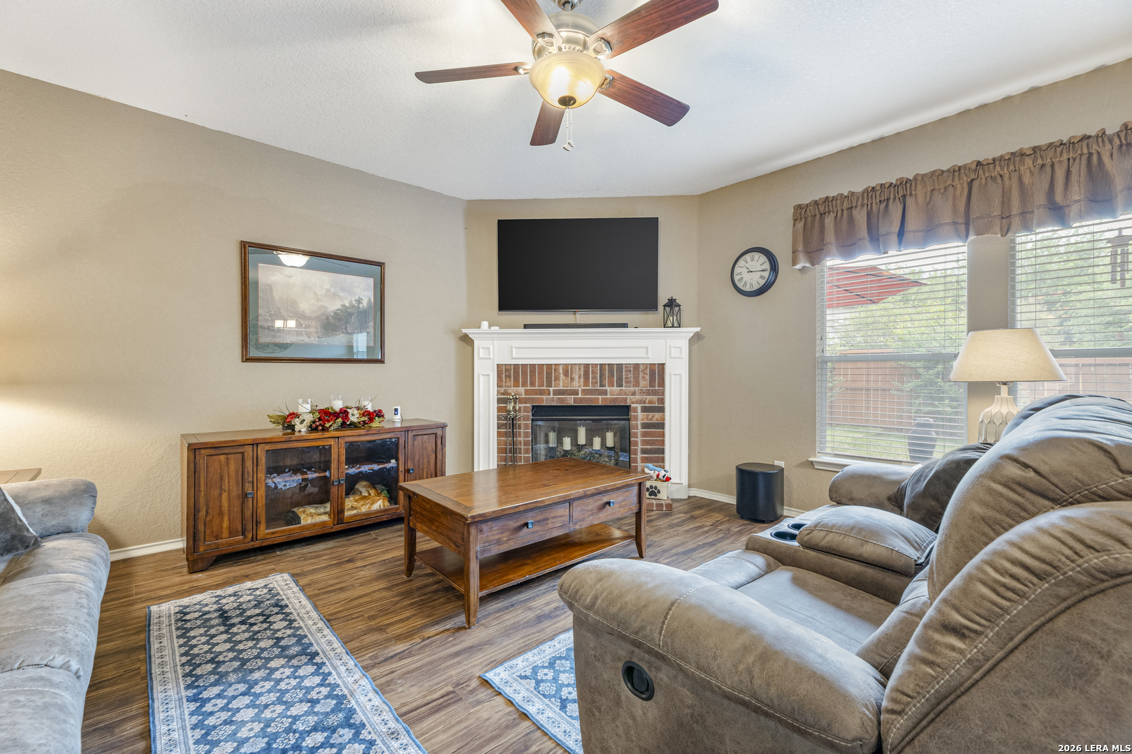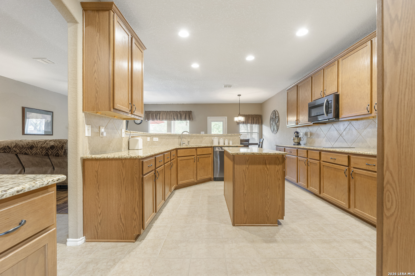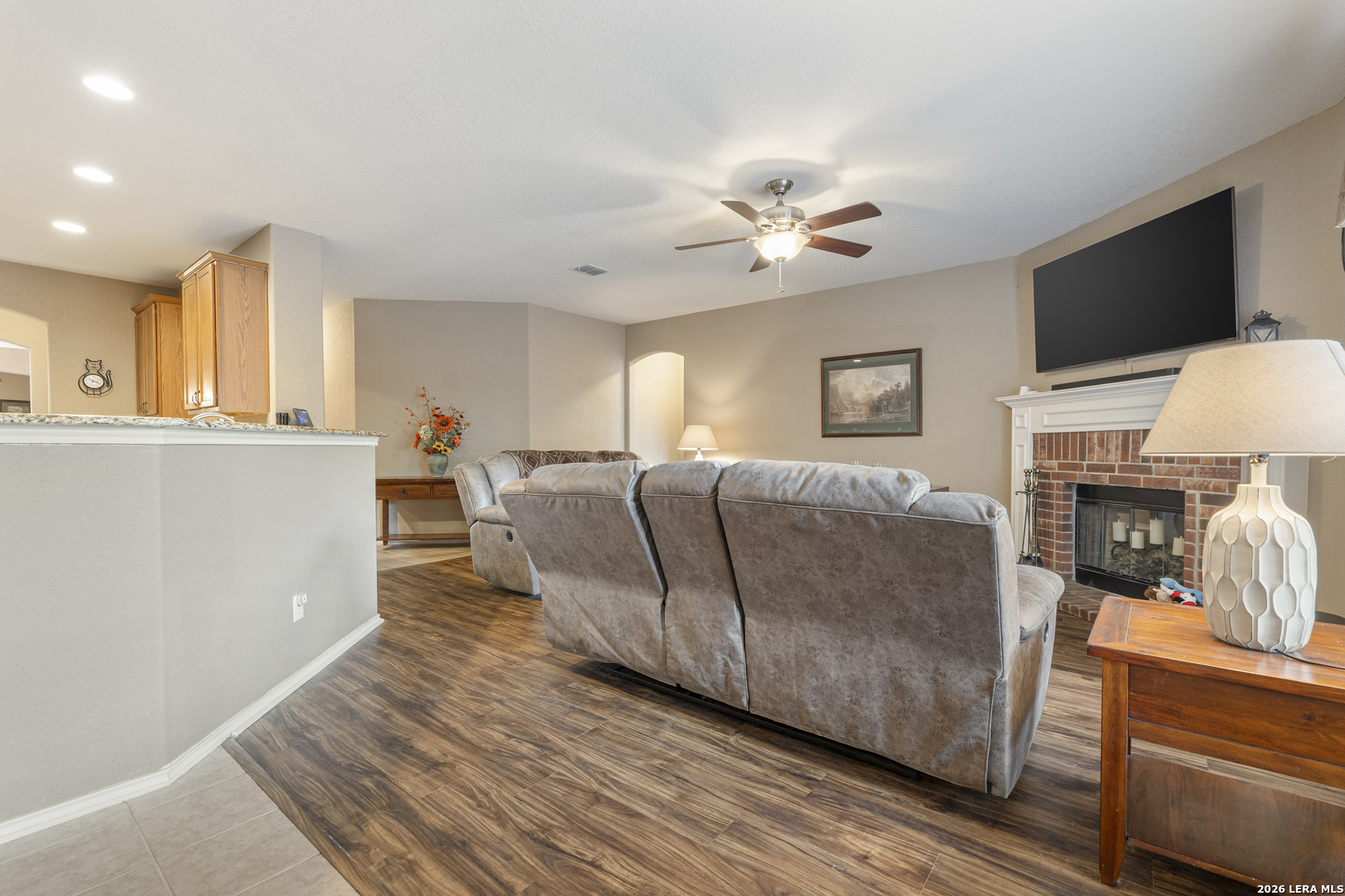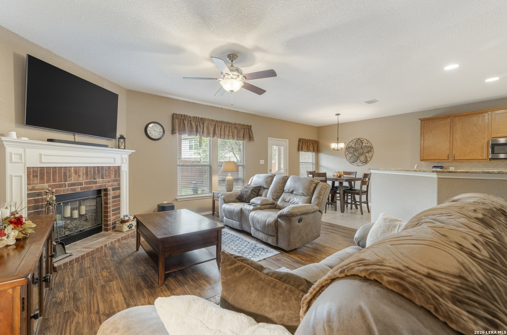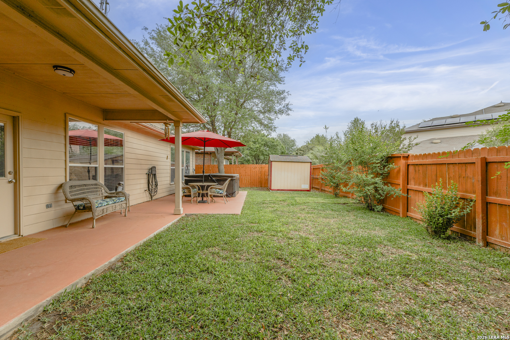 Set within the Estates of Kensington Ranch, this one-story home offers a layout that balances comfort, space, and everyday functionality. With 4 bedrooms, 2 baths, and 2,404 square feet, the design makes it easy to settle in and feel at home. Inside, multiple living areas give you the flexibility to create spaces that fit your routine, whether it's a cozy spot to unwind or a place to gather and entertain. The kitchen naturally draws everyone in, featuring an island, granite countertops, double ovens, and ample cabinetry, all arranged to make both daily meals and hosting feel effortless. The primary suite is privately positioned and offers a relaxing retreat, complete with a garden tub, separate walk-in shower, dual vanity, and a spacious walk-in closet. The additional bedrooms provide plenty of options for guests, a home office, or hobbies, while the dining area, laundry room, and two-car garage add to the home's thoughtful layout. Out back, the covered patio opens to a nicely maintained yard with mature trees, a hot tub, and functional outdoor space that works well for both casual get-togethers and quiet evenings. Located in Schertz with convenient access to Interstate 35 and Loop 1604, you're just a short drive from San Antonio and Randolph Air Force Base. It's also located within the Schertz-Cibolo-Universal City Independent School District and near shopping, dining, and everyday conveniences, including The Forum at Olympia Parkway. A home that offers the space you need, in a location that keeps everything within reach!