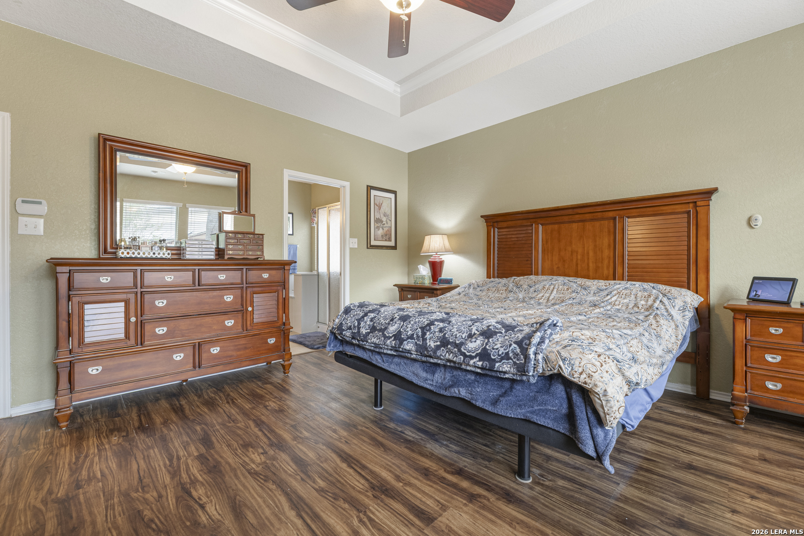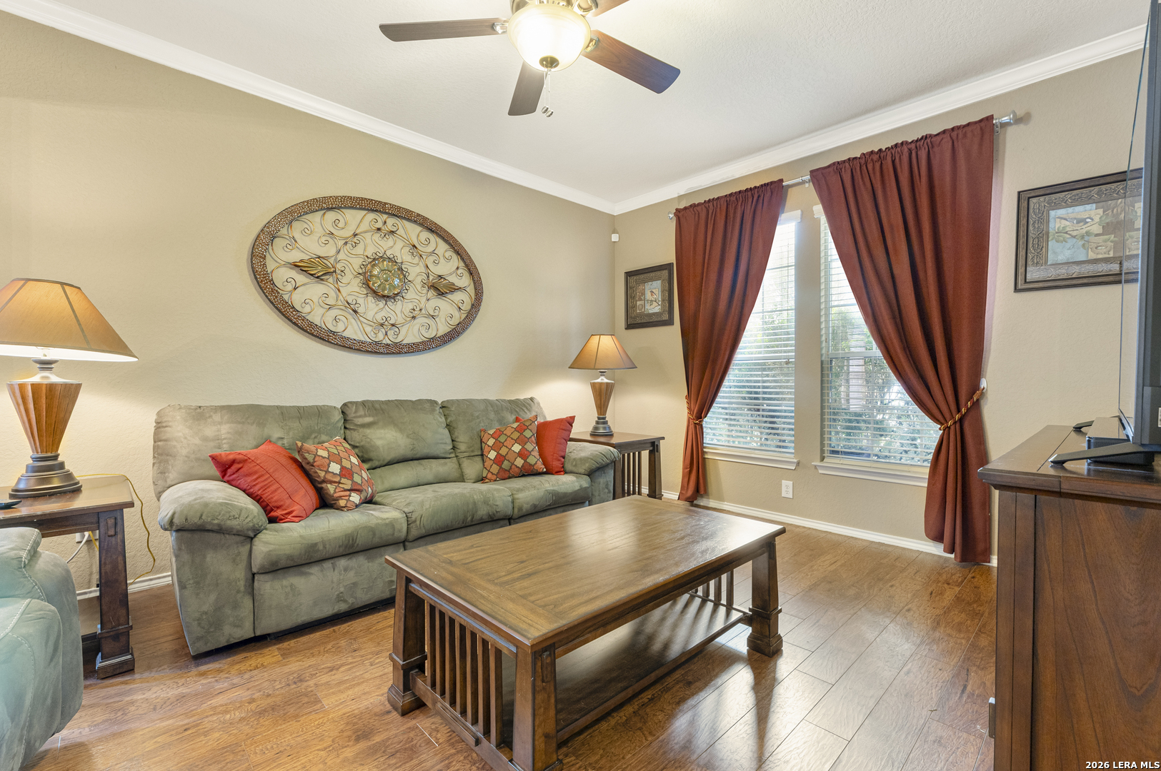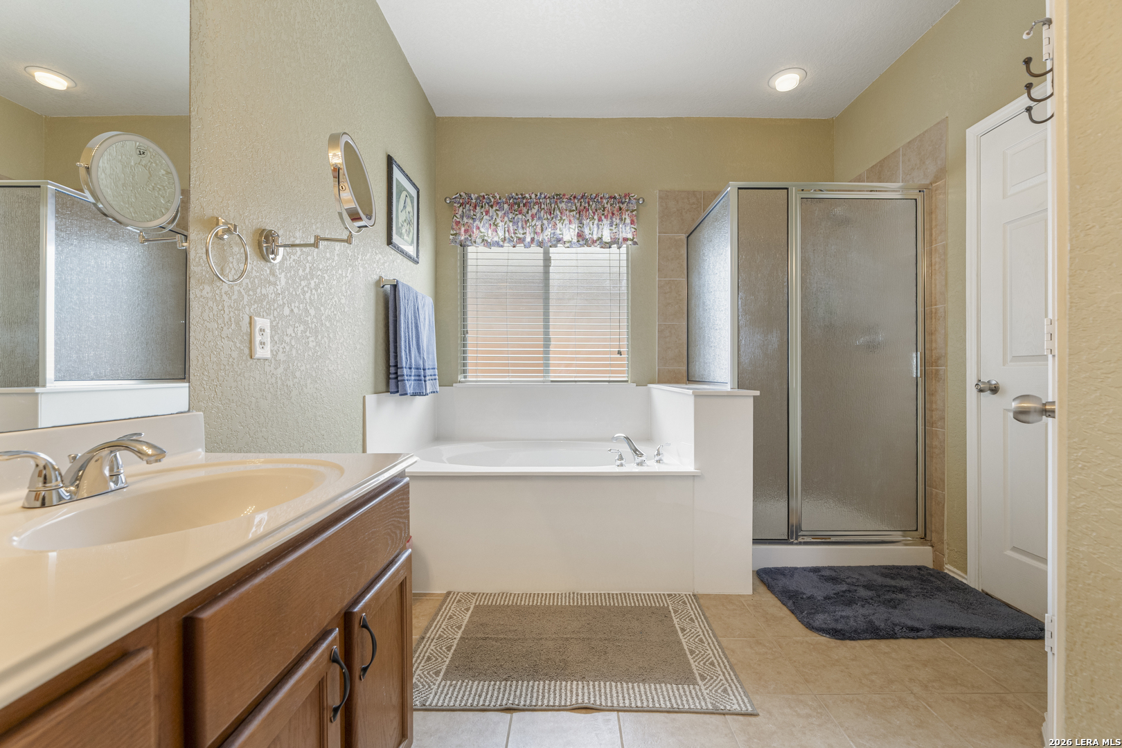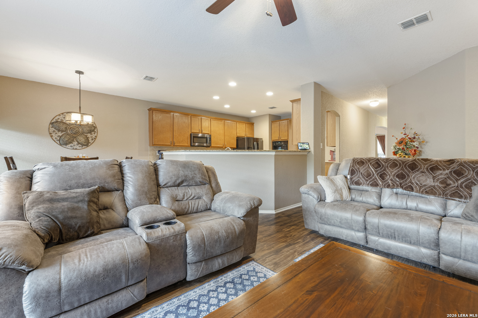 Set within the Estates of Kensington Ranch, this one-story home offers a layout that balances comfort, space, and everyday functionality. With 4 bedrooms, 2 baths, and 2,404 square feet, the design makes it easy to settle in and feel at home. Inside, multiple living areas give you the flexibility to create spaces that fit your routine, whether it's a cozy spot to unwind or a place to gather and entertain. The kitchen naturally draws everyone in, featuring an island, granite countertops, double ovens, and ample cabinetry, all arranged to make both daily meals and hosting feel effortless. The primary suite is privately positioned and offers a relaxing retreat, complete with a garden tub, separate walk-in shower, dual vanity, and a spacious walk-in closet. The additional bedrooms provide plenty of options for guests, a home office, or hobbies, while the dining area, laundry room, and two-car garage add to the home's thoughtful layout. Out back, the covered patio opens to a nicely maintained yard with mature trees, a hot tub, and functional outdoor space that works well for both casual get-togethers and quiet evenings. Located in Schertz with convenient access to Interstate 35 and Loop 1604, you're just a short drive from San Antonio and Randolph Air Force Base. It's also located within the Schertz-Cibolo-Universal City Independent School District and near shopping, dining, and everyday conveniences, including The Forum at Olympia Parkway. A home that offers the space you need, in a location that keeps everything within reach!