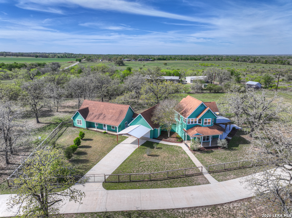 Escape to wide open Texas living on 12 unrestricted acres! This versatile property offers the perfect blend of comfort, functionality, and country freedom. The main home features 3 bedrooms and 2.5 baths, while the attached guest home includes 2 bedrooms and 1 bath-ideal for multi-generational living, guests, or potential rental income. Approximately 11 acres are ag-exempt, helping keep property taxes low, and a small stock tank/pond adds to the charm and usability of the land. The true standout feature is the impressive 2,000 sq ft workshop, complete with overhead doors and a car lift-perfect for hobbyists, mechanics, or anyone needing serious workspace. Enjoy peaceful country living with convenient access to nearby towns-just 15 minutes to Luling, 20 minutes to Seguin, and 30 minutes to both New Braunfels and San Marcos. Endless possibilities await-bring your animals, your business, or your vision and make this property your own!