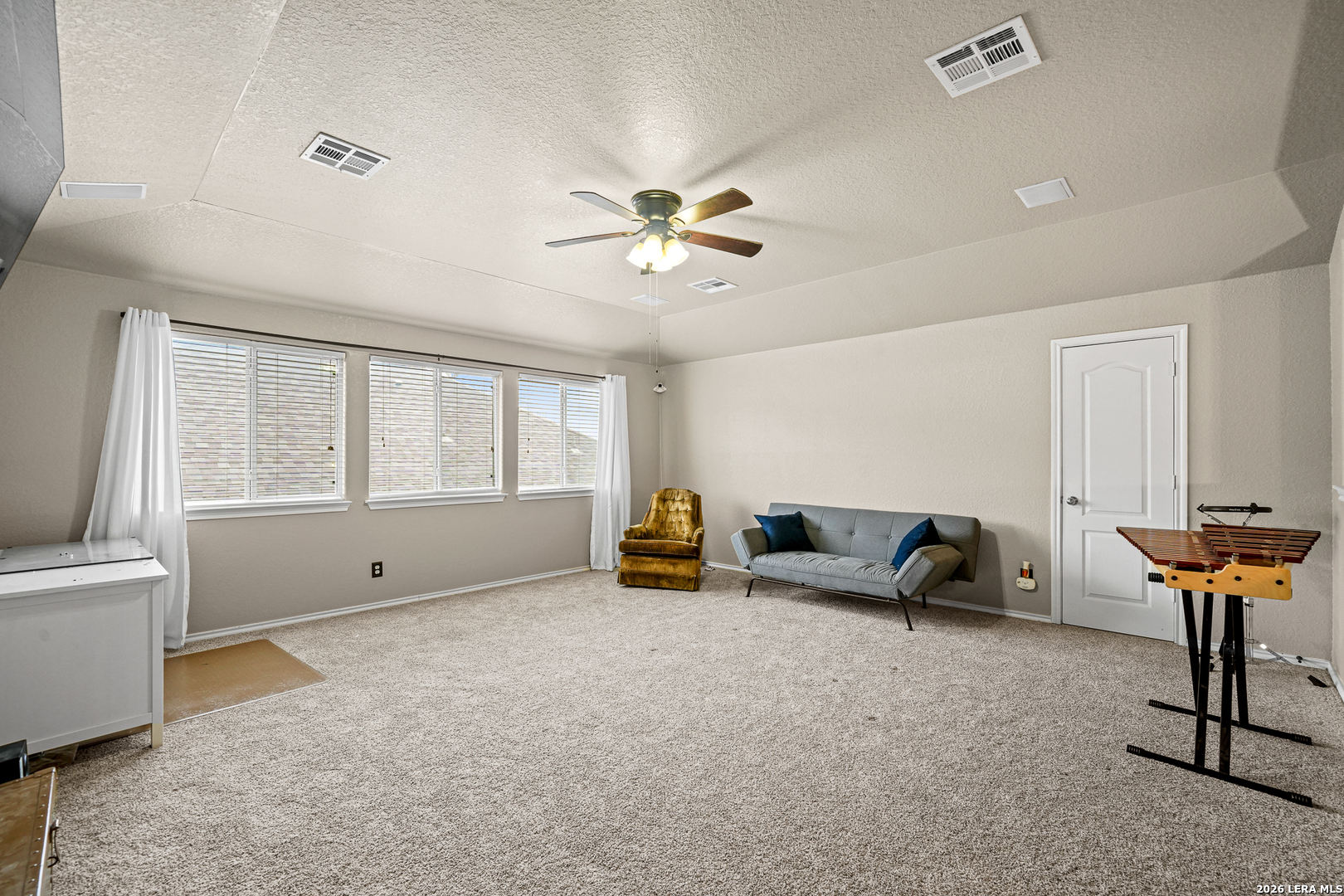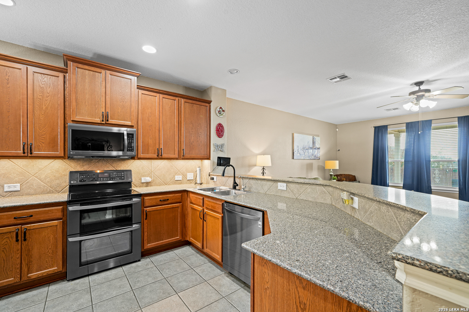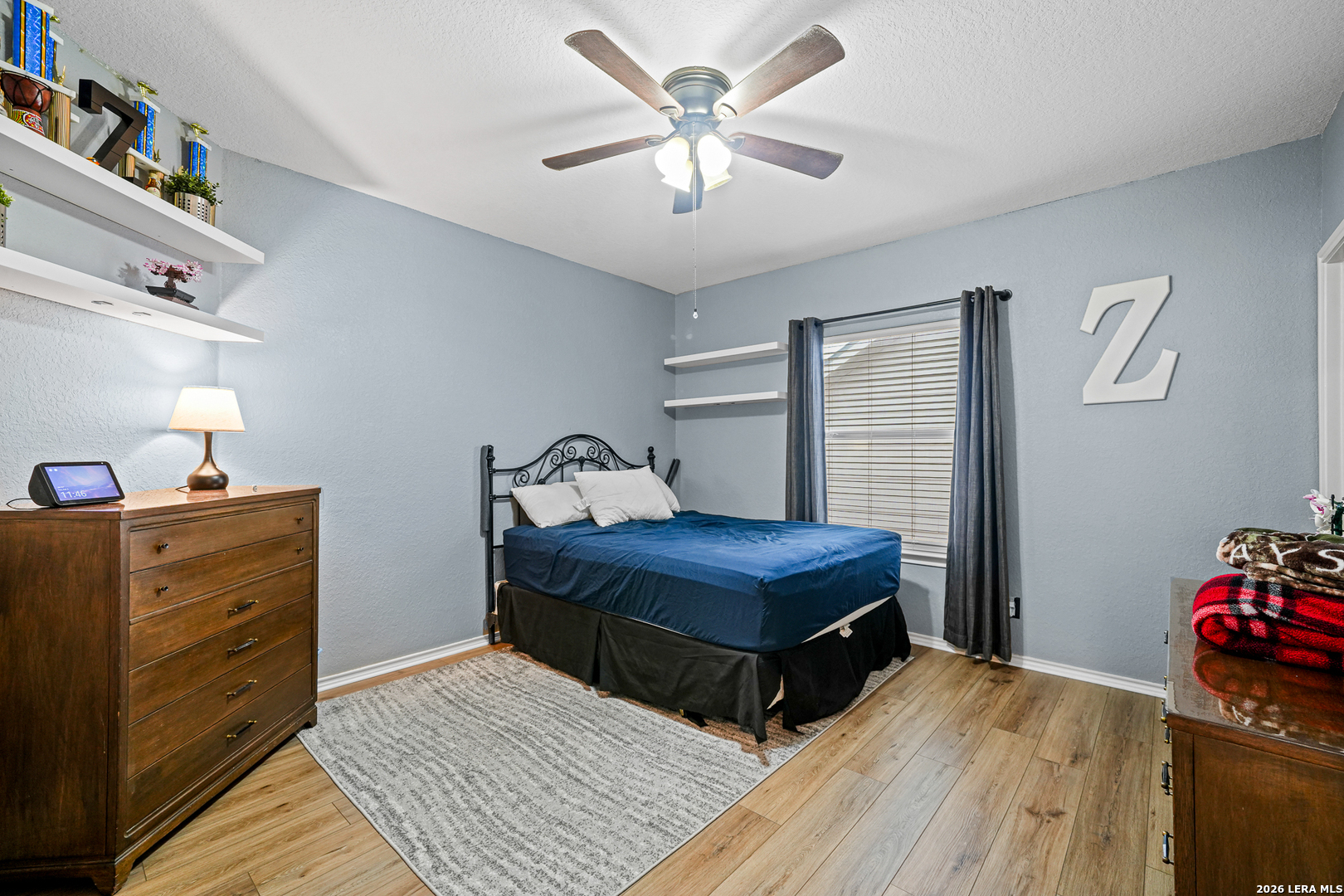 This beautiful 1.5 story home is a must-see, boasting all the bells and whistles to meet your needs and preferences. As you step inside, you'll immediately notice the many upgrades and special features throughout the home. The front door and garage can be easily opened with keypads, making access to your home quick and secure. The kitchen, with stainless steel appliances, upgraded cabinets, and beautiful granite countertops, provides ample space for cooking and entertaining. Fridge conveys. The master bathroom is equally impressive, with a garden tub, stand-up shower, and a spacious walk-in closet. Ceramic tile, and wood floors provide a touch of elegance throughout the home. Ceiling fans are installed in every room ensuring optimal air circulation and comfort throughout the home. Count the closets - there is ample storage space in this home. Step outside onto the covered patio entertainment area and enjoy the fresh air and beautiful surroundings. Additional features of this home include an outside storage container and a sprinkler system, making it easy to keep your outdoor equipment organized and your lawn looking lush and green. A water softener is also included in the 2-car garage, providing added convenience and value. With a 4th bedroom, full bath and spacious loft upstairs there are unlimited possibilities. Whether you desire an office, gym, media/play room or even Guest/In-law suite, this loft offers endless opportunities to customize the space to fit your needs and lifestyle. Carpet installed 2022, Ceramic tile in all wet areas and laminate in bedrooms. The neighborhood is surrounded by park areas with playgrounds and BBQ grills, making it easy to enjoy the great outdoors with family and friends. A community pool, sports park, and playground area offer even more opportunities for recreation and relaxation. Take a stroll on the nearby walking trails and enjoy the natural beauty of the area. This home truly is a gem. Don't miss your chance to make it your own! Schedule to see one of the most popular floorplans in the neighborhood.