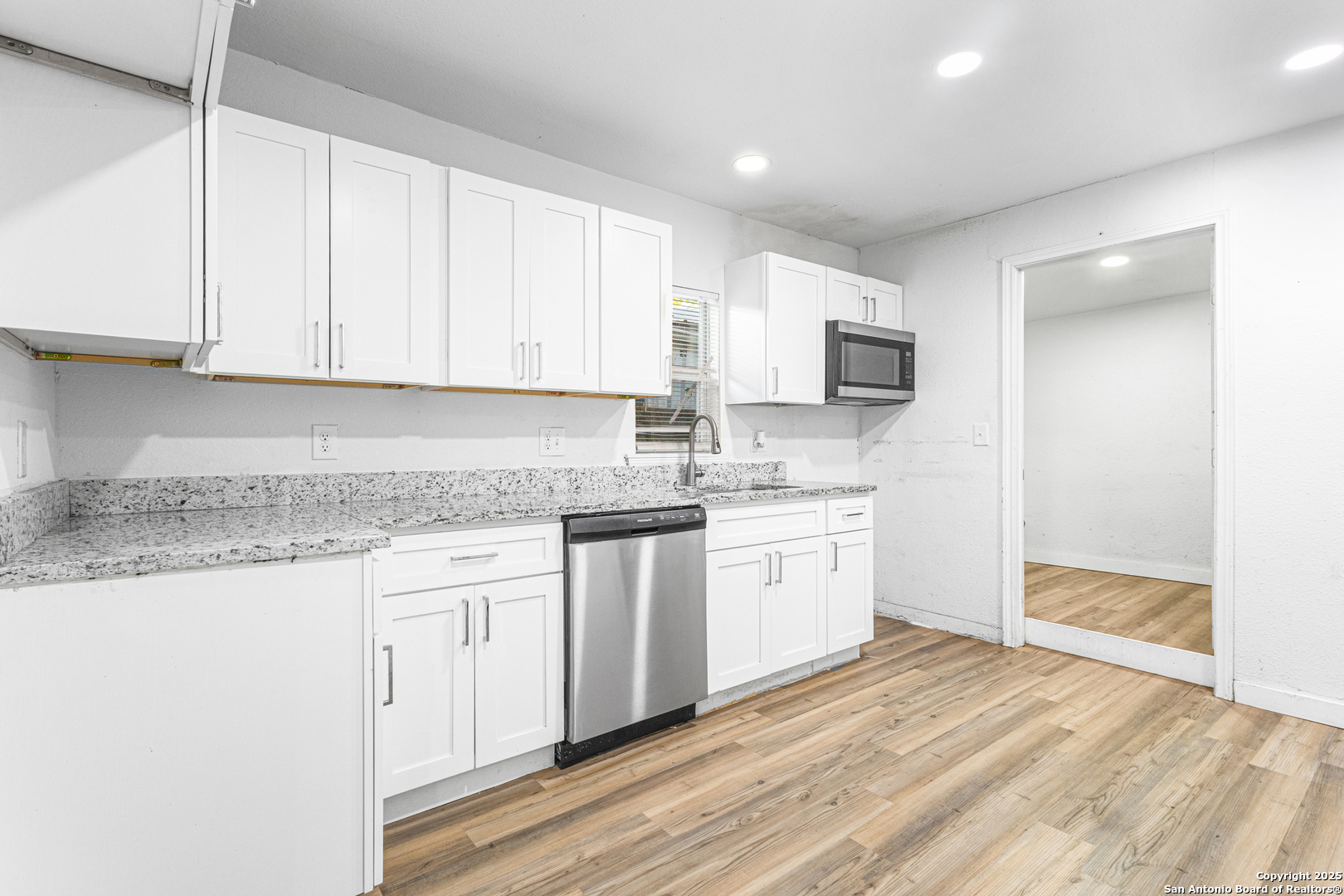 Step into comfort and convenience with this fully updated home featuring a modern kitchen complete with granite countertops, custom cabinetry, and brand-new luxury vinyl plank flooring throughout. Nestled under mature shade trees, the outdoor space offers a cool and relaxing retreat year-round. Located just 0.3 miles from JT Brackenridge Elementary and only 1.2 miles from H-E-B, this home puts everyday essentials within easy reach. Commuters will love the quick access to Hwy 90, Loop 410, I-10, and Hwy 151, with major roadways like Castroville Rd and General McMullen less than 5 minutes away. Whether you're headed downtown, to Lackland AFB, or the Medical Center, you're never far from where you need to be. The layout and upgrades make this an ideal fit for buyers seeking both value and location. This move-in-ready opportunity won't last long in one of San Antonio's most connected areas.