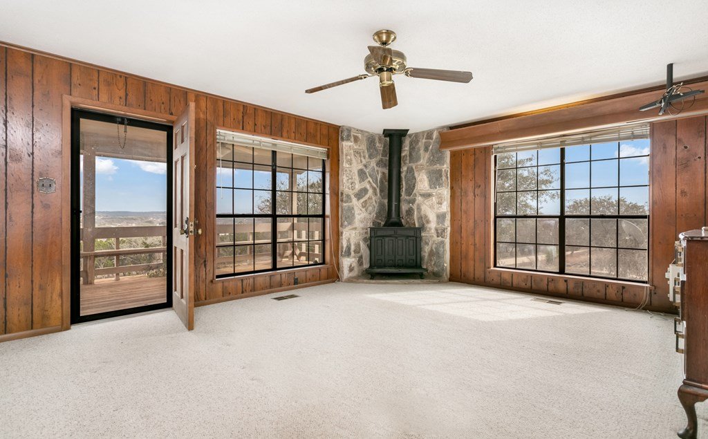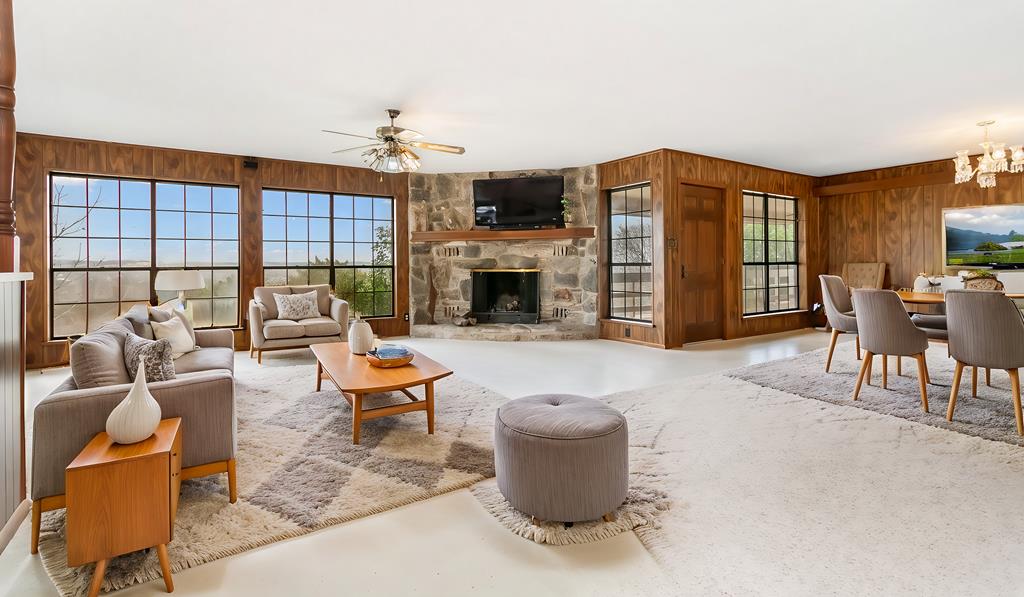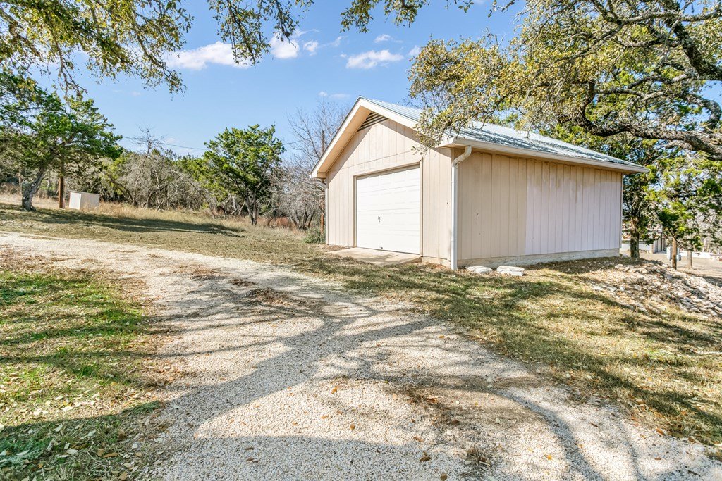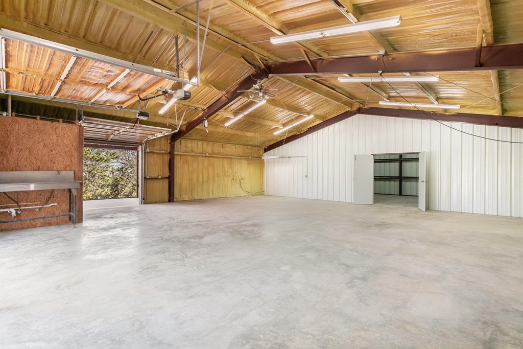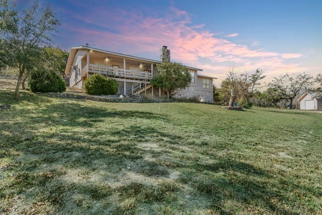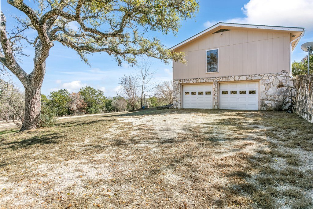 Excellent Investment Potential! 3.3 acre tract made up of 2 lots and can be divided. This home has a great floorpan and great bones. With 3 bedrooms, 2.5 baths a peaceful rural location and views for miles yet, a location just a few minutes from beautiful downtown Fredericksburg. It has all the makings of a perfect flip, long term rental or possibly a short term rental! The potential to divide the acreage (home and 1.96 acres and metal building and 1.41 acres) increases your potential equity. The home features a large great room with a rock fireplace and wall of windows to take in the view. The floorpan is split creating a private main suite with a wood burning fireplace. There is an attached 2 car garage and a detached oversized one car garage. Also on the property is a 2400 square foot metal building with a full bathroom, 2 roll up doors and a large covered porch. The majority of the metal building is insulated and it has plumbing and electrical and was previously used as a ceramics workshop.