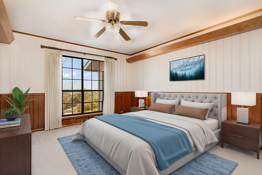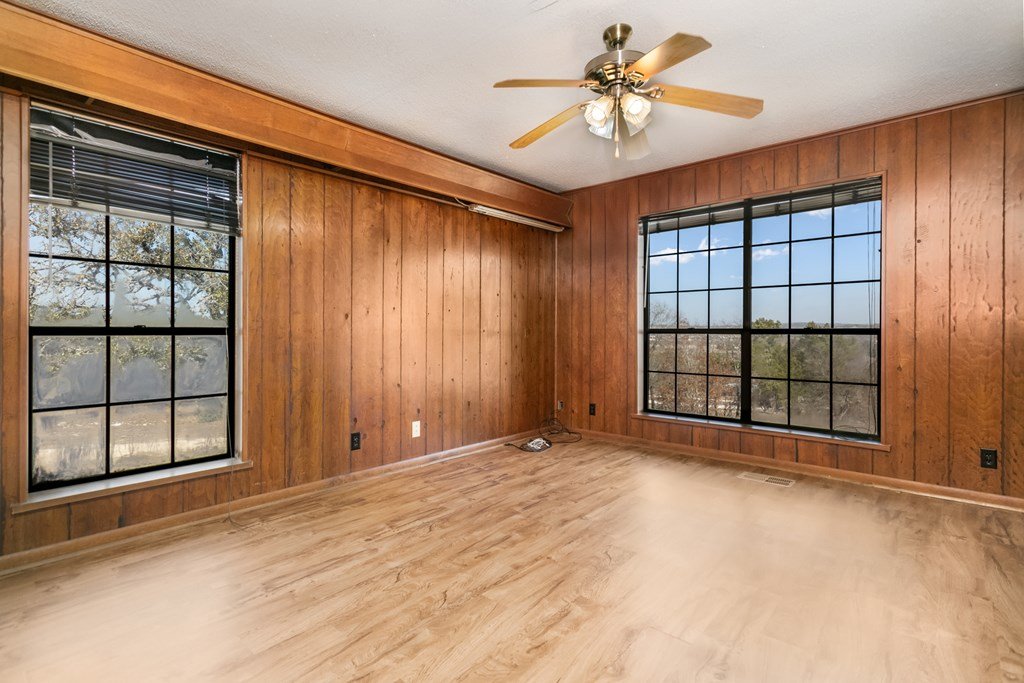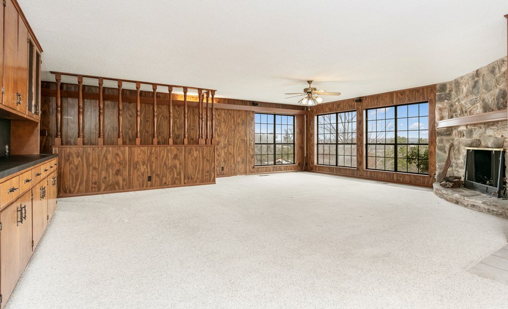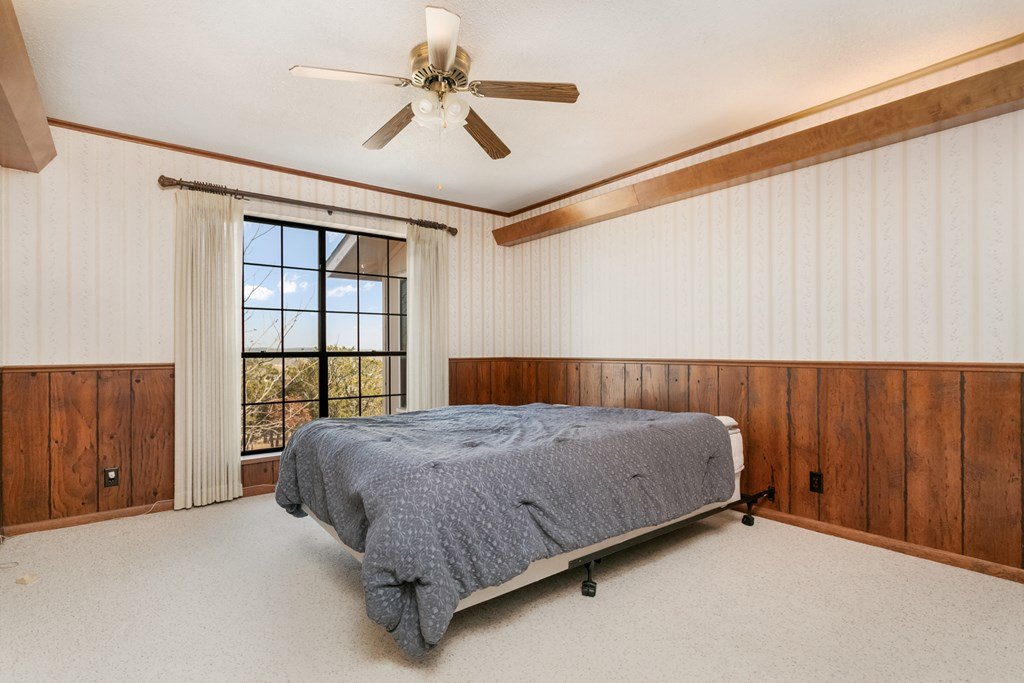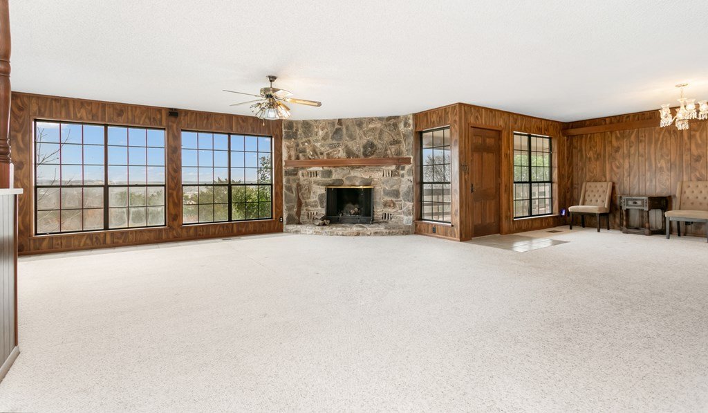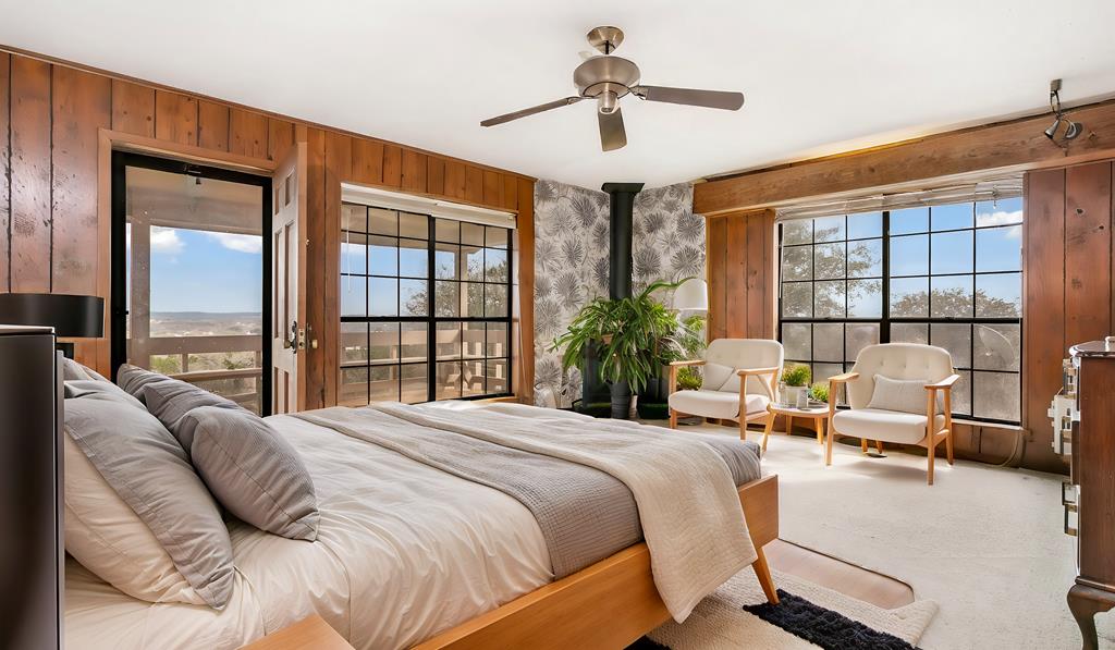 Excellent Investment Potential! 3.3 acre tract made up of 2 lots and can be divided. This home has a great floorpan and great bones. With 3 bedrooms, 2.5 baths a peaceful rural location and views for miles yet, a location just a few minutes from beautiful downtown Fredericksburg. It has all the makings of a perfect flip, long term rental or possibly a short term rental! The potential to divide the acreage (home and 1.96 acres and metal building and 1.41 acres) increases your potential equity. The home features a large great room with a rock fireplace and wall of windows to take in the view. The floorpan is split creating a private main suite with a wood burning fireplace. There is an attached 2 car garage and a detached oversized one car garage. Also on the property is a 2400 square foot metal building with a full bathroom, 2 roll up doors and a large covered porch. The majority of the metal building is insulated and it has plumbing and electrical and was previously used as a ceramics workshop.