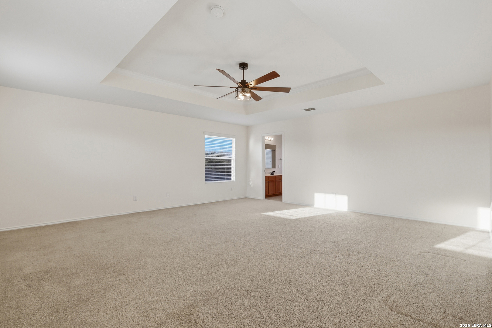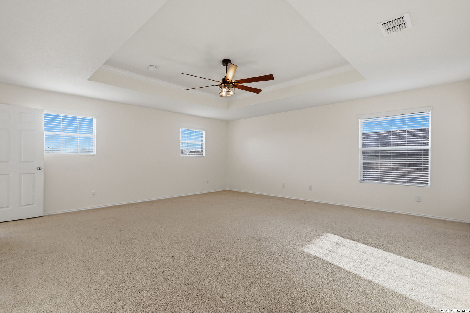 Beautiful two-story home on a desirable corner lot in the Kensington Ranch neighborhood, located in the highly regarded Schertz-Cibolo-Universal City ISD. This spacious home offers 4 bedrooms and 3 full bathrooms, including a convenient downstairs bedroom and bath-perfect for guests or multi-generational living. The kitchen features cabinet space galore, a new sink faucet, new microwave, and wooden pantry shelving, making it both functional and inviting. Enjoy gathering in the living area with a cozy wood-burning fireplace and abundant windows that fill the home with natural light. Upstairs you'll find the large primary suite with an updated ceiling fan and a spacious en-suite bath featuring a walk-in shower, separate garden tub, and double vanity. Two additional bedrooms are also located upstairs. Recent updates include new master bathroom flooring, new faucets and drains in bathrooms, new toilets, replaced fascia, and new downstairs window trim. Step outside to a covered patio and spacious backyard with sprinkler system, offering plenty of room to relax or entertain. Washer and dryer convey with the home. Conveniently located near shopping, dining, and grocery stores, this home combines comfort, updates, and an excellent location.