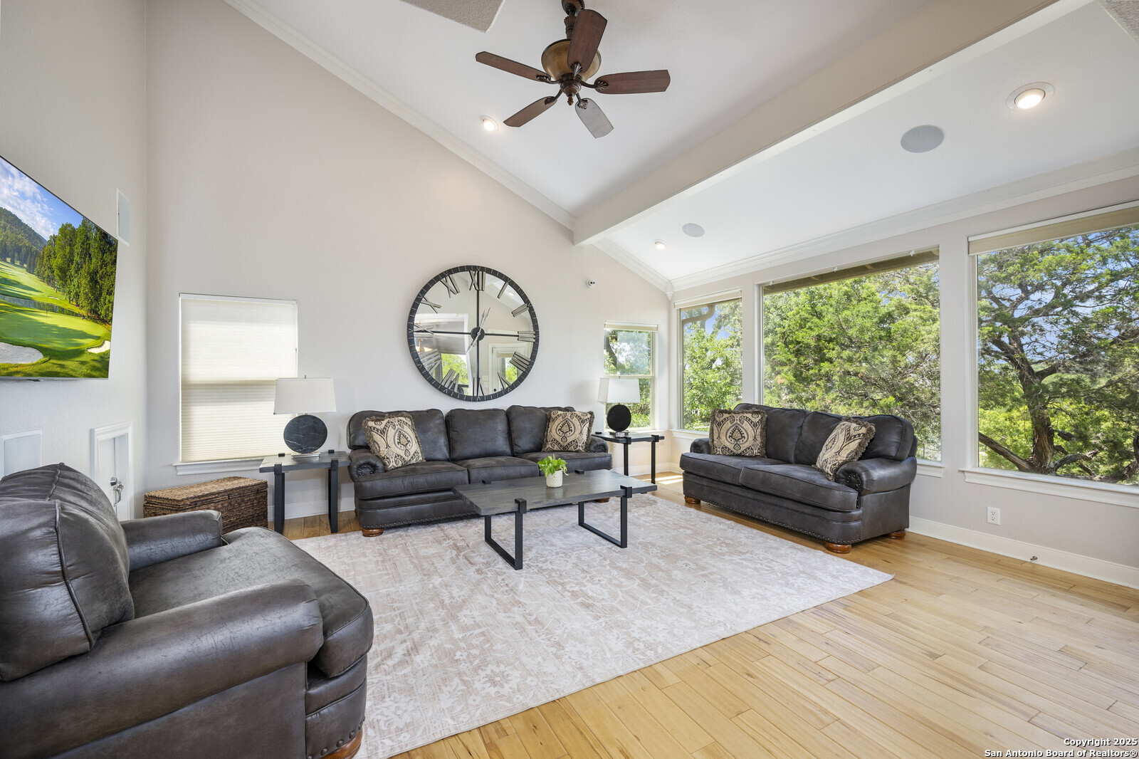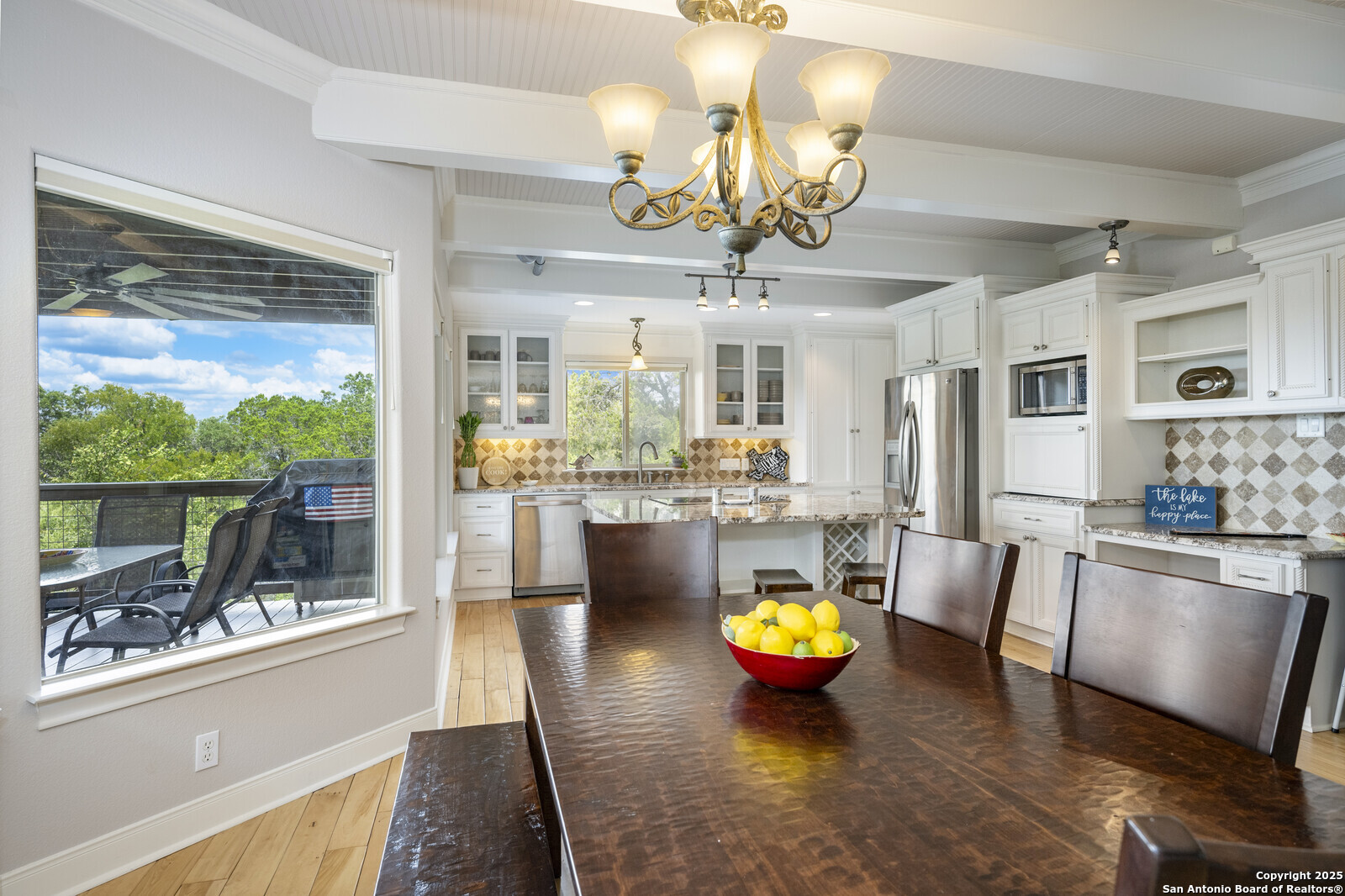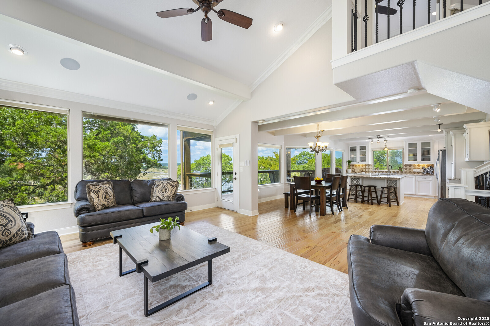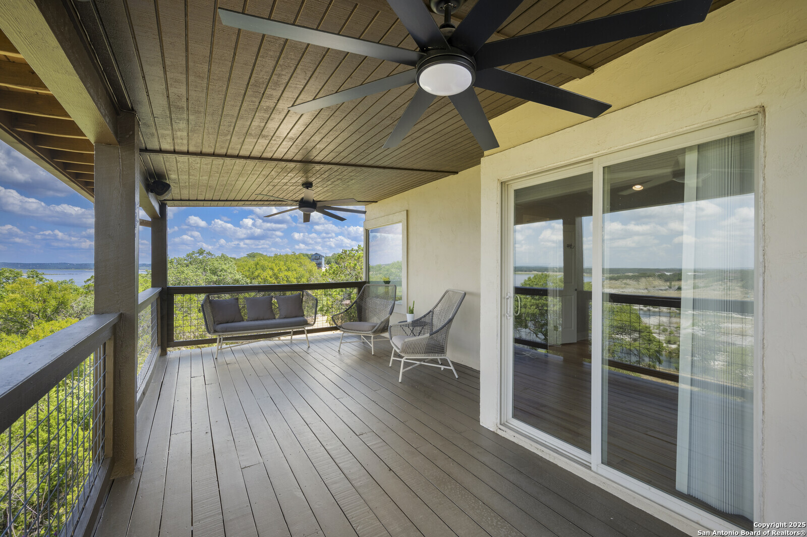 Look at those Canyon Lake views! This Texas style home is ready for entertaining, move-in ready and FULLY FURNISHED. With 6 bedrooms, 4 baths, media/gameroom and living room are ready for guests and family to enjoy! Main floor features 3 bedrooms and large media/gameroom. 2 Primary masters compliments this living space. Second floor is cozy with open dining concept, laundry room and more amazing views of Canyon Lake and one of its great coves. Kitchen is well stocked with all you need to entertain family and friends. Enjoy 2nd level balcony for brunch, lunch or dinner! Backyard down the hill has a great firepit and seating for those cozy Fall TX eventings to enjoy! Topography allows for a gentle stroll to the water. Come get your piece of the Texas Hill Country! Great second home, too!