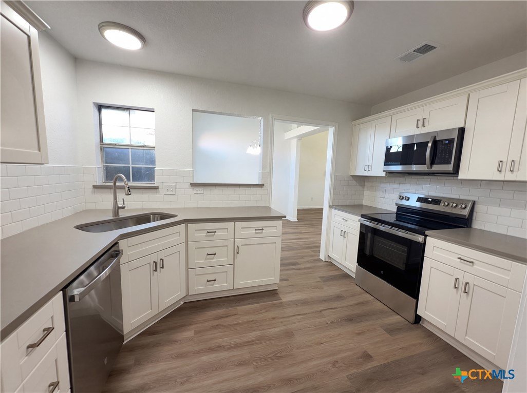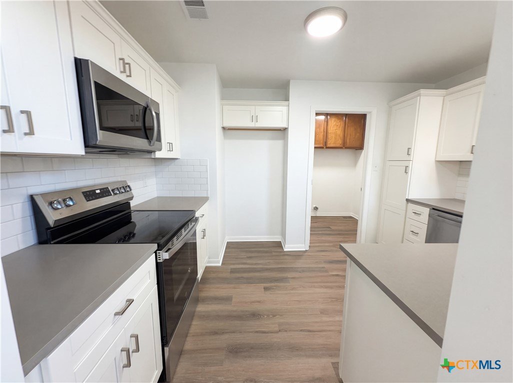 Discover the charm of 3610 Crosscut Loop which highlights an accent backsplash in kitchen, all stainless steel appliances, fireplace, double sinks in primary bathroom, covered patio, fenced in backyard. These components characterize the structure and finish of the residence. The building materials and layout elements are consistent throughout the interior and exterior areas of the entire property site.