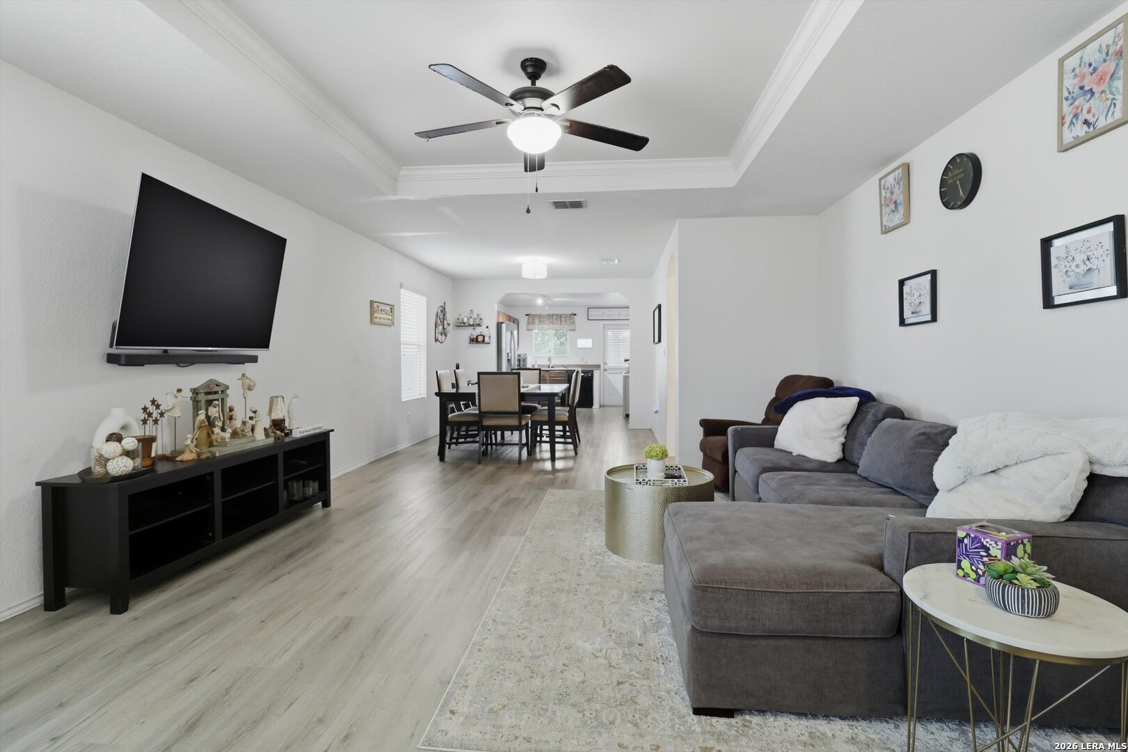 A perfect home for you at a great price! This well-maintained 1 story home has 3 spacious bedrooms, 2 full bathrooms, and an open floor plan that gives the home a spacious feel to host company but cozy enough for movie night at home! The upgraded flooring flows throughout the home and the master bedroom is privately tucked away at the rear of the home. The home sits on a lot that backs up to a greenbelt that offers lots of privacy in your backyard with no rear neighbors! A perfect setting for an evening in the backyard! Go and see it today!