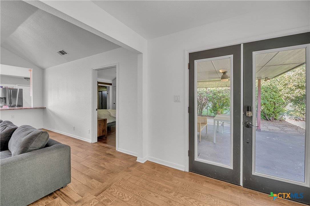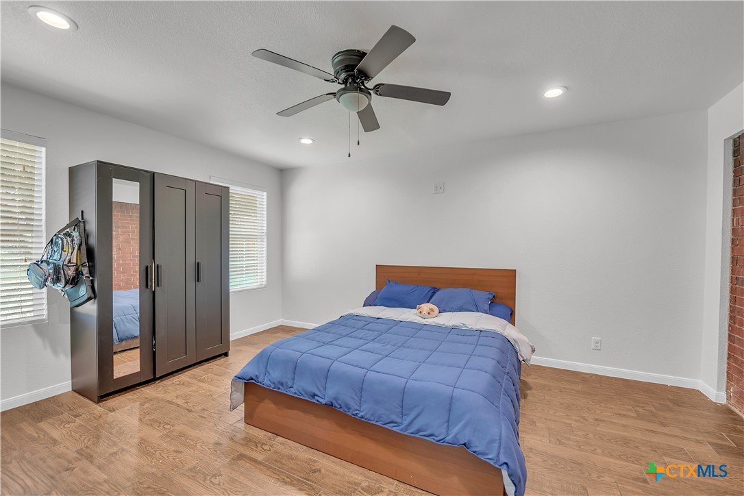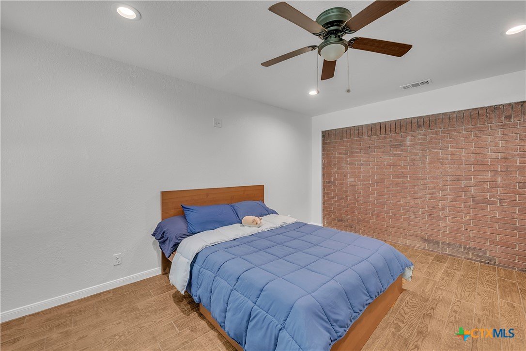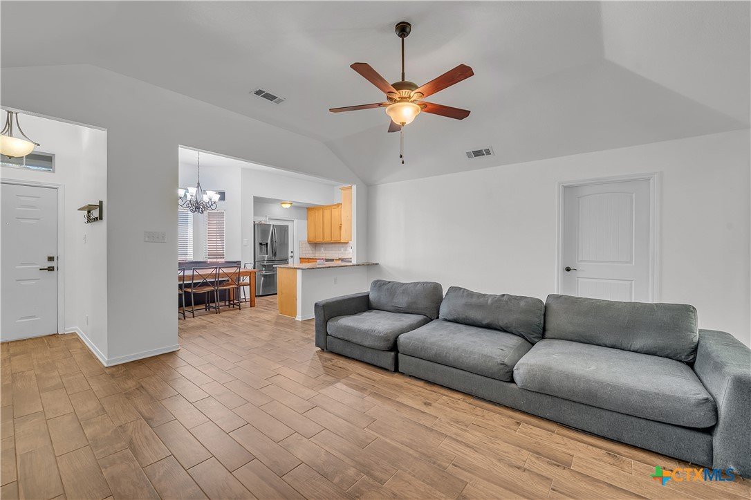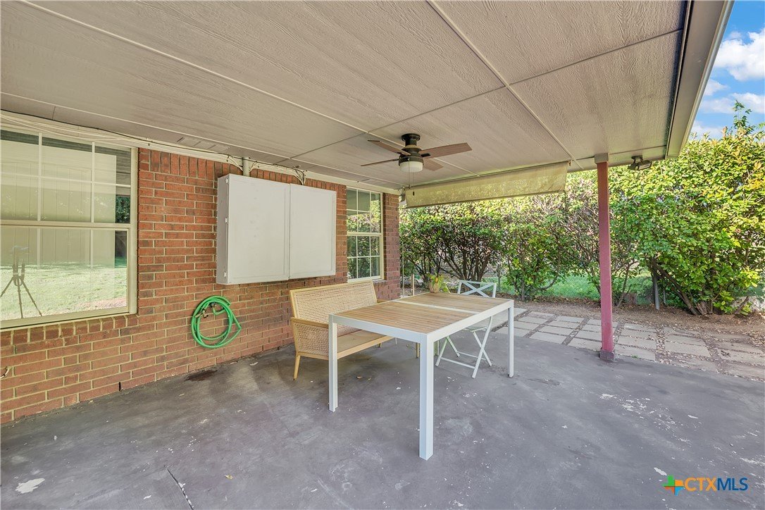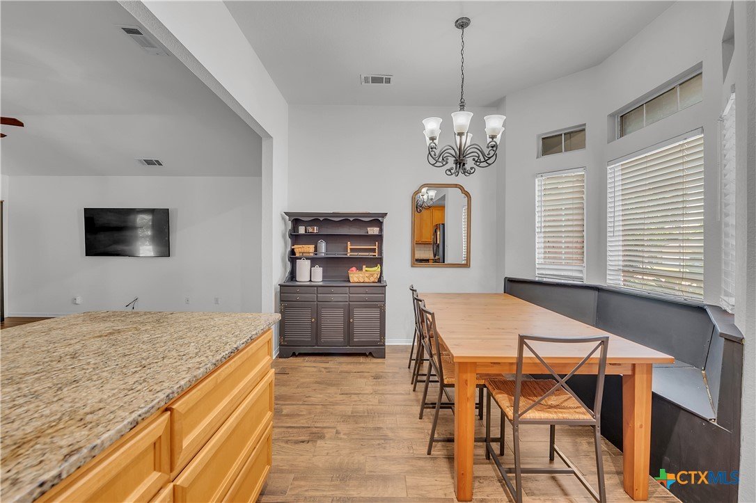 This beautifully maintained 4-bedroom, 2-bathroom single-story brick home with a spacious and functional layout, featuring warm wood-look tile flooring, vaulted ceilings, and a cozy wood-burning fireplace in the living room. The kitchen boasts granite countertops, stainless steel appliances, subway tile backsplash, and a charming built-in breakfast nook. The private primary suite includes a large walk-in shower, dual vanity with marble countertops, and a sliding barn door for added character. Two guest bedrooms offer plush carpeting, ceiling fans, and ample closet space, while a dedicated office or flex room provides space for work or play. A stylish second bath with updated fixtures and tiled surround serves guests and secondary bedrooms. Step outside to a fully fenced backyard with mature trees, a spacious covered patio with ceiling fan, and plenty of room for outdoor entertaining or future expansion. Additional highlights include modern lighting throughout, an attached two-car garage, smart Vivint security system, and a no-HOA neighborhood conveniently located near parks, schools, shopping, and major commuter routes. Move-in ready and full of charm, this home offers unbeatable value and versatility for today's buyers