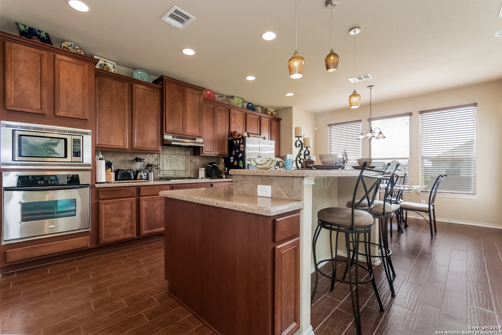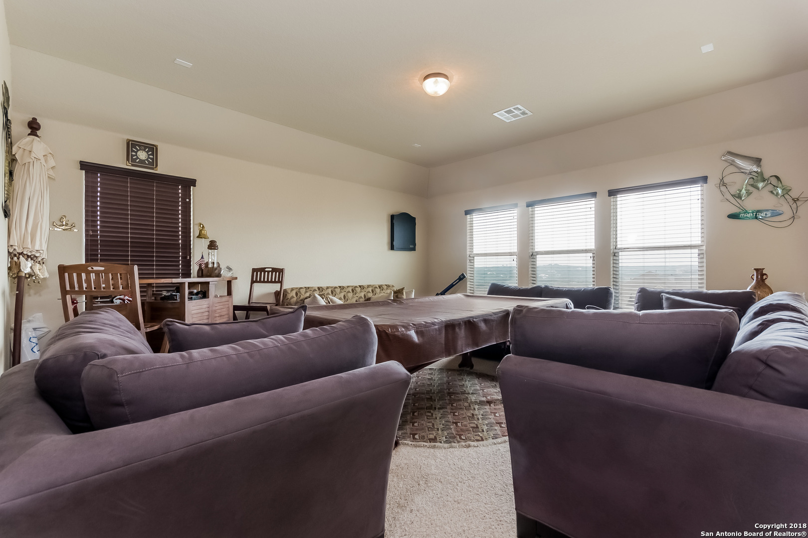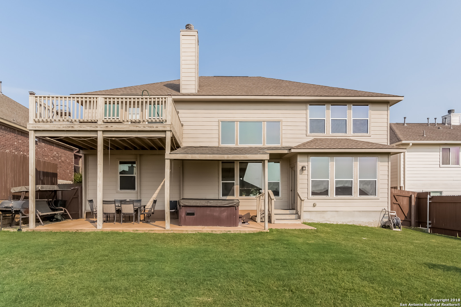 Discover this 5BR/4 Bath Home in Bulverde Village in San Antonio, TX. The spacious layout includes 3 living areas, 2 eating areas, an office area, and island kitchen. The kitchen is open to the main living space that has vaulted ceilings, a stone fireplace, and nook for media entertainment systems. The kitchen has a breakfast nook and comes with a refrigerator, gas cooktop, dishwasher, oven, and microwave. Downstairs also offers one bedroom and a full bathroom. Upstairs are the primary suite, the other 4 bedrooms, 2 full bathrooms and a large gameroom. The primary bedroom features a second floor balcony providing a distant views as far as the downtown area. The backyad provides a large covered patio and privacy fences. Practical conveniences include a water softener, attached 3-car tandem garage, dual HVAC units and access to the community pool, park and playground. Located in the exemplary NEISD school district and welcoming to pets (with restrictions), this home offers versatile spaces for a range of needs.
