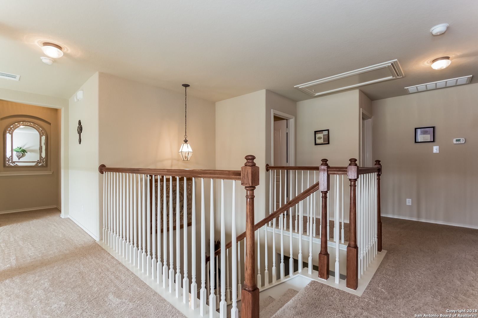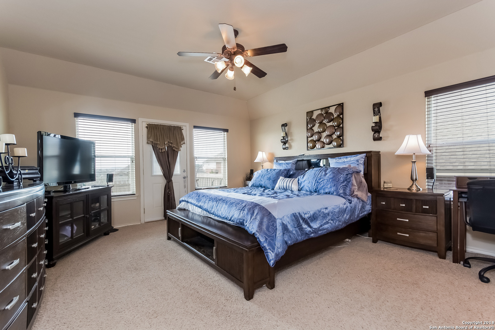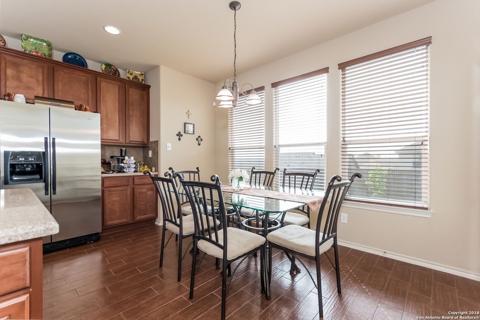 Discover this 5BR/4 Bath Home in Bulverde Village in San Antonio, TX. The spacious layout includes 3 living areas, 2 eating areas, an office area, and island kitchen. The kitchen is open to the main living space that has vaulted ceilings, a stone fireplace, and nook for media entertainment systems. The kitchen has a breakfast nook and comes with a refrigerator, gas cooktop, dishwasher, oven, and microwave. Downstairs also offers one bedroom and a full bathroom. Upstairs are the primary suite, the other 4 bedrooms, 2 full bathrooms and a large gameroom. The primary bedroom features a second floor balcony providing a distant views as far as the downtown area. The backyad provides a large covered patio and privacy fences. Practical conveniences include a water softener, attached 3-car tandem garage, dual HVAC units and access to the community pool, park and playground. Located in the exemplary NEISD school district and welcoming to pets (with restrictions), this home offers versatile spaces for a range of needs.