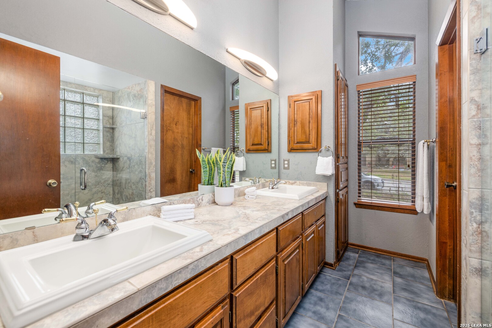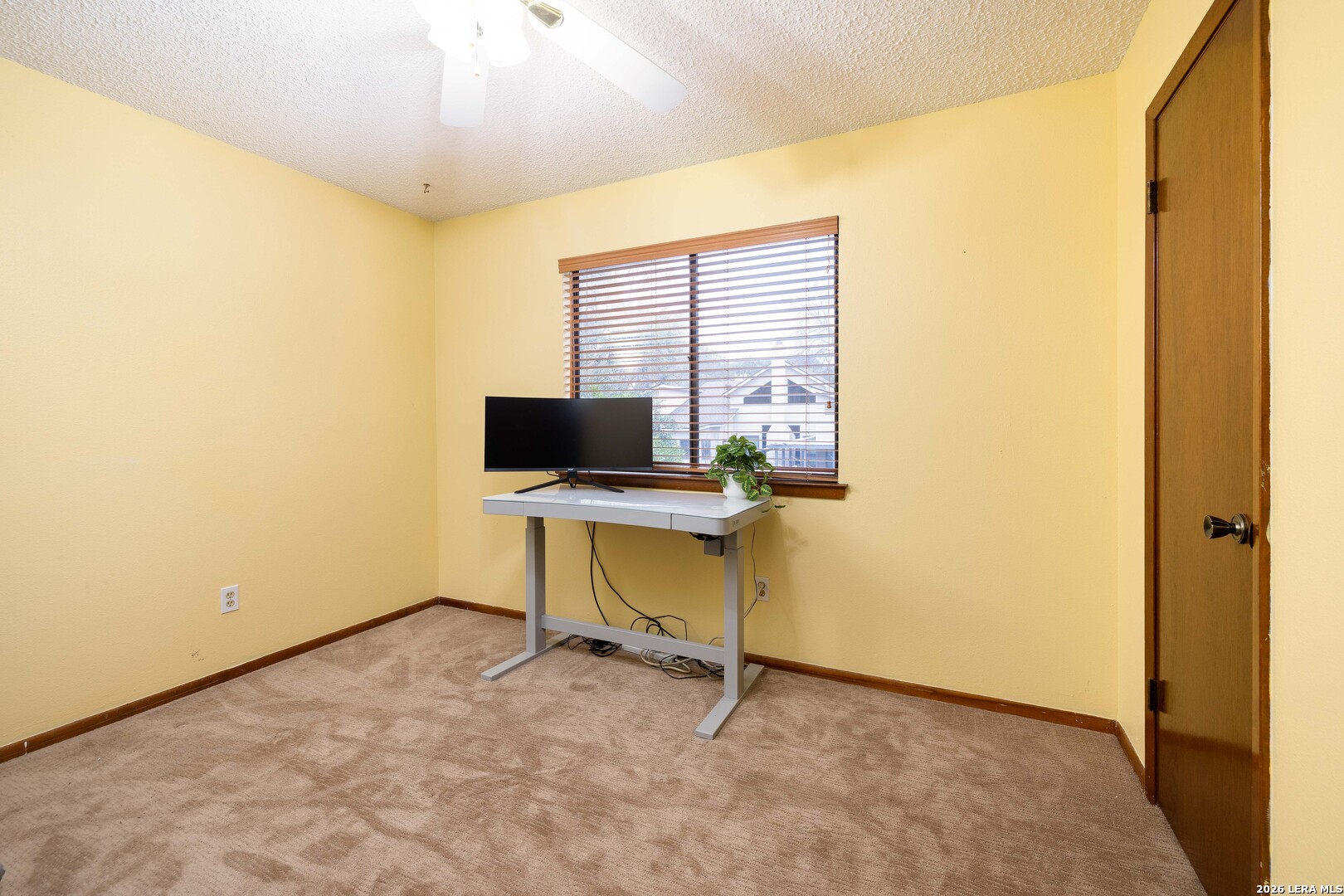 Tucked at the end of a quiet cul-de-sac, this home offers the kind of privacy and charm that's getting harder to find in San Antonio. Surrounded by mature oak trees, the setting feels established and peaceful while still being just minutes from Loop 1604, Hwy 281, shopping, dining, and everyday conveniences. Inside, character takes center stage. A striking rock fireplace anchors the living room, framed by beautiful beaded plank ceilings that add warmth and texture. The open layout makes the space feel connected and inviting, ideal for both everyday living and hosting. Tile floors run throughout the main level, with carpet upstairs for added comfort. The kitchen blends function and style with granite countertops, stainless steel appliances, and a gas cooktop. The primary suite is privately positioned on the first floor, offering a quiet retreat with a spacious walk-in closet and an updated bath. Upstairs, two generously sized bedrooms are complemented by a large loft and an oversized office that could easily serve as a fourth bedroom. Out back, the setting truly shines. The mature trees provide shade and seclusion, creating an unexpected backyard escape. The in-ground pool and hot tub turn the space into your own private oasis, complete with a gas heater installed in 2024 and an ozone generator less than six months old for added efficiency. It's a backyard designed for long summer evenings, weekend gatherings, and year-round enjoyment. Residents also enjoy access to wonderful HOA amenities, including a community pool, tennis courts, park and playground, bike trails, and more, adding even more value to this sought after neighborhood. Homes with this combination of character, updates, and a tucked-away setting rarely come available in such a desirable area!