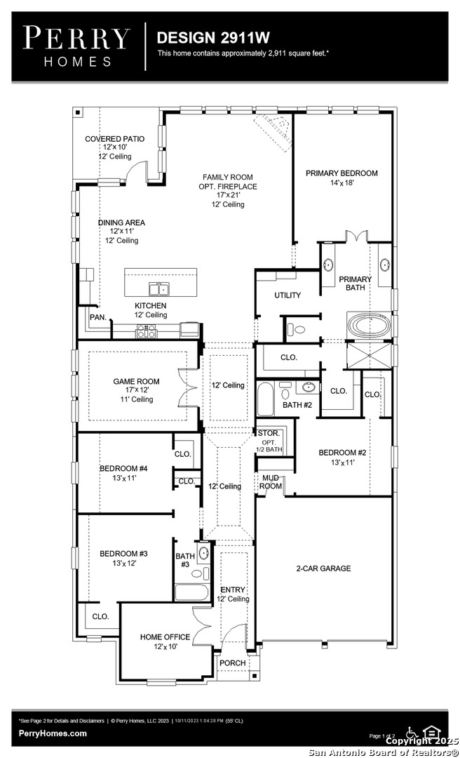 The front porch invites you into an extended entryway. French doors open into the private home office located at the front of the home. As you move through the main hallway, you'll be greeted by 12-foot coffered ceilings. The secondary bedrooms, complete with walk-in closets and bathrooms, frame the entrance. French doors open into the game room, boasting three large windows. As you continue, you'll be welcomed by the spacious kitchen, featuring a corner pantry, 5-burner gas cooktop and an island with built-in seating. Adjacent to the kitchen, the dining area connects seamlessly to the family room, adorned with a wall of windows and wood mantel fireplace. The primary bedroom offers ample natural light. Double doors open into the primary bathroom, complete with dual vanities, a freestanding tub, a separate glass-enclosed shower, two walk-in closets, and access to the utility room. Covered backyard patio. Completing the home is an extra storage closet and mud room, placed just off the two-car garage.