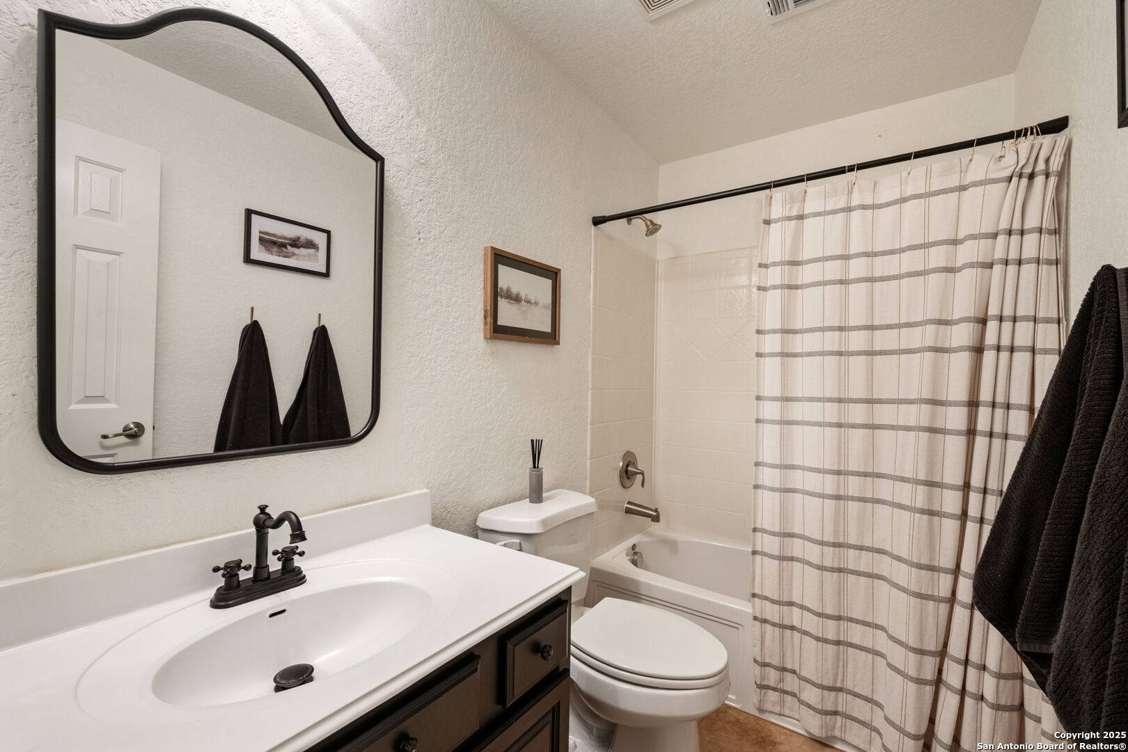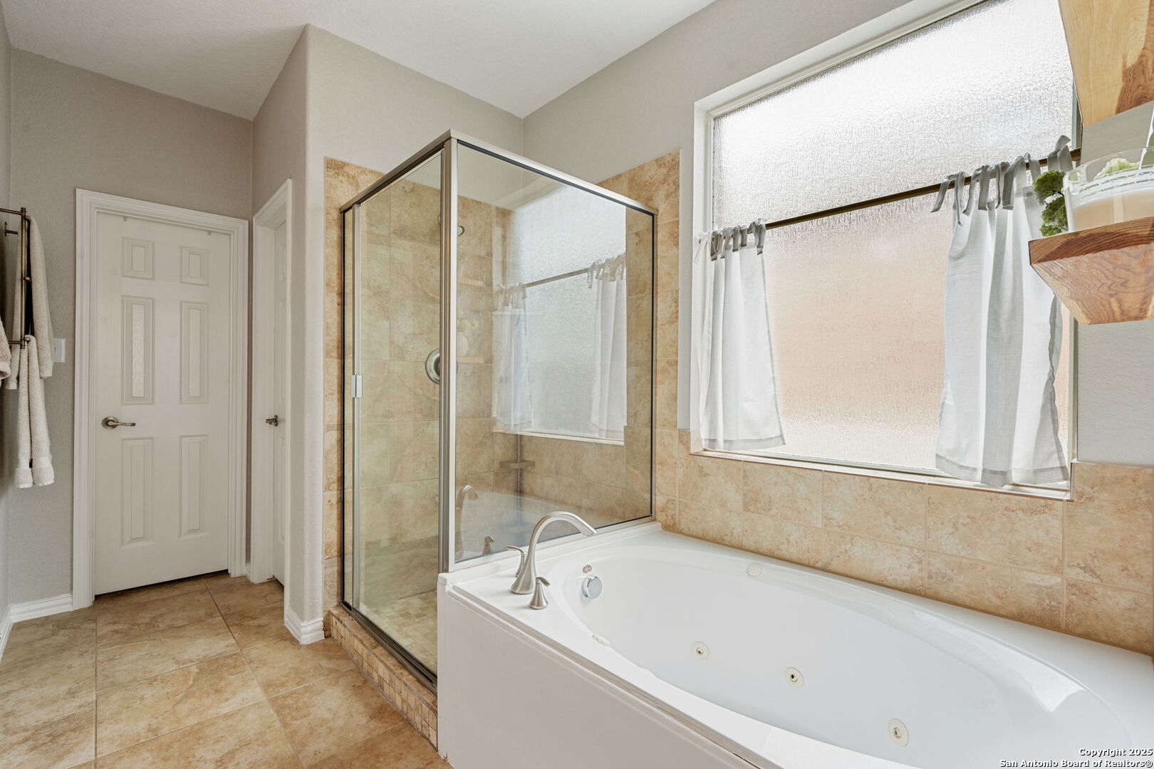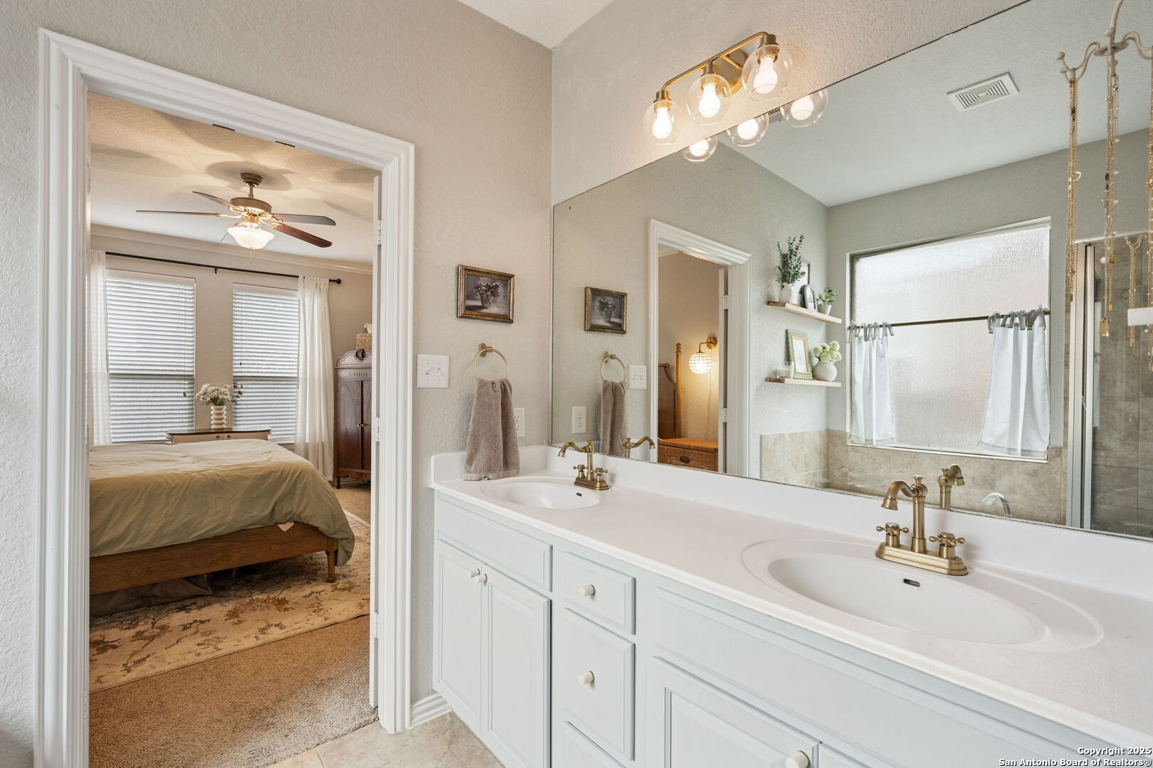 Welcome to The Preserve at Indian Springs on San Antonio's highly sought-after north side, just minutes from TPC golf, JW Marriott's water park-like spaces, and all the amenities that the area has to offer! This spacious 4 bedroom, 3.5 bathroom home has been lovingly cared for and decorated, with pragmatic updates made along the way (water heaters & dishwasher recently replaced). The open floor plan makes entertaining and gathering a breeze with the main living area adjacent to the open kitchen. The gas-cooking kitchen features stainless steel appliances, 42" cabinetry, a walk-in pantry, and dramatic granite countertops in a bright & airy space that's perfect for everyday cooking and prep. The primary suite is downstairs with a spacious full bath (double vanities, jetted tub, separate shower) and a walk-in closet. Upstairs has a large open gameroom/loft space along with the 3 remaining secondary bedrooms and TWO additional full baths! This house has all the space you need - inside & out! Come for the indoors, stay for the useable & charming backyard. Schedule your showing today!