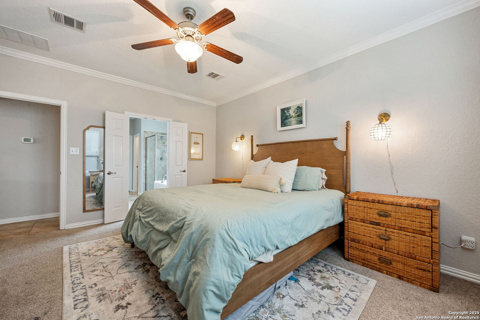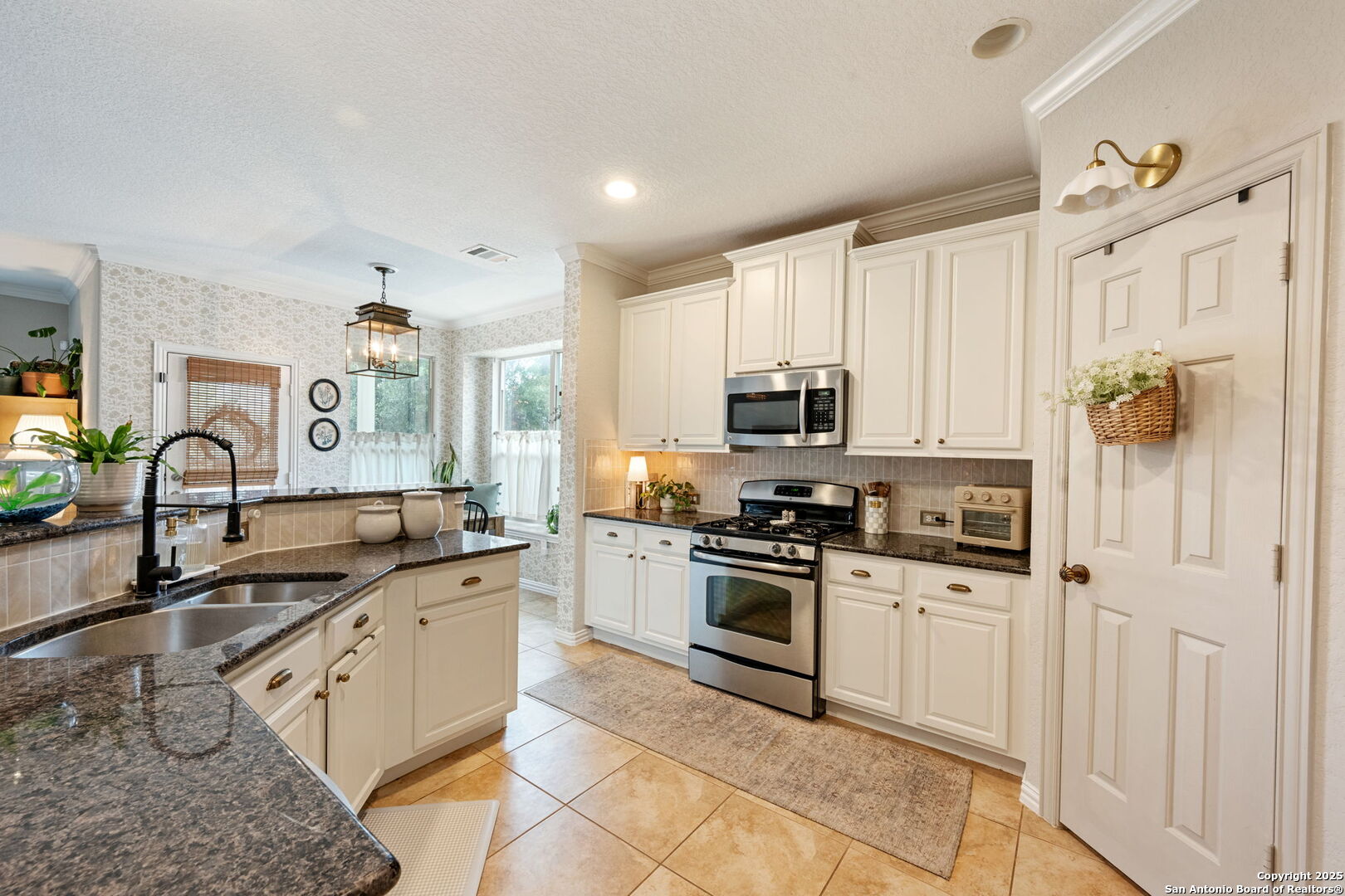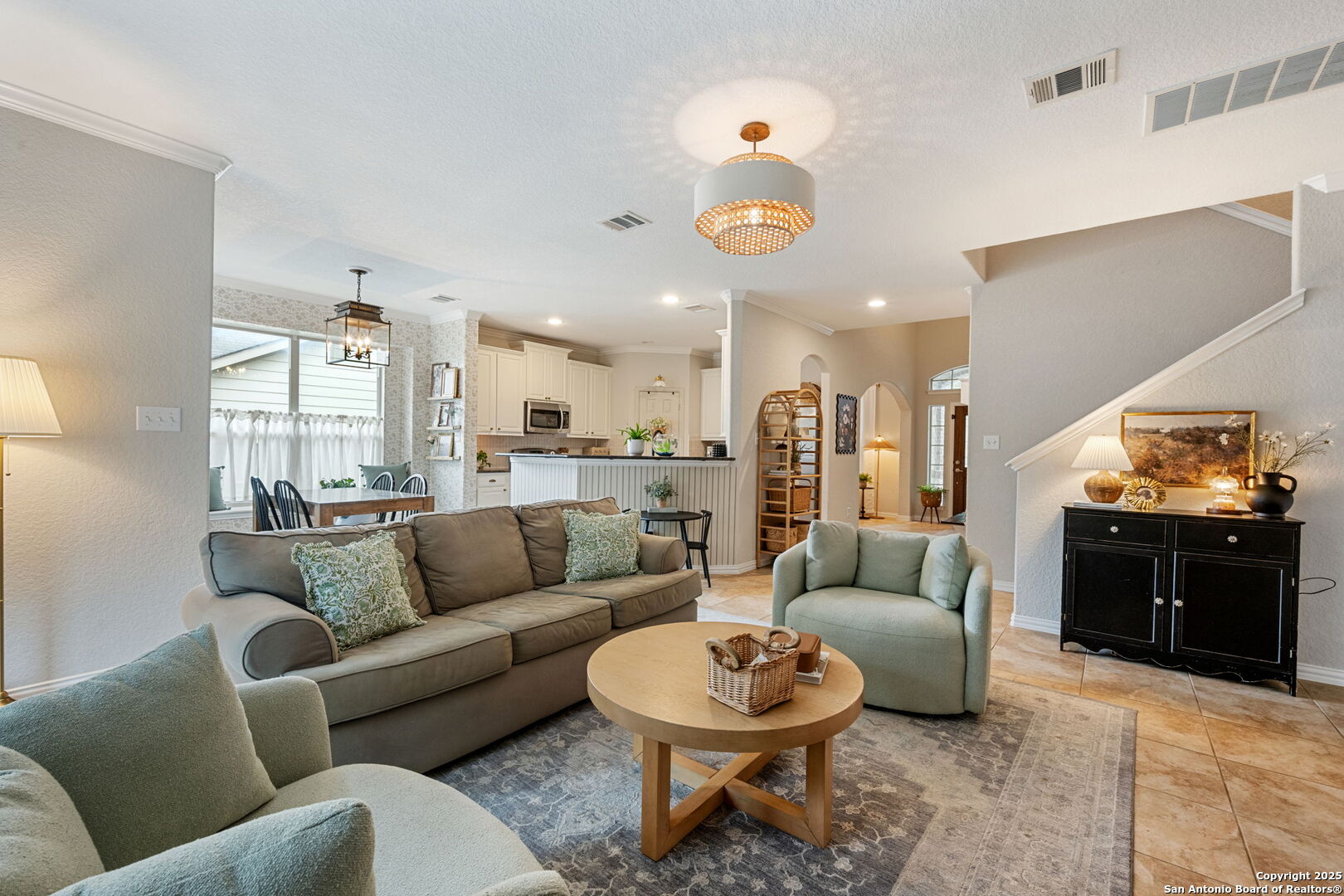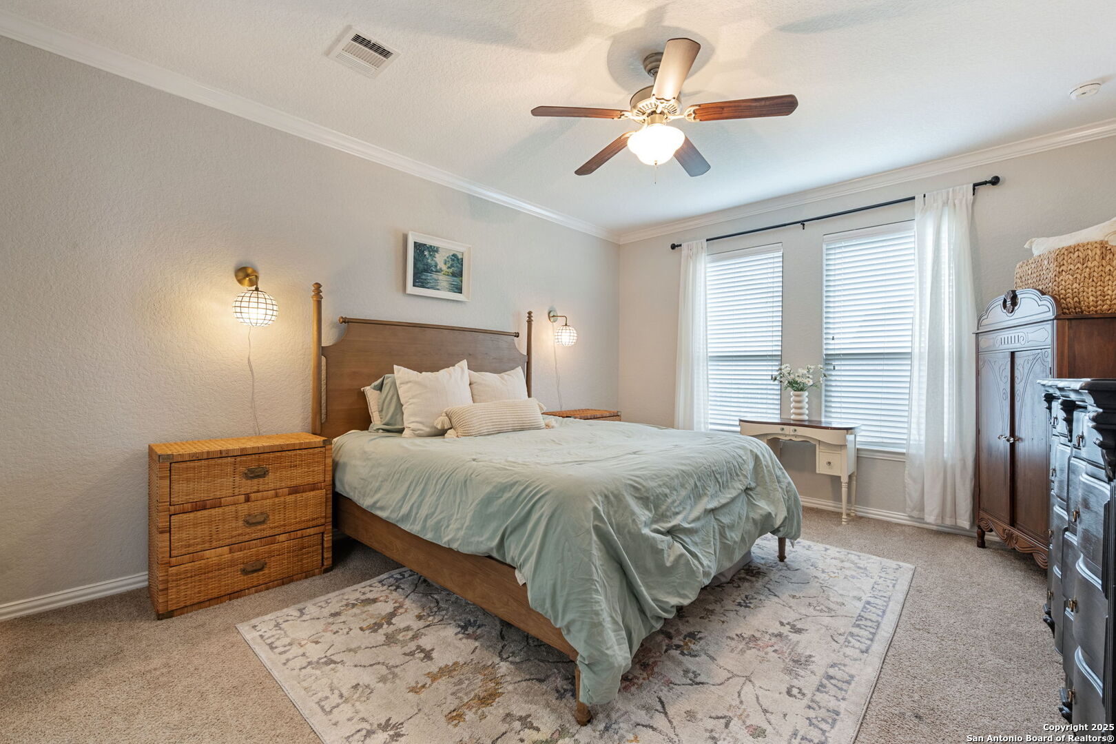 Welcome to The Preserve at Indian Springs on San Antonio's highly sought-after north side, just minutes from TPC golf, JW Marriott's water park-like spaces, and all the amenities that the area has to offer! This spacious 4 bedroom, 3.5 bathroom home has been lovingly cared for and decorated, with pragmatic updates made along the way (water heaters & dishwasher recently replaced). The open floor plan makes entertaining and gathering a breeze with the main living area adjacent to the open kitchen. The gas-cooking kitchen features stainless steel appliances, 42" cabinetry, a walk-in pantry, and dramatic granite countertops in a bright & airy space that's perfect for everyday cooking and prep. The primary suite is downstairs with a spacious full bath (double vanities, jetted tub, separate shower) and a walk-in closet. Upstairs has a large open gameroom/loft space along with the 3 remaining secondary bedrooms and TWO additional full baths! This house has all the space you need - inside & out! Come for the indoors, stay for the useable & charming backyard. Schedule your showing today!