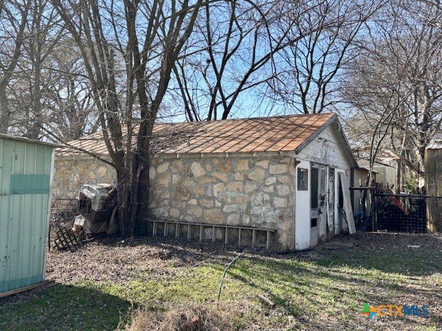 Nestled on a beautiful, shaded half-acre lot in Mound, this Craftsman-style home is full of character and potential. Towering pecan trees provide exceptional shade and create a peaceful setting ideal for outdoor living and gardening. Inside, you’ll find charming original details including built-in cabinets, large, trimmed windows that fill the home with natural light, and hardwood floors. The spacious living and dining room combination features a cozy faux fireplace, perfect for gathering and entertaining. The oversized primary bedroom offers a private retreat with double glass-pane slider doors adding to the home’s unique charm. Outside, the fully fenced yard provides plenty of room for pets, hobbies, or future improvements. Two outbuildings include a stone workshop and a well house, offering excellent storage, workspace, or creative possibilities. With its inviting setting, classic style, and solid features—including a metal roof approximately 4 years old—this property presents an incredible opportunity to restore and customize a truly special home. Property is being sold as is. Square footage and year built are per CAD; owner believes the home may be older. The personal contents in the house will be sold in an estate sale soon.
