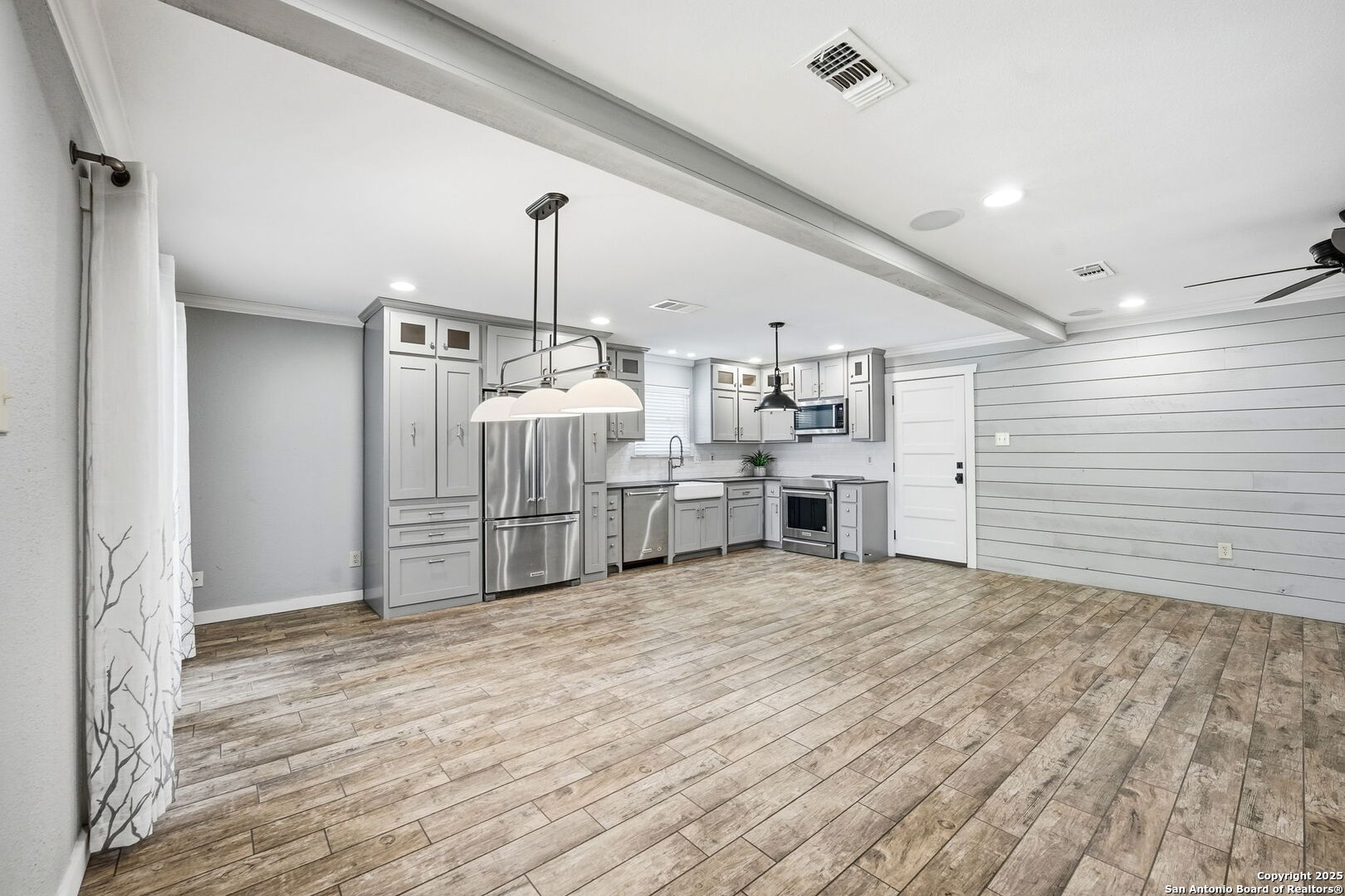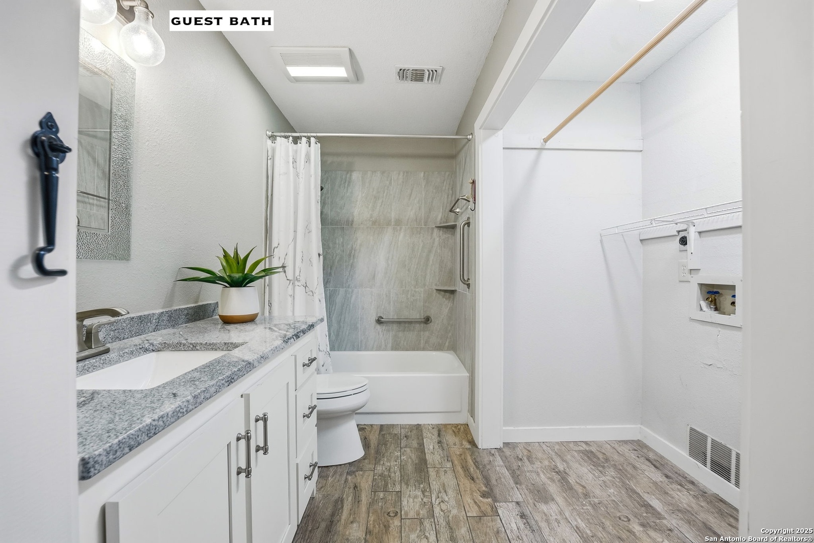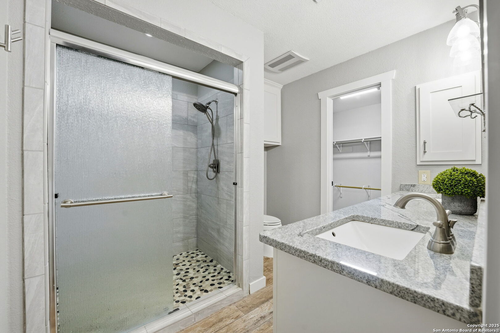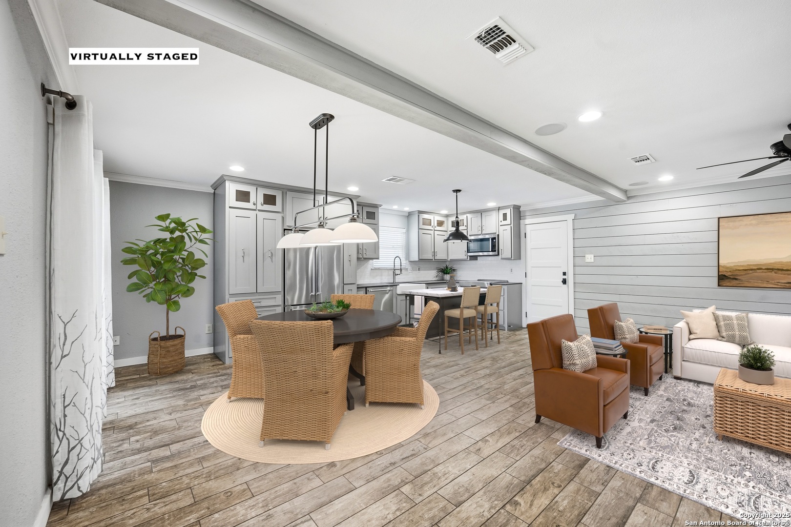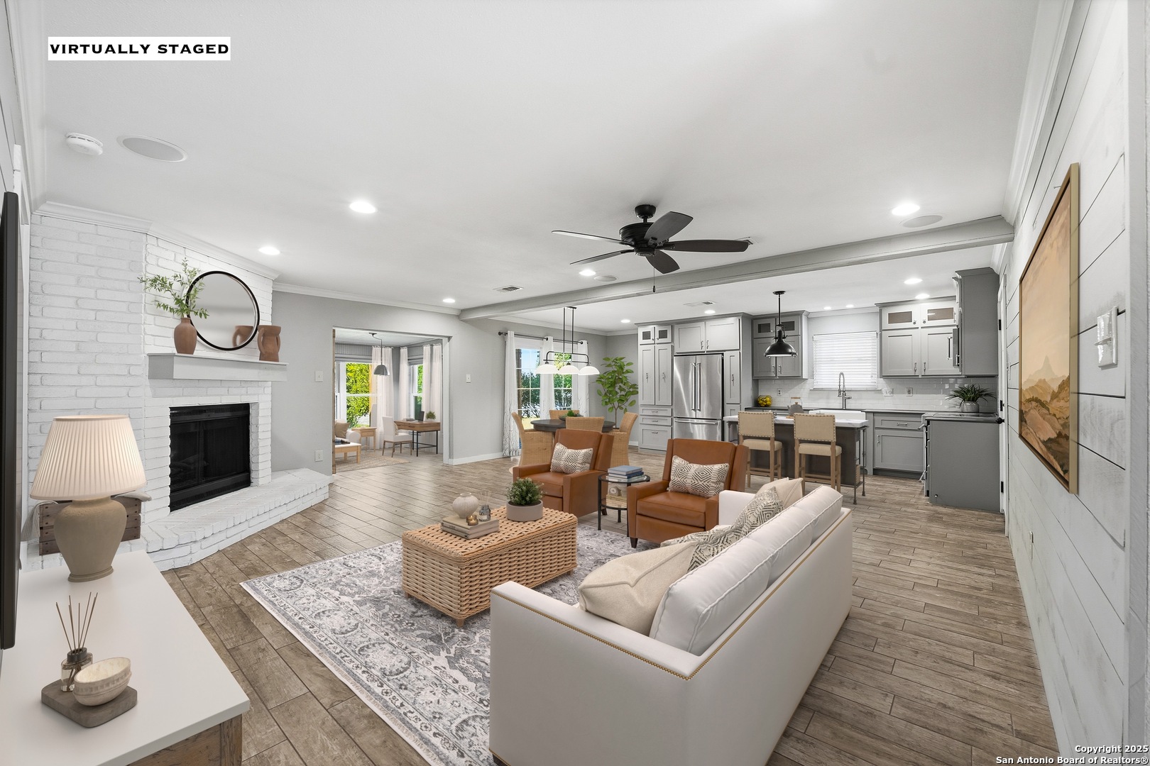 Beautifully renovated 3/2 garden home in Scenic Hills...a charming 24/7 gated and guarded 55+ community known for its low-maintenance lifestyle, lamp-lit streets, and true lock-and-leave convenience. The HOA maintains both front and back yards-including mowing, edging, trimming, watering, and full sprinkler-system upkeep-meaning no yard work unless you want it. The owners have invested over $100K in updates (full list available in documents). This 1,796 sq ft home features an open-concept layout, wood tile flooring throughout, and a ~150 sq ft sunroom/flex space (not included in the square footage).The kitchen has gorgeous custom cabinetry, a farmhouse sink, solid ceramic industrial-style counters, SS appliances, and an induction range with convection oven. Both bathrooms have spa-like features with high-quality finishes. Major systems have also been updated-roof, HVAC, electrical panel, water heater, insulation, solar screens, and whole-house air purification-providing peace of mind and reducing future maintenance .Outdoors, enjoy a 14x18 pergola, imprinted concrete patio and a lighted cook station ideal for entertaining. At the heart of the community is the impressive 13,000 sq ft Lodge, offering a full calendar of activities and amenities. Indoor highlights include a fitness center, library, billiards/card rooms, craft and hobby rooms, game rooms, and a large ballroom for community events. Outdoors, residents enjoy three, tennis/shuffleboard/pickleball courts, horseshoe pits, and scenic walking paths. Each homeowner also receives one free RV, boat, or camper storage space with secure electronic access, and many residents use golf carts to navigate the neighborhood.Conveniently located near I-35, this home provides easy access to shopping, dining, Randolph AFB, medical facilities, New Braunfels, and San Antonio. Property taxes in Scenic Hills remain among the lowest in the San Antonio/Austin region.